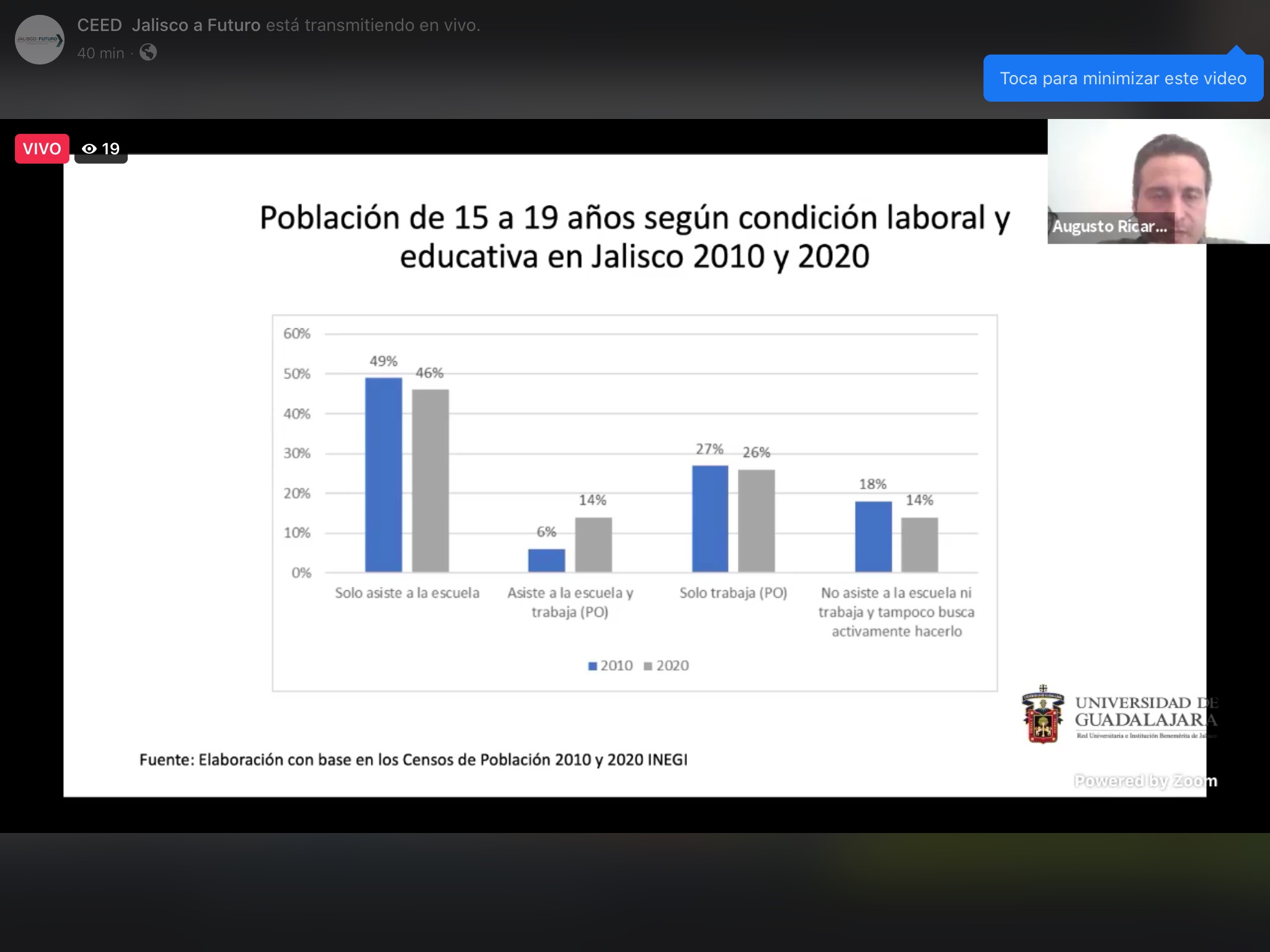 Así lo explicaron especialistas convocados por el Centro de Estudios Estratégicos para el Desarrollo (CEED), de la Universidad de Guadalajara, para participar en el webinar de análisis de los resultados del Censo de Población y Vivienda, del Instituto Nacional de Estadística y Geografía (Inegi) 2020; el ejercicio fue moderado por el doctor Adrián Acosta Silva, Coordinador Académico del Proyecto Jalisco a Futuro.