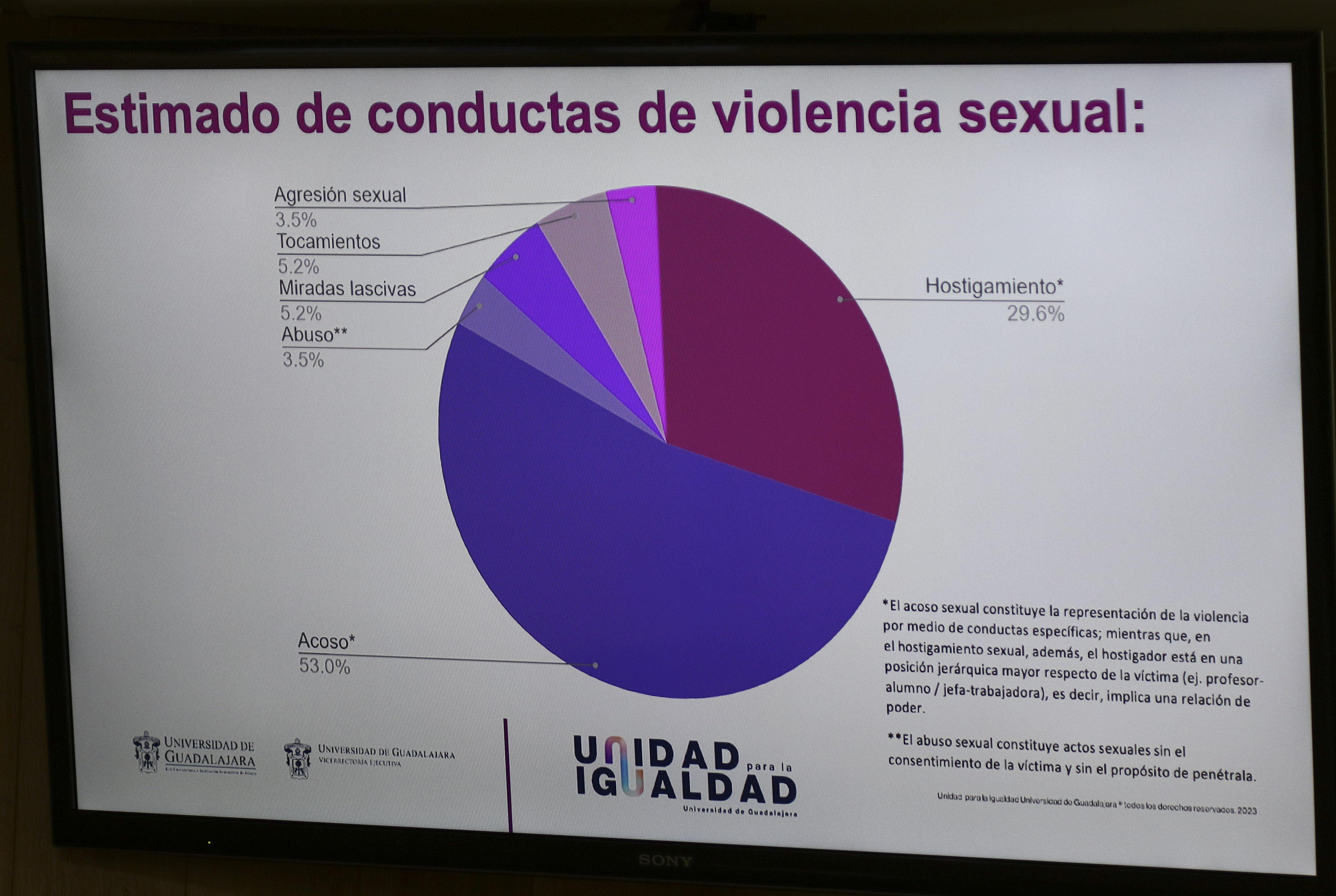 A un año de la puesta en marcha del Protocolo para la Prevención, Atención, Sanción y Erradicación de la Violencia de Género en la Universidad de Guadalajara (UdeG) se han aplicado 36 suspensiones a estudiantes y trabajadores, que van desde días y hasta de 3 a 8 meses; nueve trabajadores ya no están en funciones o fueron separados del cargo; se realizaron 73 apercibimientos y se aplicaron 59 medidas reeducativas entre el alumnado y personal universitario.