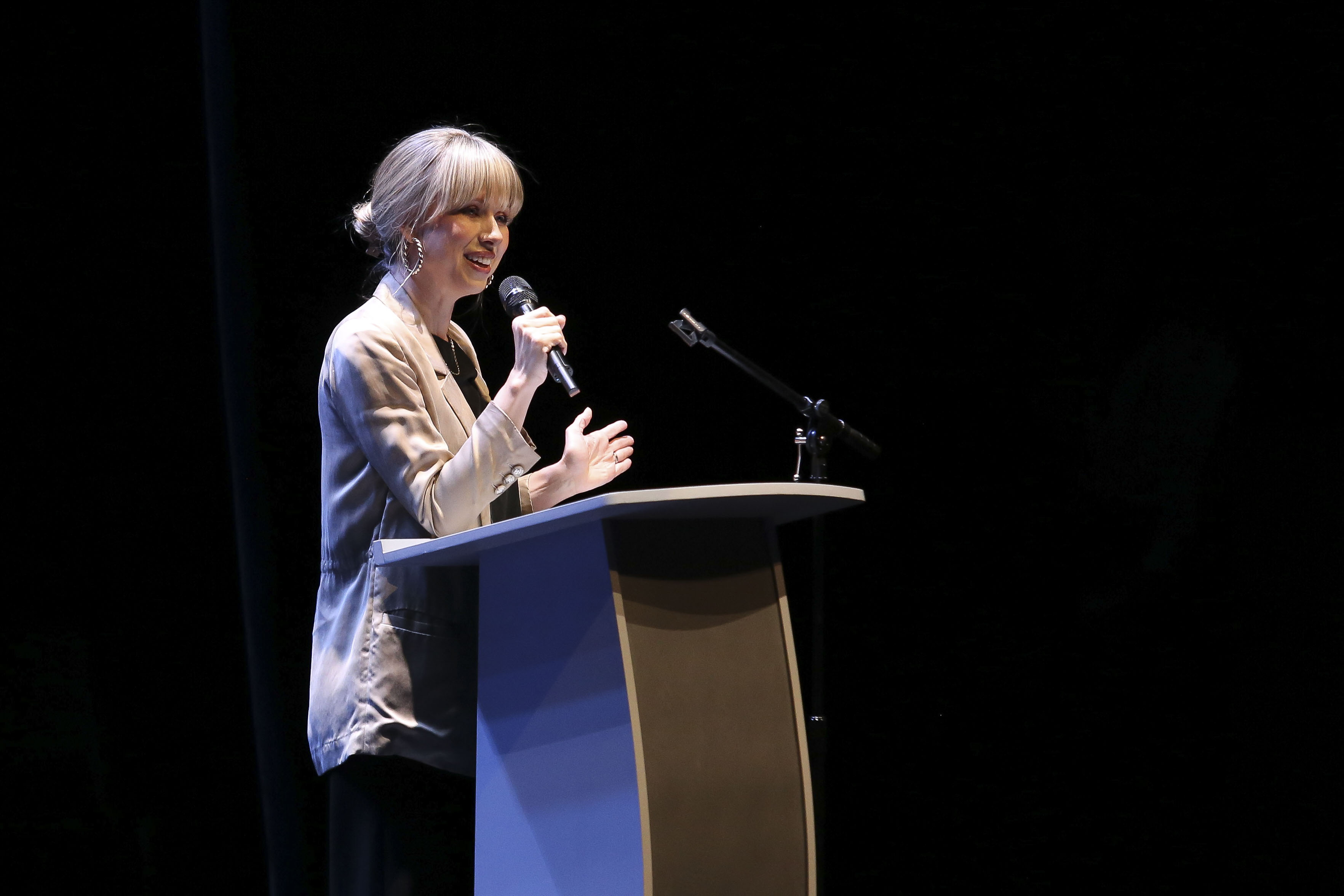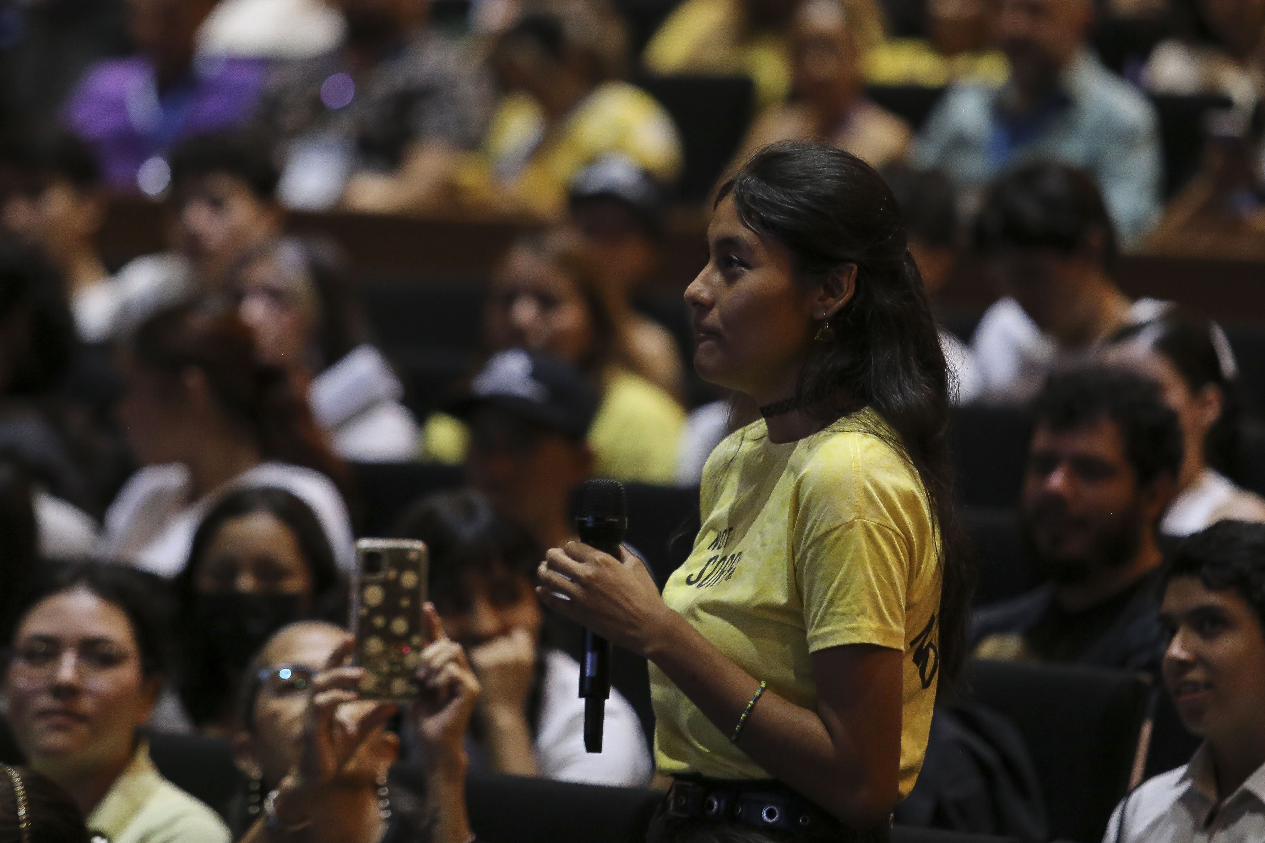 Ante una sala Plácido Domingo completamente llena en su mayoría de jóvenes, la influencer recordó que su padre fue una influencia para ella al ser un estudioso del náhuatl y compartió que cada persona aprende a su ritmo, por lo que exhortó a los estudiantes a no compararse con sus compañeros y a apegarse a su propia forma de aprender.