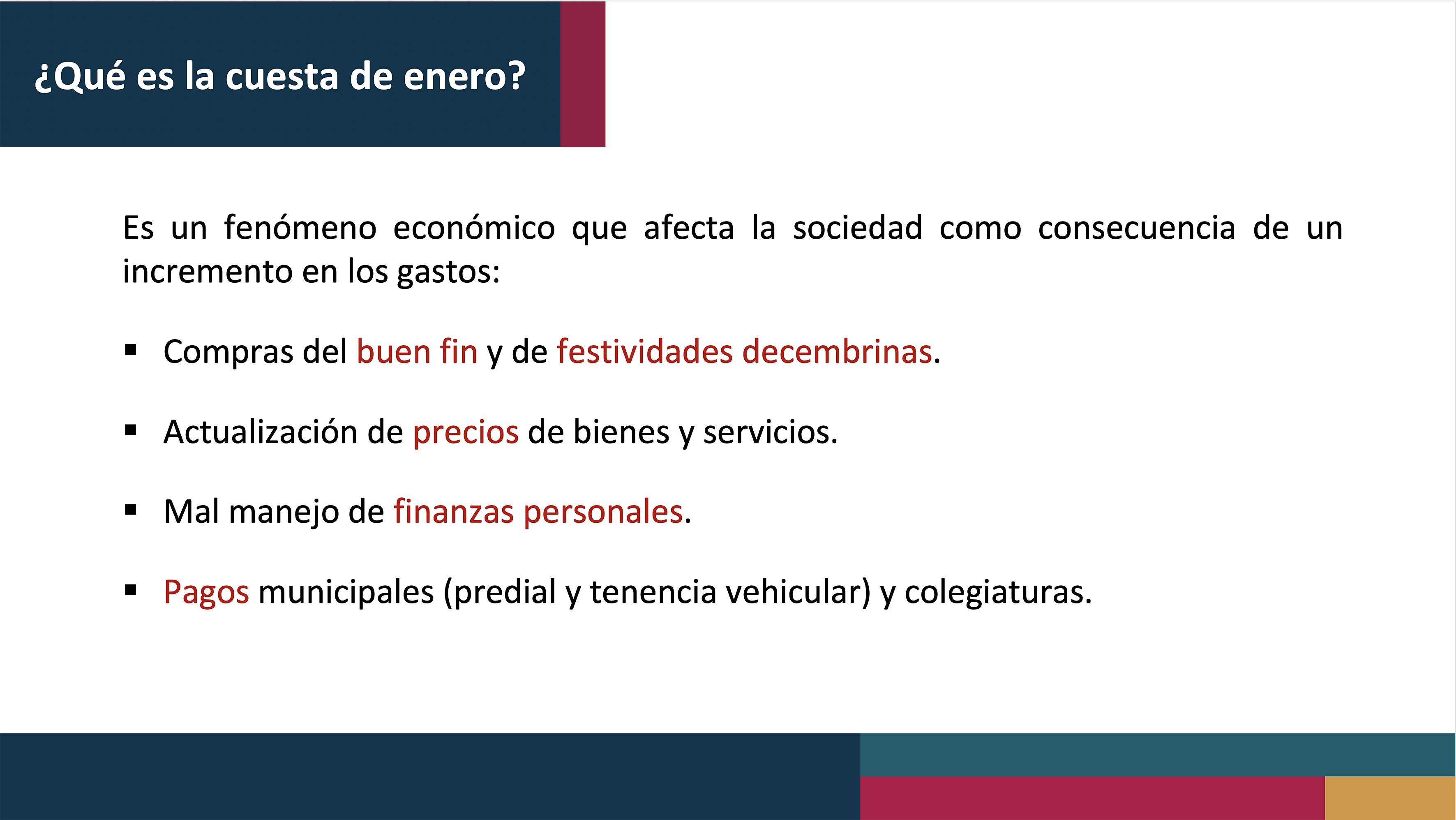 Becerra Peña explicó que aunado a estos gastos, a inicios de año también se prevén aumentos en los impuestos municipales y a servicios como el agua o la electricidad, por lo que recomendó aprovechar los descuentos que se ofrecen para liquidar estos gastos.