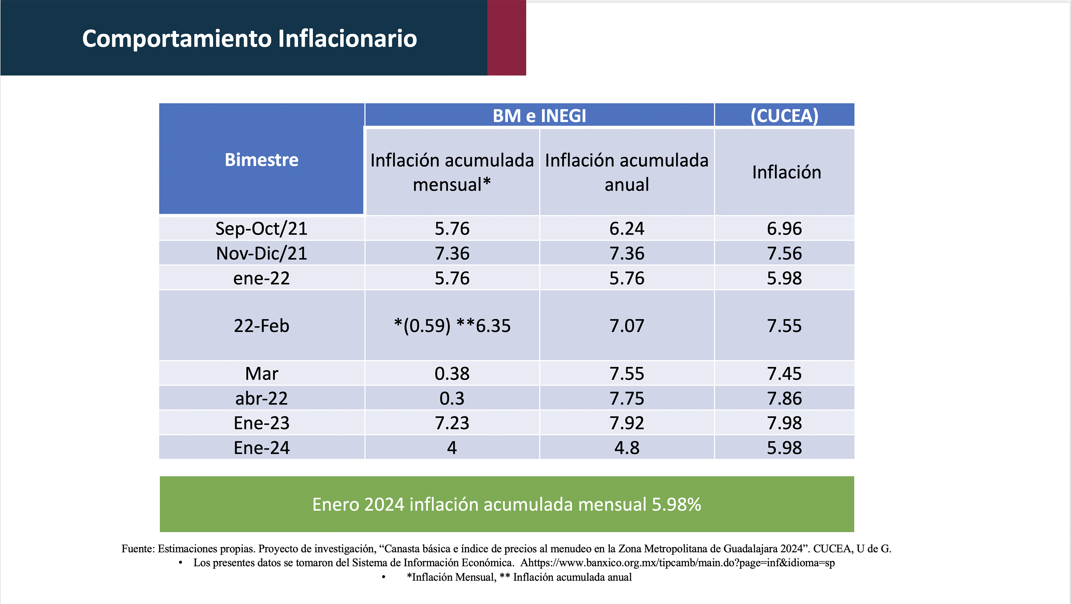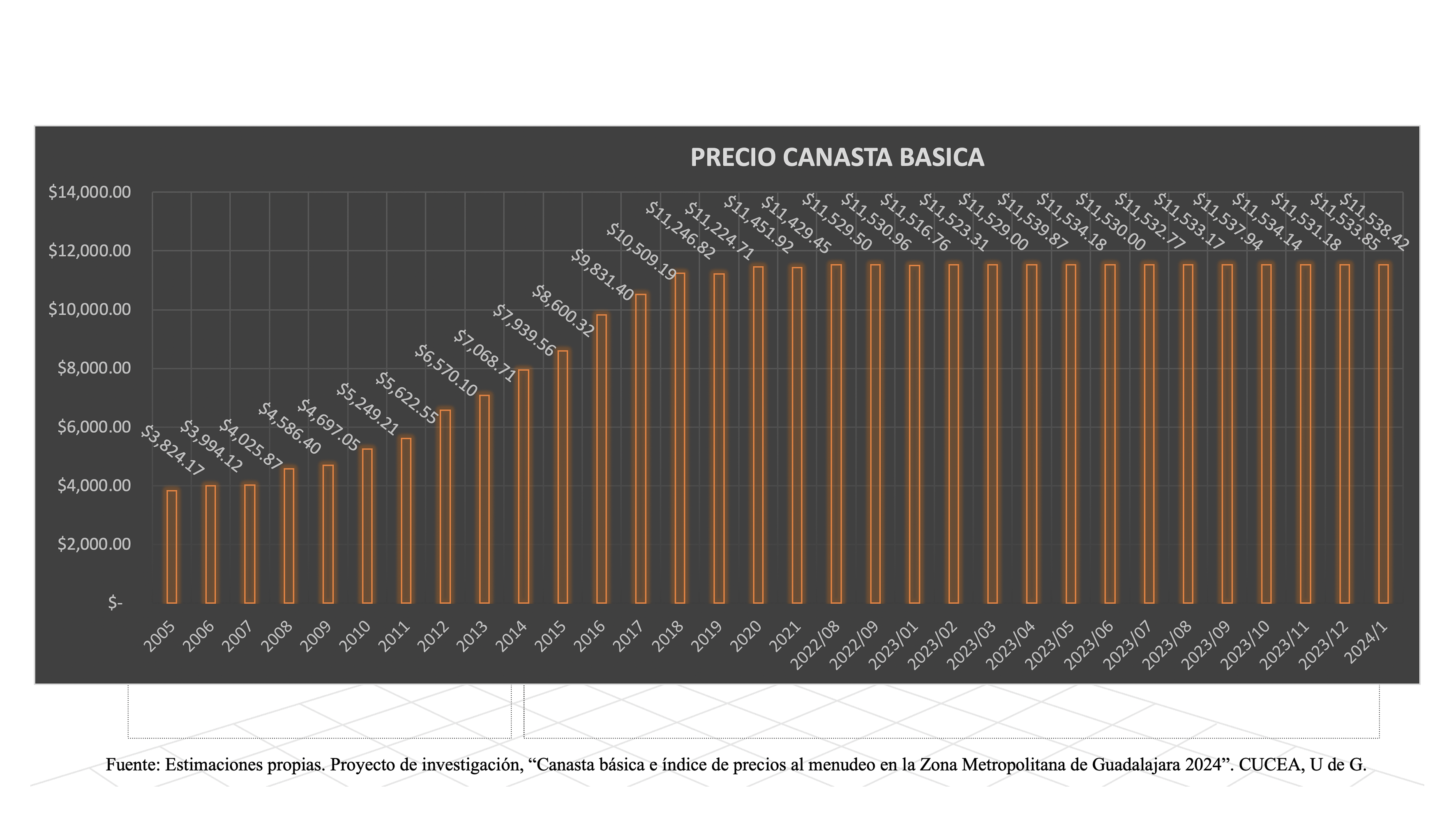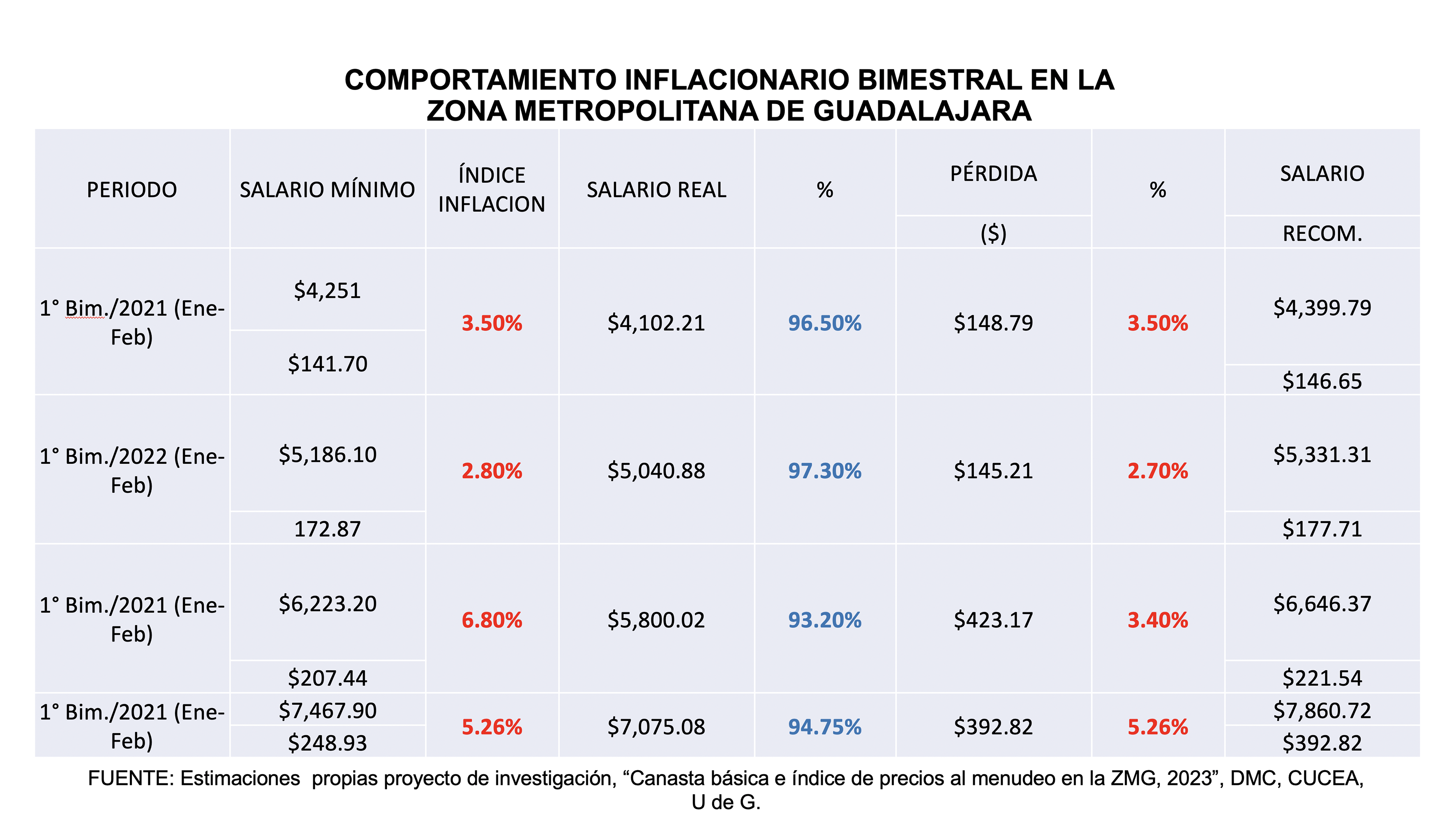 “Evaluamos 123 productos de la canasta básica, y 120 han presentado un incremento. Aunque sean incrementos pequeños de 10, 50 centavos o un peso, todo esto, acumulado, provoca dificultades para las personas que perciben un salario mínimo”, declaró el doctor Héctor Iván del Toro, profesor investigador del Departamento de Economía del CUCEA.