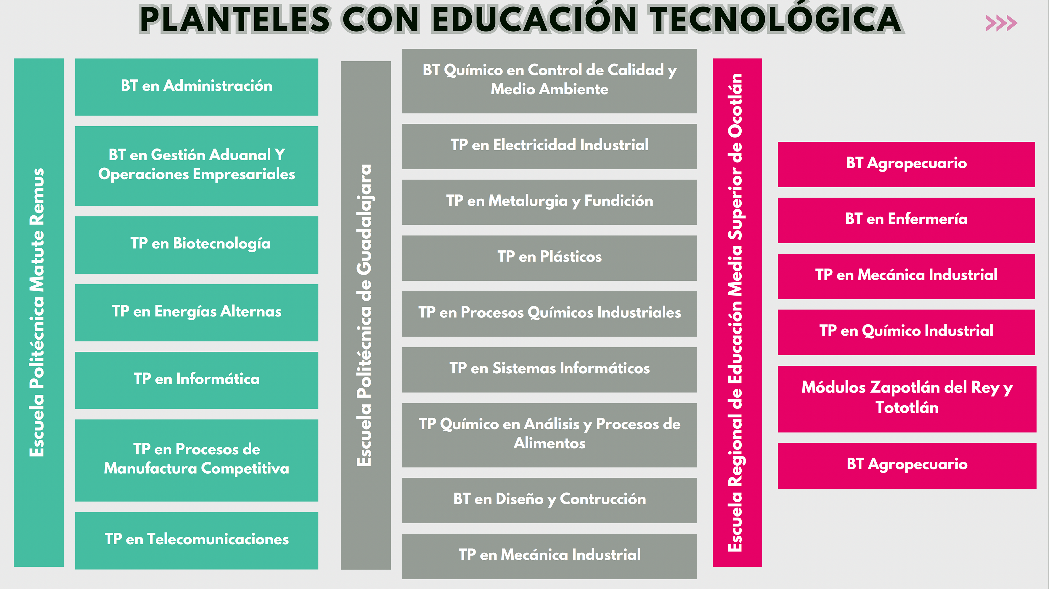 “Los bachilleratos tecnológicos se cursan en tres años; los bachilleratos tecnólogos profesionales se cursan en cuatro años; al finalizar se obtiene un título y un certificado. Todos los planes de estudio incluyen servicio social, prácticas profesionales y actividades relacionadas con el campo ocupacional del estudiante. Y los egresados pueden trabajar en empresas relacionadas con su área tecnológica o emprender su propio negocio”, apuntó.
