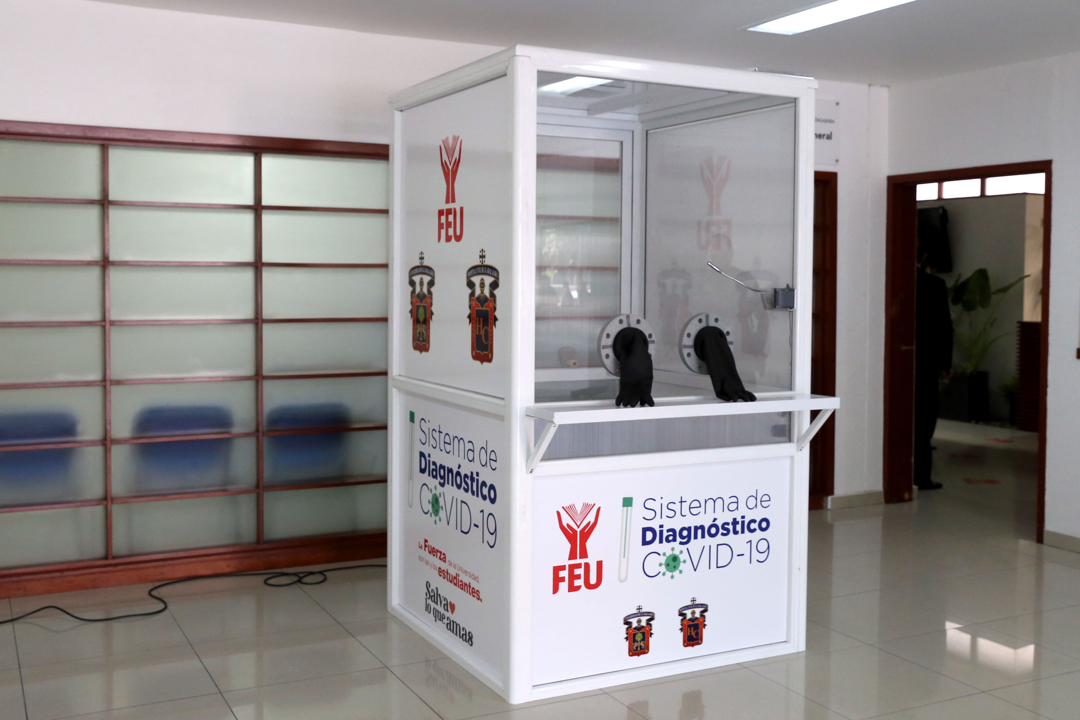 Se trata de las primeras cabinas de este tipo en el país, que ya fueron donadas al Hospital Civil de Guadalajara (HCG) y el Centro Universitario de la Costa (CUCosta), instancias donde son atendidas posibles personas contagiadas con el coronavirus SARS-CoV-2.
