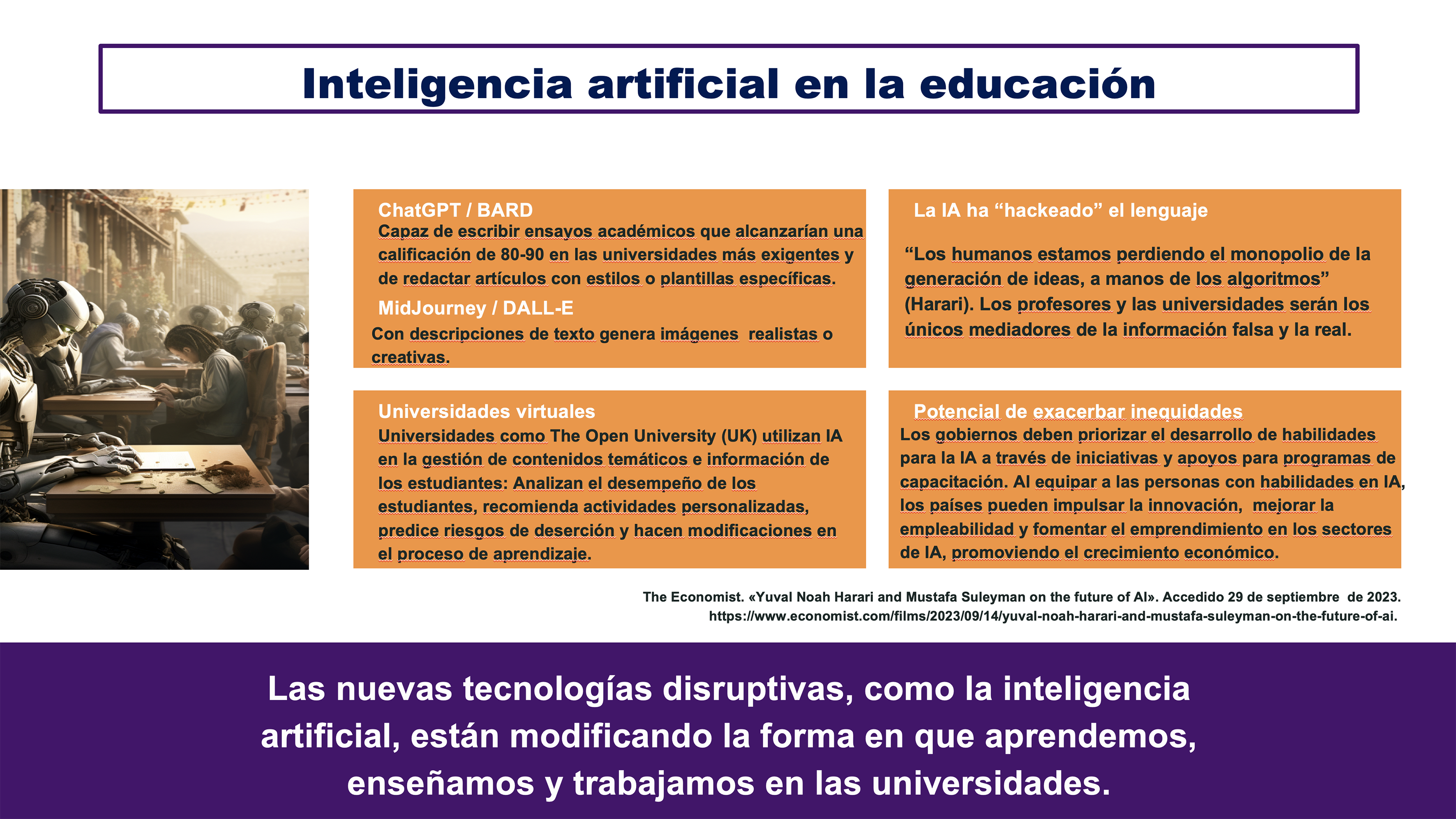Moreno Arellano consideró que desincentivar o prohibir el uso de estas herramientas entre docentes y estudiantes no es el camino ideal para impulsar la educación en México, debido a que puede contribuir a ampliar brechas de desigualdad o a limitar el acceso a estas tecnologías.