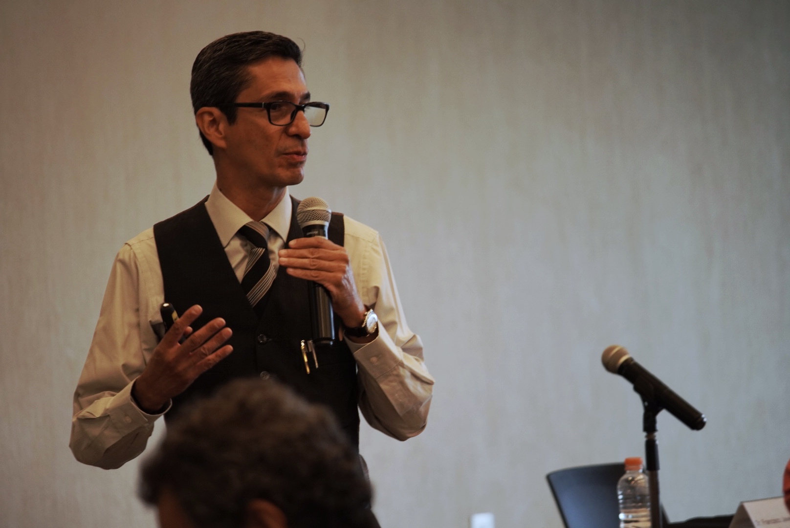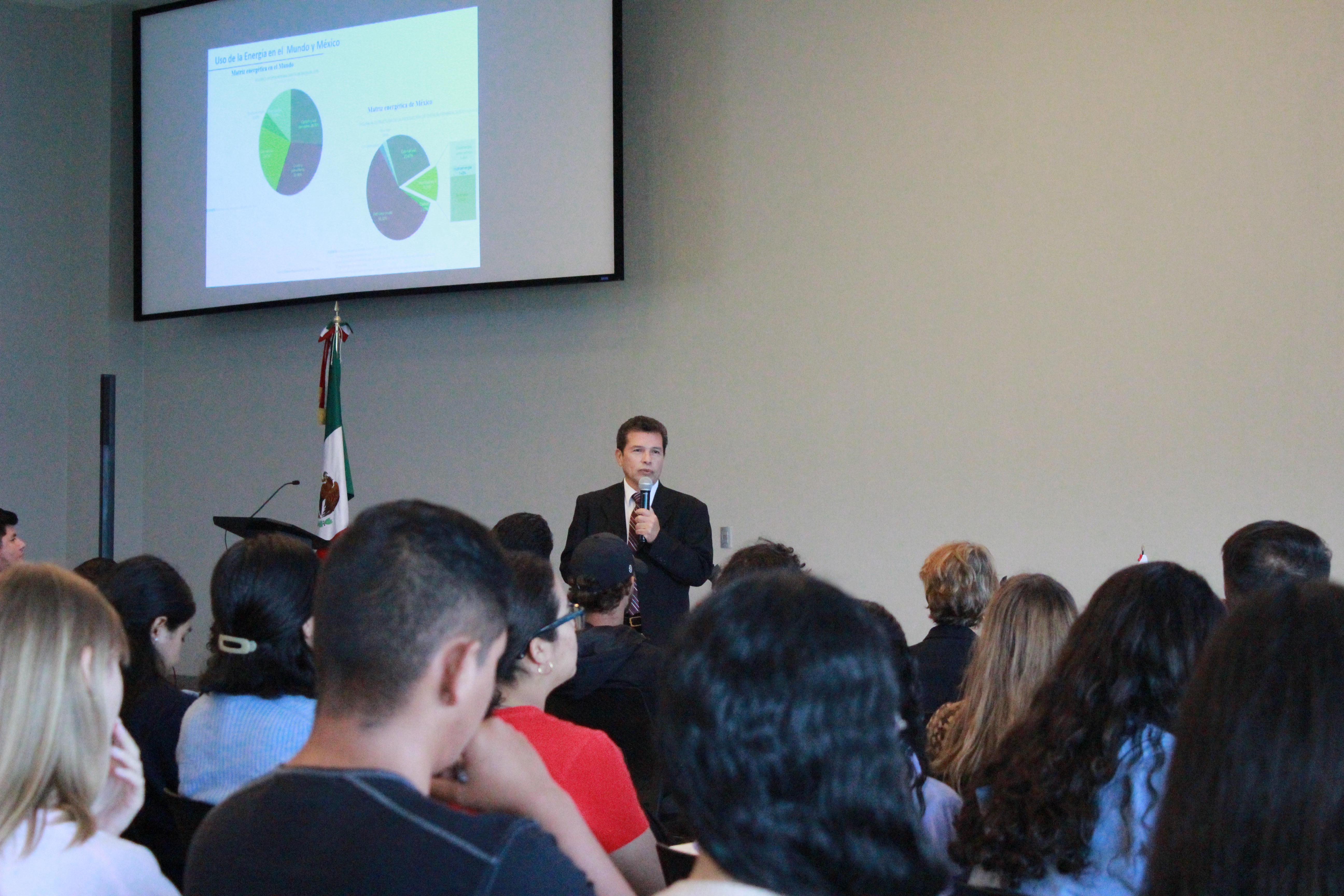 Durante la charla habló de diferentes estrategias que se han aplicado en México para disminuir el uso de energía eléctrica o la creación de vivienda sustentable.