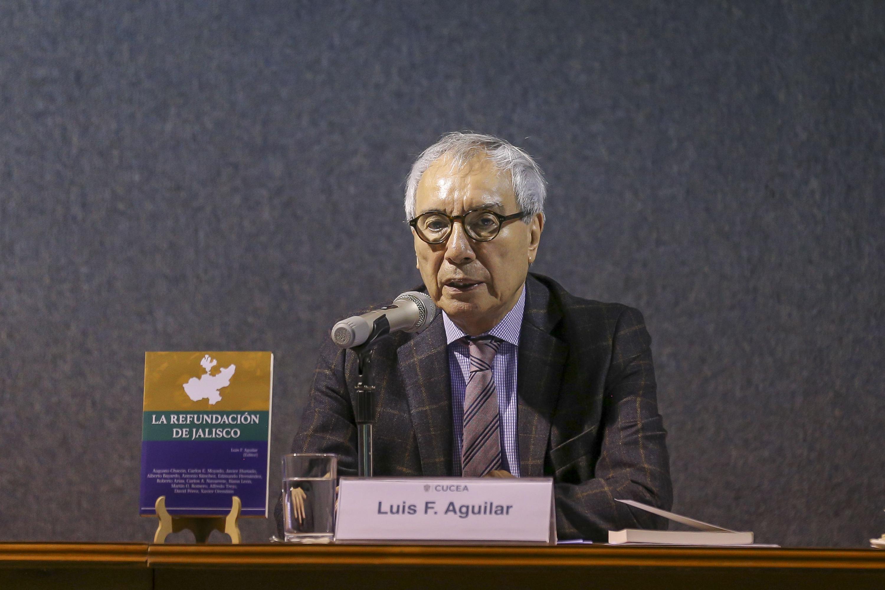 “En el libro, Aguilar Villanueva describe qué es lo que Alfaro Ramírez entiende por refundación, y lo dividió en dos tiempos: cuando estaba en campaña electoral y lo presenta como su proyecto principal, que implica la ruptura del viejo régimen, y después, ya cuando toma posesión. Los principios de refundar, citando al propio gobernador, es hacer que la vida se asiente firmemente en el Estado de derecho, del régimen democrático, de una economía de mercado innovadora y sustentable, y de una sociedad solidaria e igualitaria”, declaró el Rector del CUCEA, maestro Luis Gustavo Padilla Montes.