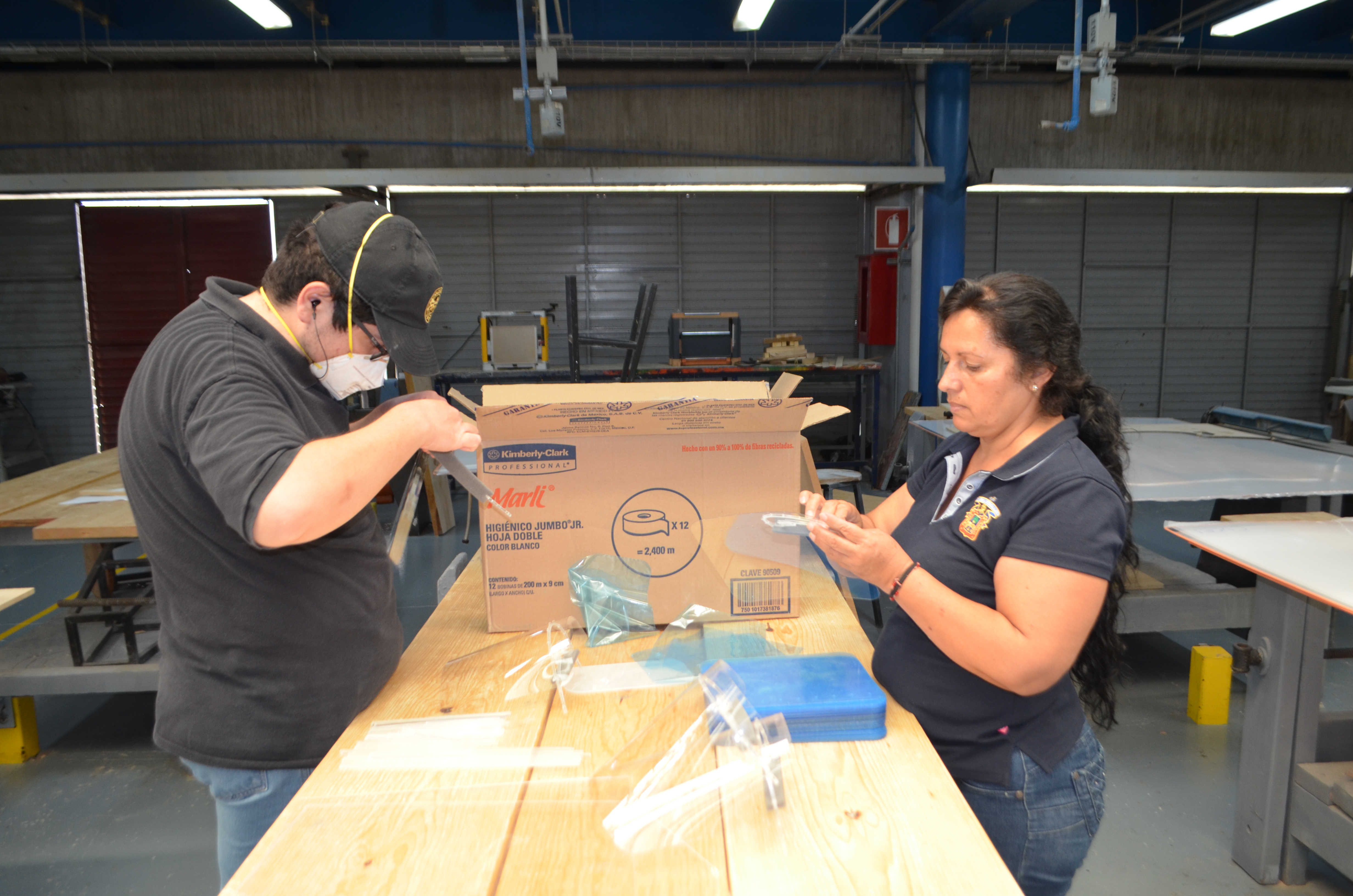 Entre el material que se ha elaborado se encuentran mascarillas para la protección de personal de salud, cubos para el resguardo de intubación y extubación del Covid-19, así como otras piezas que sirvan para generar la conexión múltiple en ventiladores de uso en nosocomios.