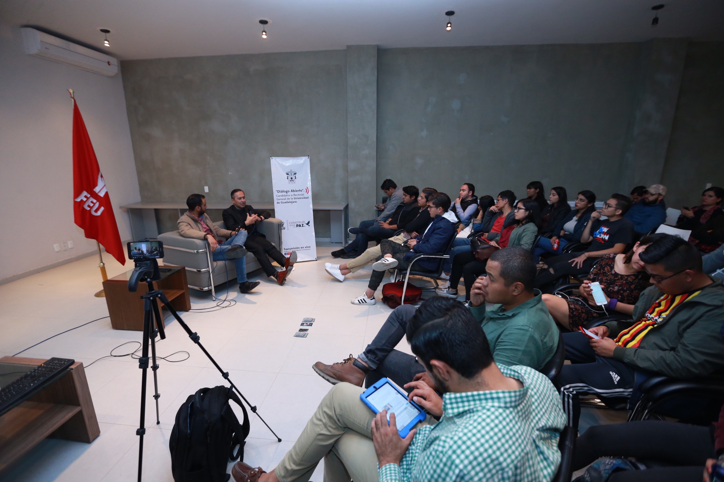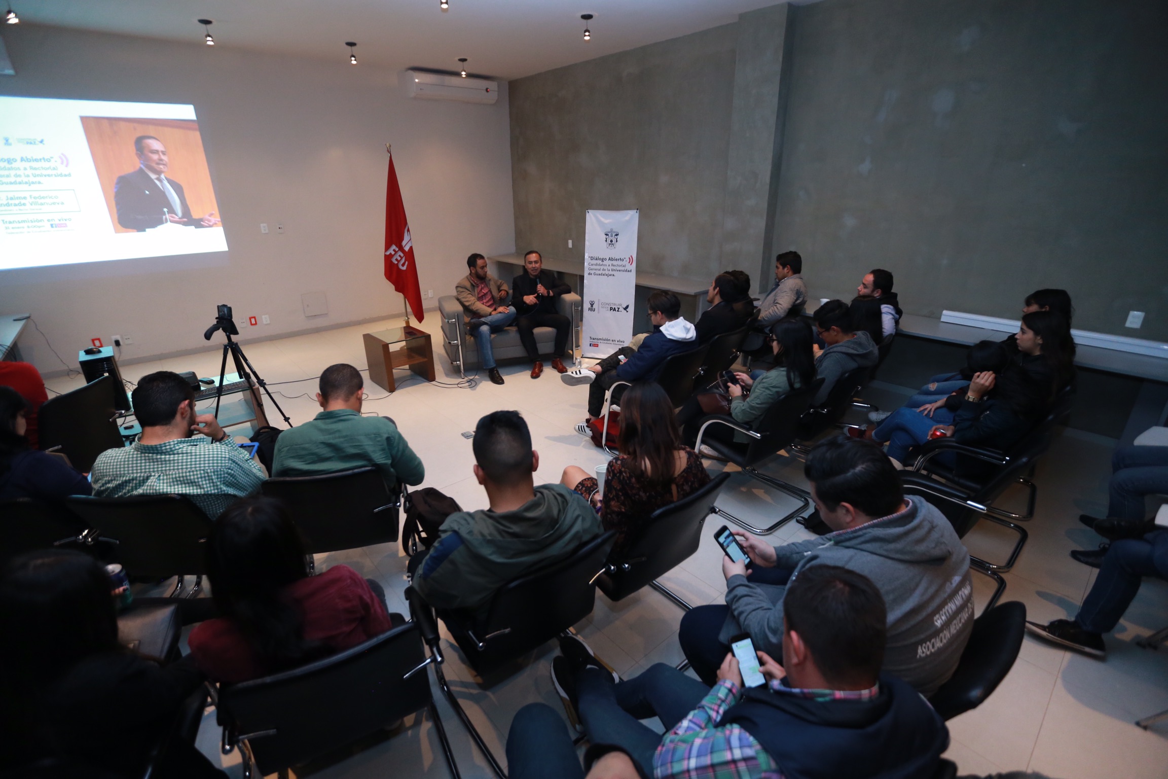 El incremento de espacios para que más personas estudien en la Universidad de Guadalajara (UdeG), fue una de las promesas que el doctor Jaime Federico Andrade Villanueva, candidato a Rector General de esta institución, dio a conocer la noche de este jueves 31 de enero, durante la tercera sesión “Diálogo abierto” que organiza la Federación de Estudiantes Universitarios (FEU).