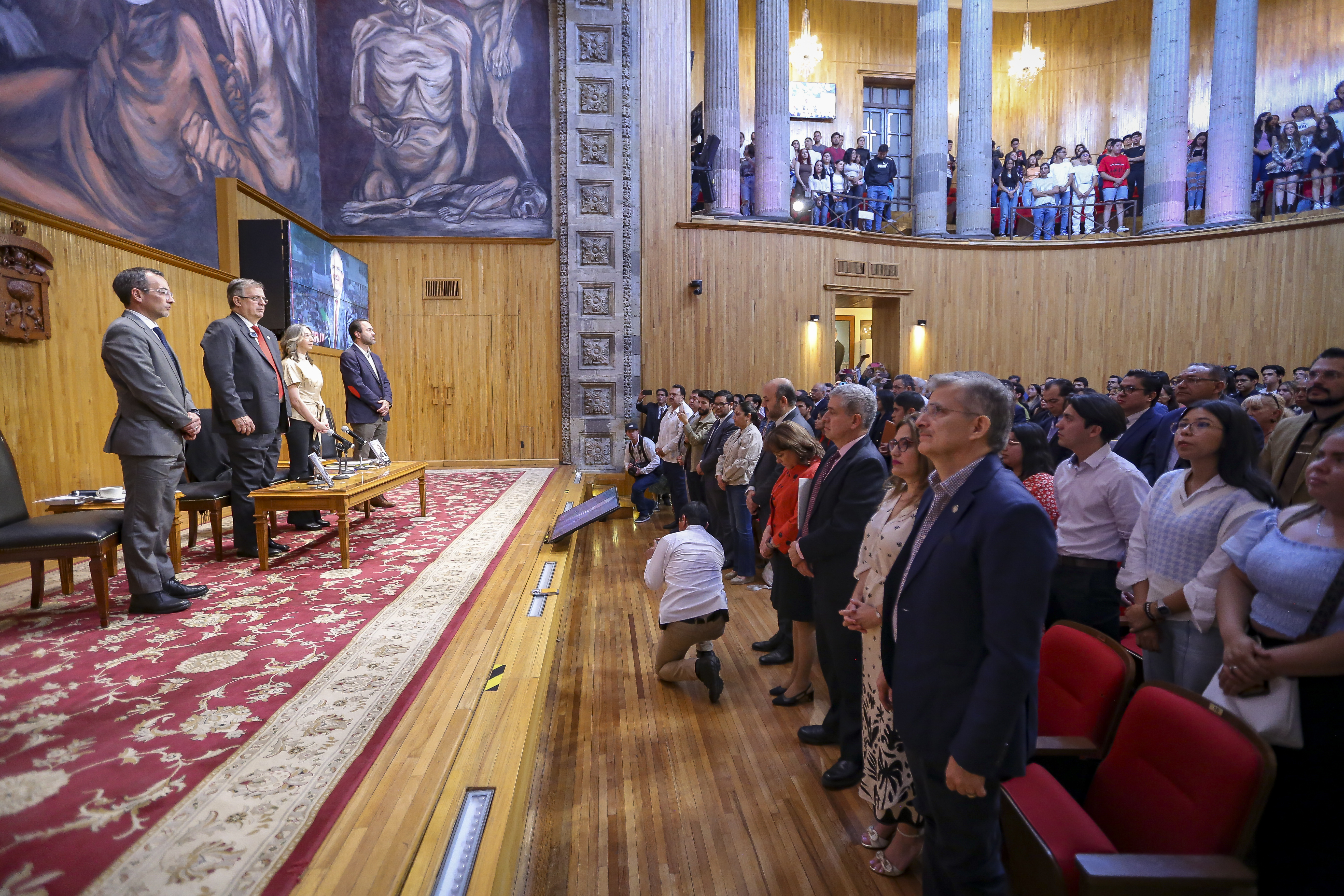 El Rector General de la UdeG, doctor Ricardo Villanueva Lomelí, agradeció la presencia del diplomático y sus aportaciones en política exterior, y expuso que su participación enriquece la reflexión y el diálogo en la materia.