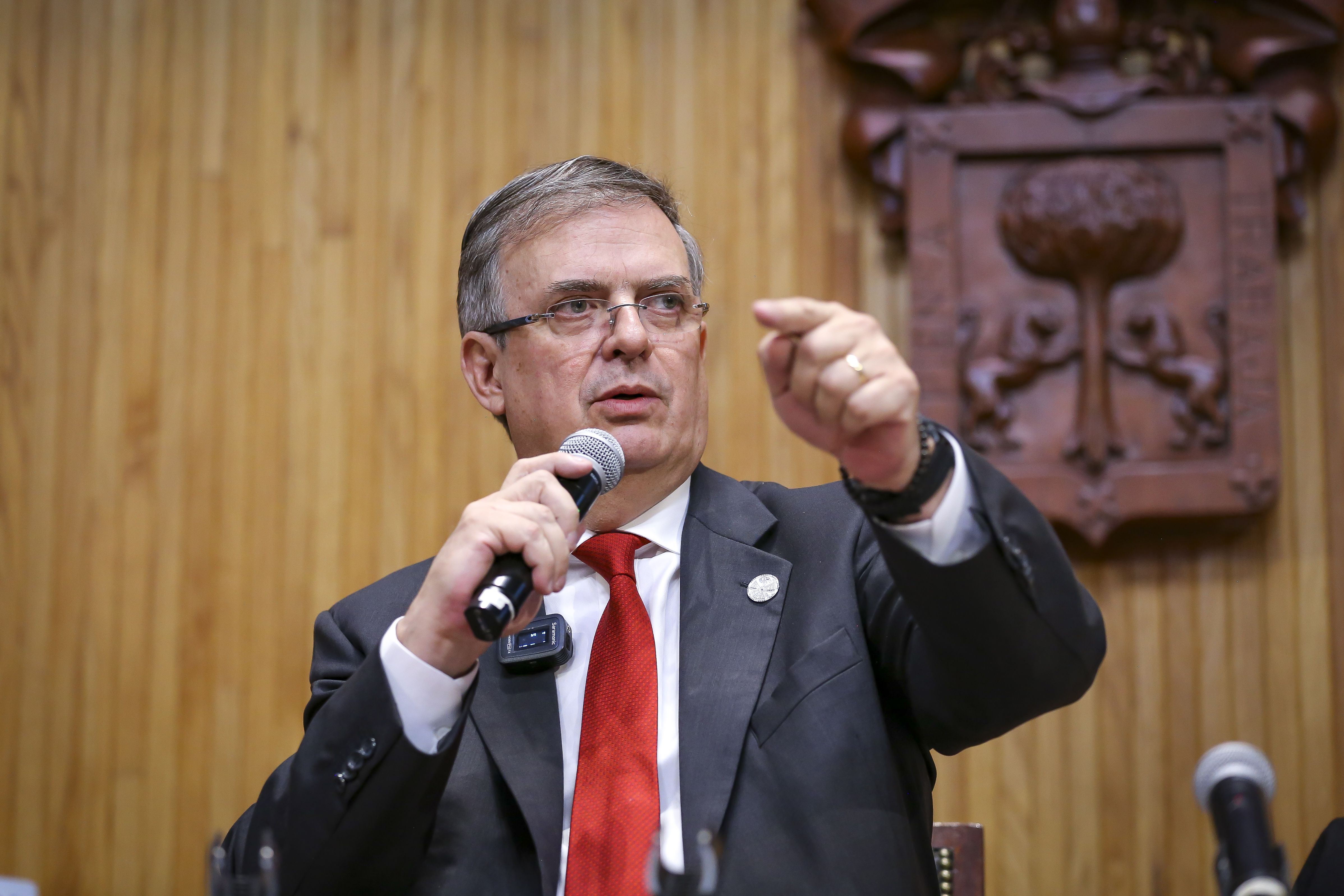 Como parte de la conferencia “Perspectivas de la política exterior de México”, el titular de la Secretaría de Relaciones Exteriores (SER) presentó ante un paraninfo lleno, su libro El camino de México, en el que reflexiona sobre los retos que enfrenta el país a través de pasajes de la historia reciente.