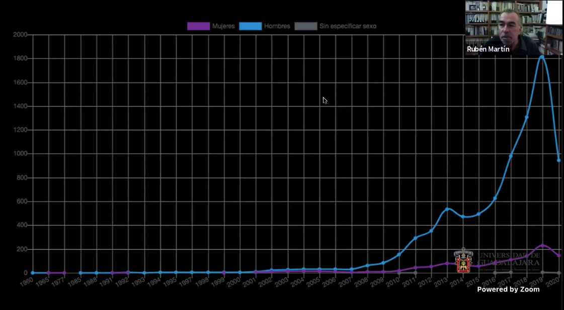 Rubén Martín habló de un desfase entre las cifras del Registro Nacional de Personas Desaparecidas, que reporta una cifra de 10 mil 248 y el Sistema de Información de Víctimas de Desaparición en Jalisc, que reporta 9 mil 439, desde 1995 y hasta el 31 de julio de 2020.