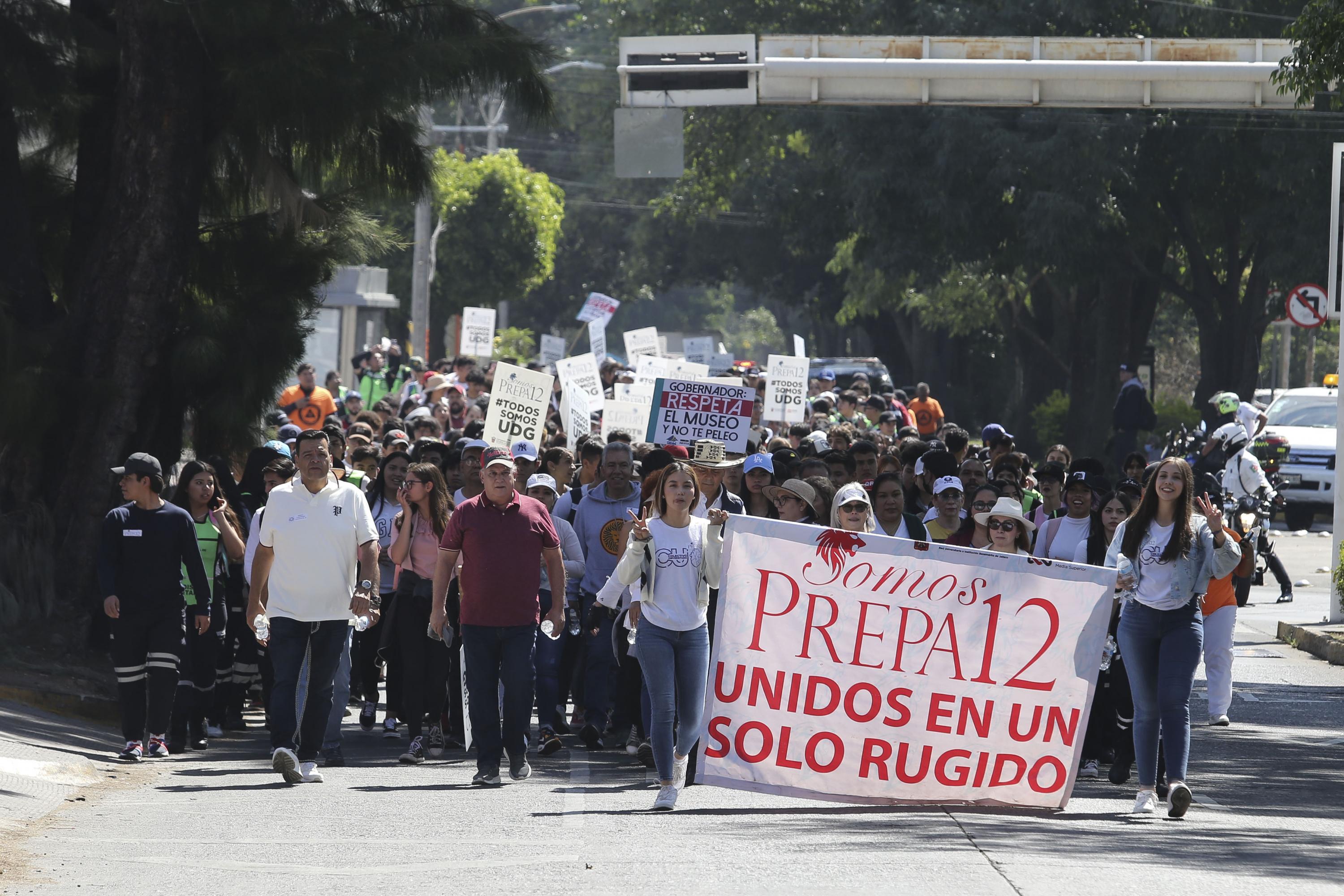 La Preparatoria 12 y el Módulo Tlaquepaque de la Universidad de Guadalajara (UdeG) salieron a las calles para solicitar respeto a la autonomía universitaria y un presupuesto justo para esta Casa de Estudio.