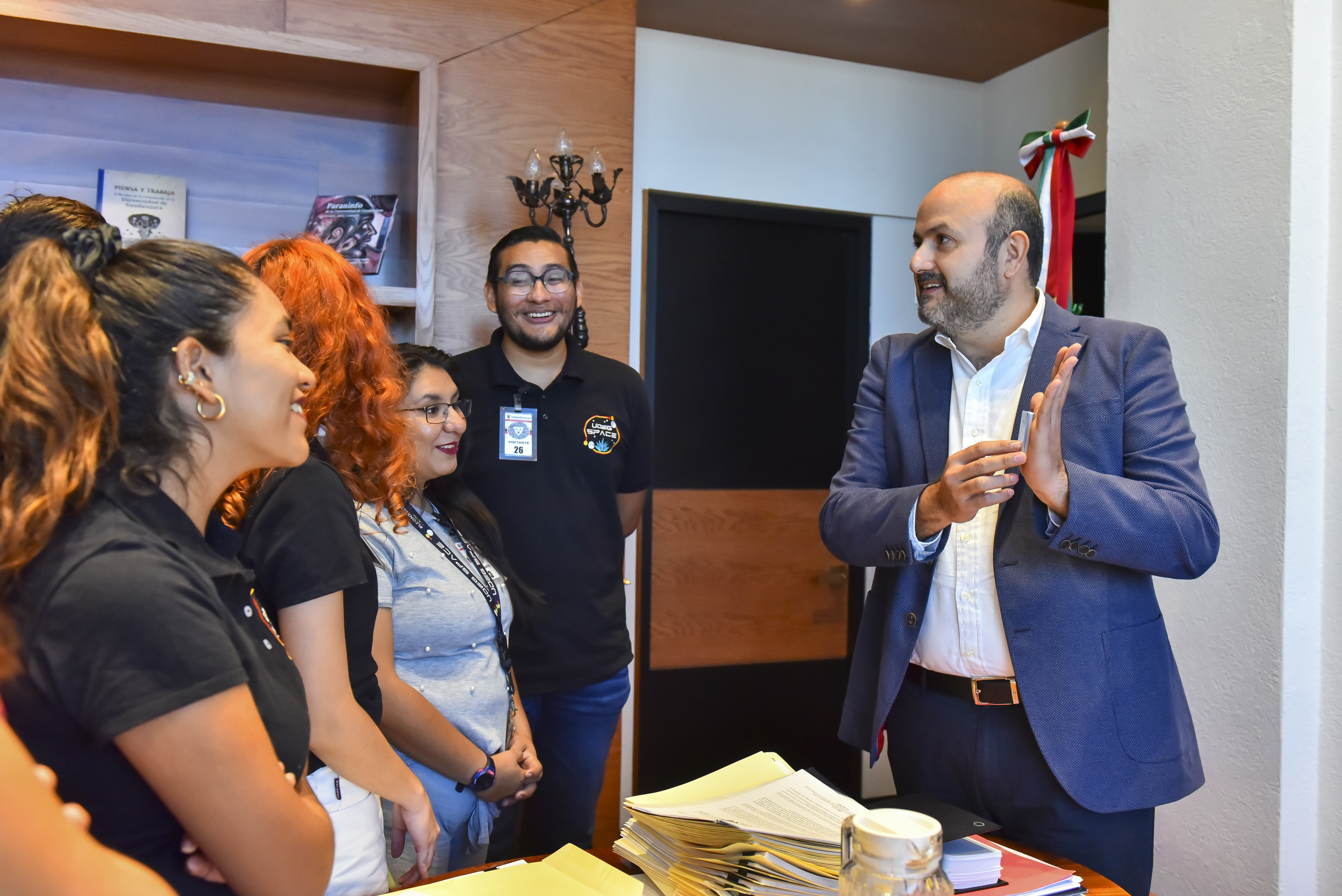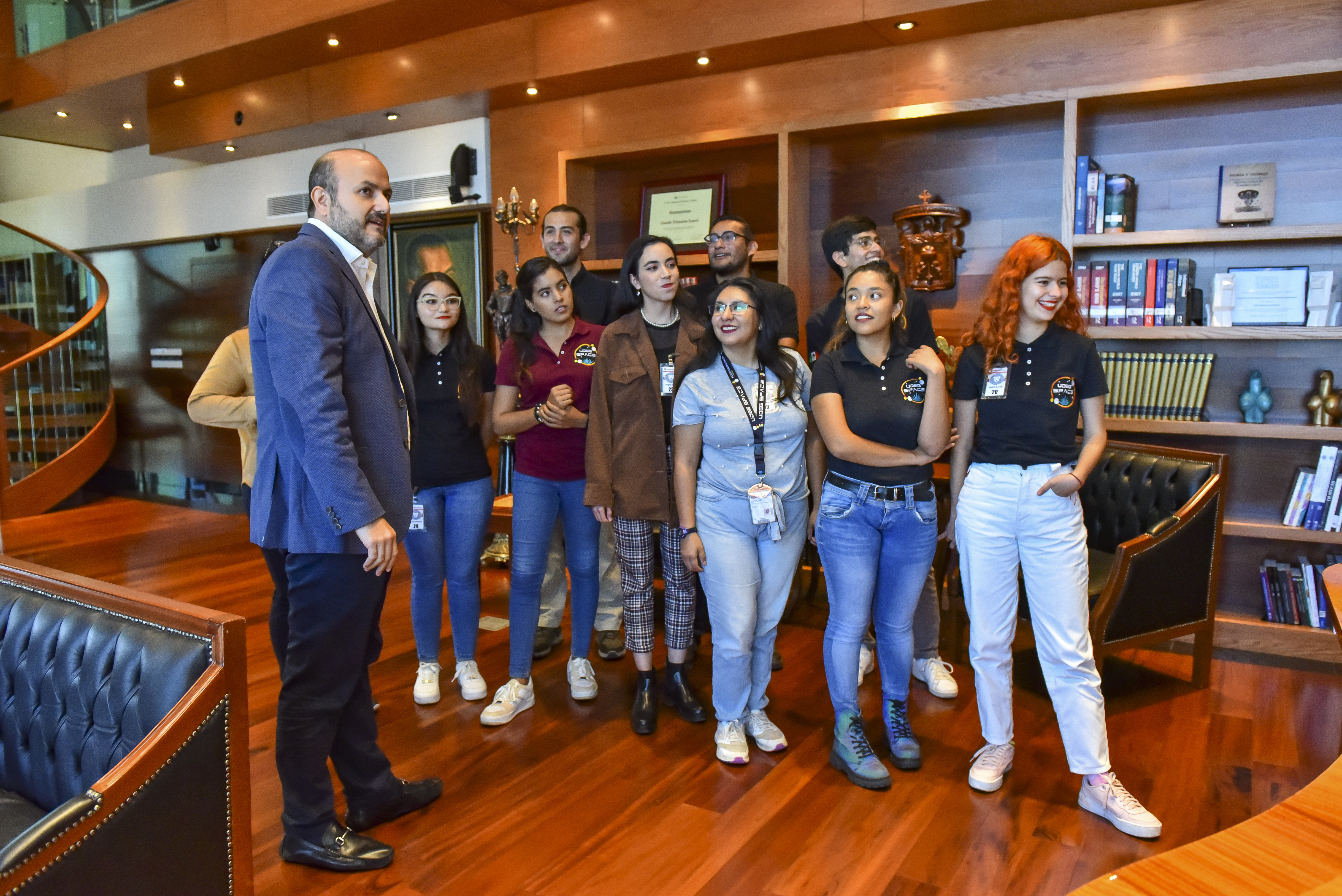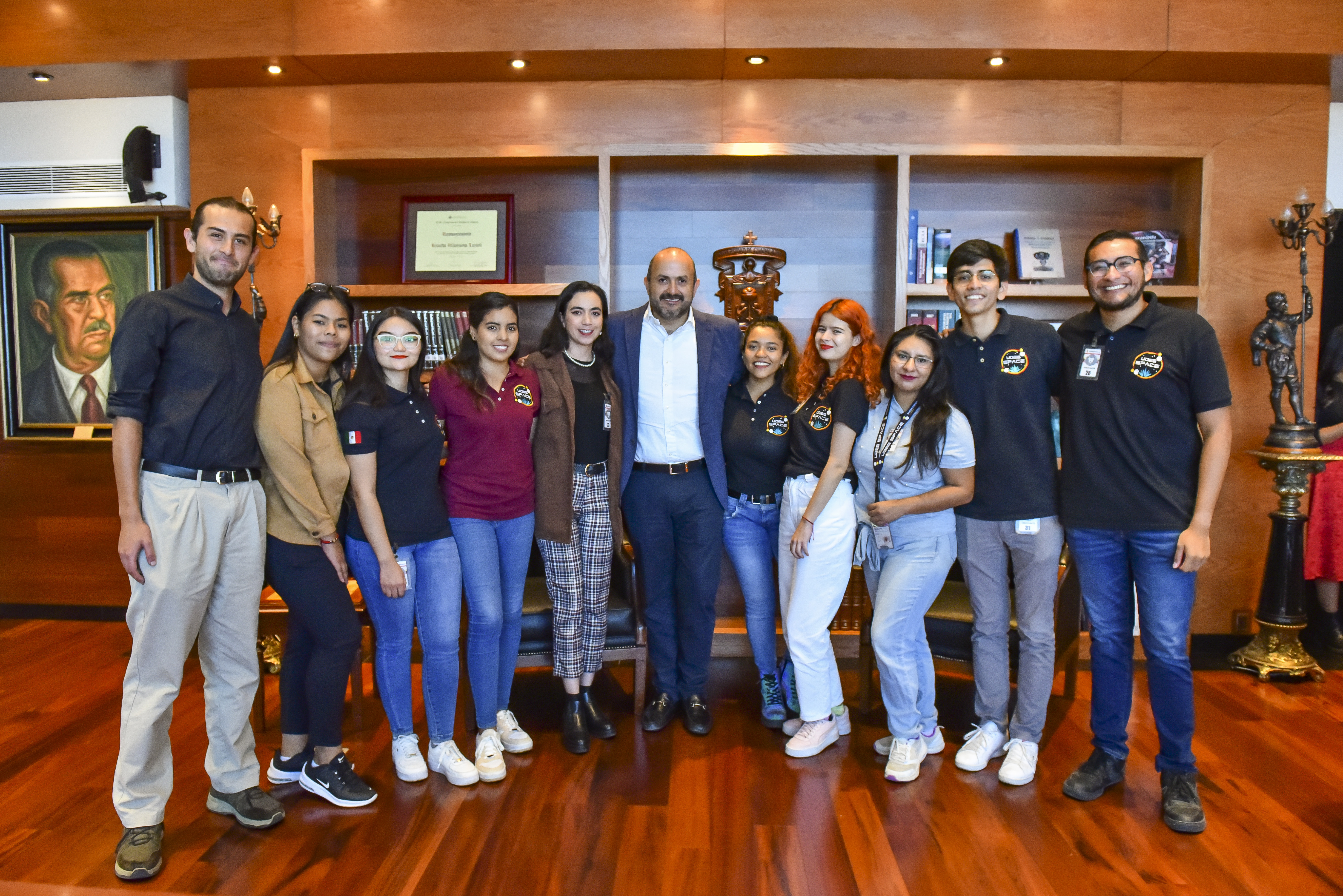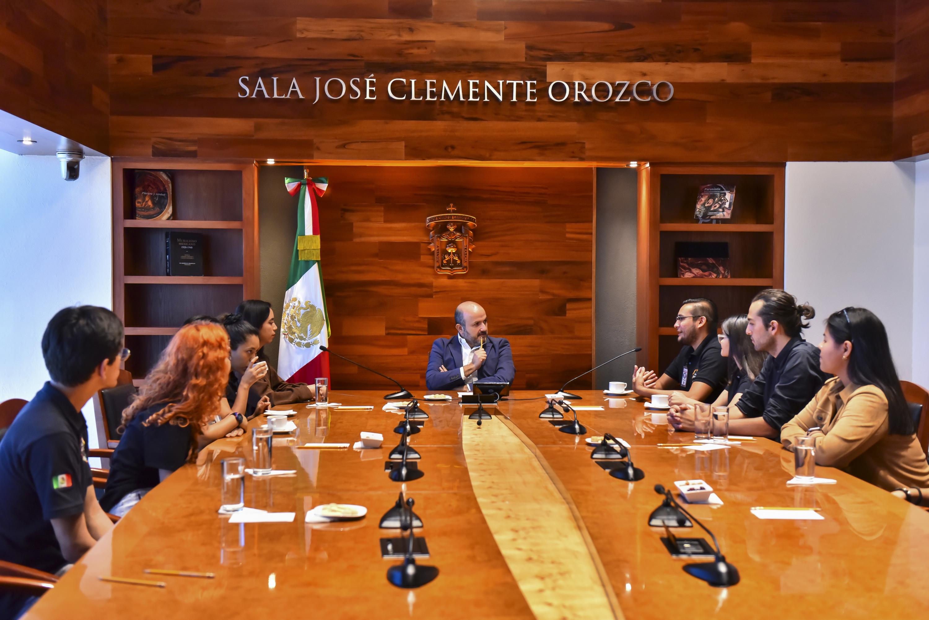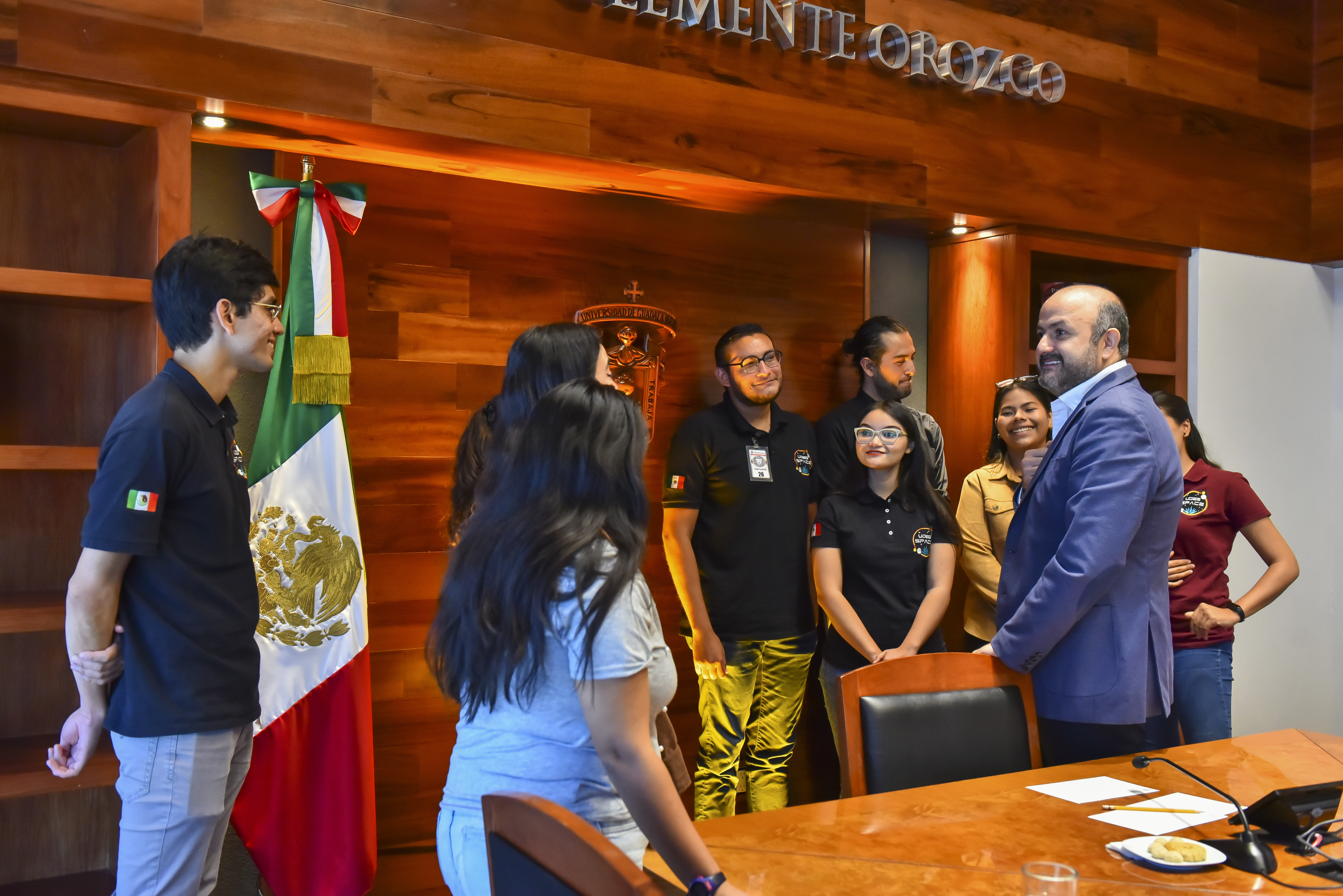 El Rector General de la Universidad de Guadalajara (UdeG), doctor Ricardo Villanueva Lomelí, se reunió con diez estudiantes, integrantes de UdeG Space, quienes participaron en la edición 73 del Congreso Internacional de Aeronáutica, celebrado en París, Francia; ahí presentaron un modelo de agricultura portátil autosustentable.