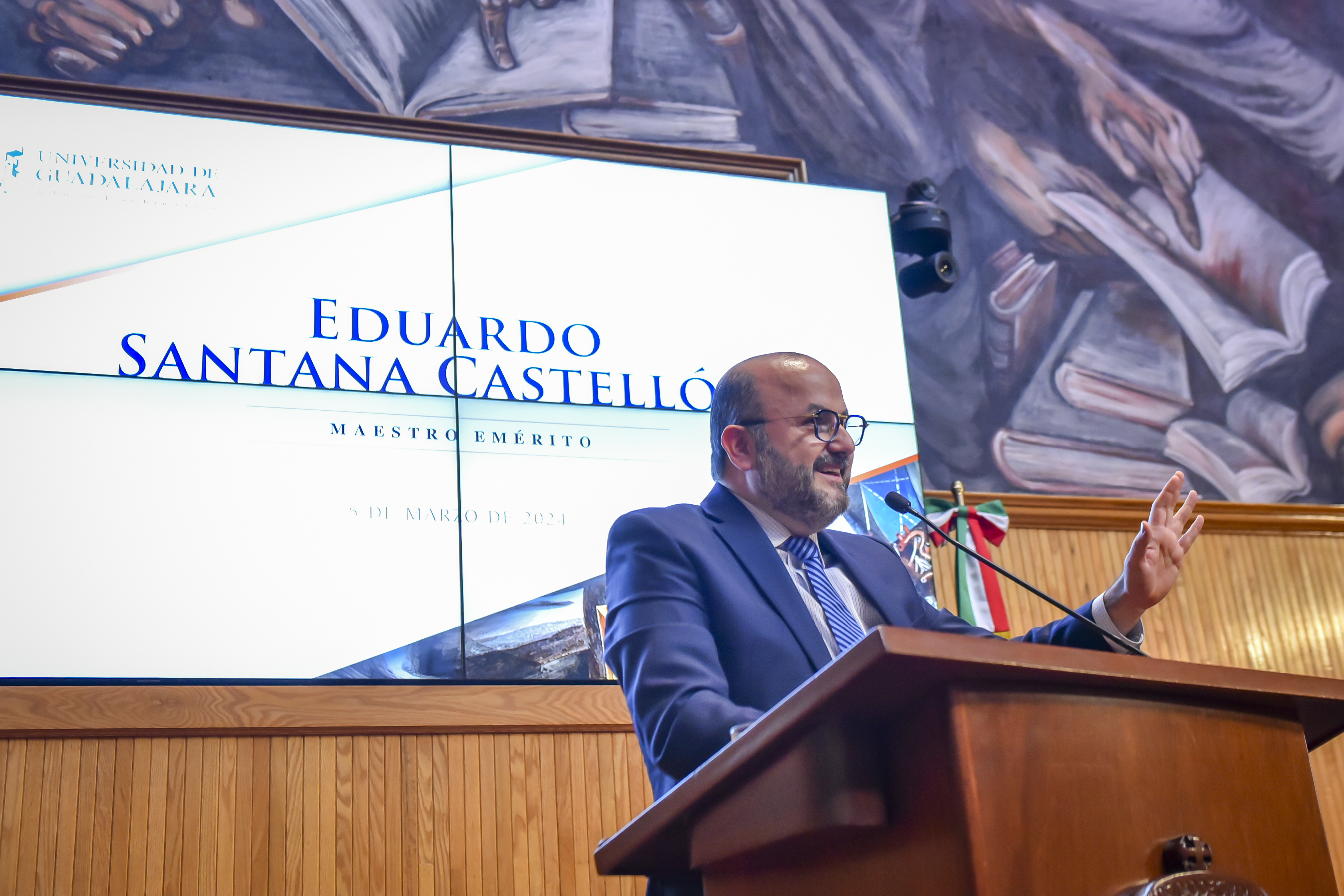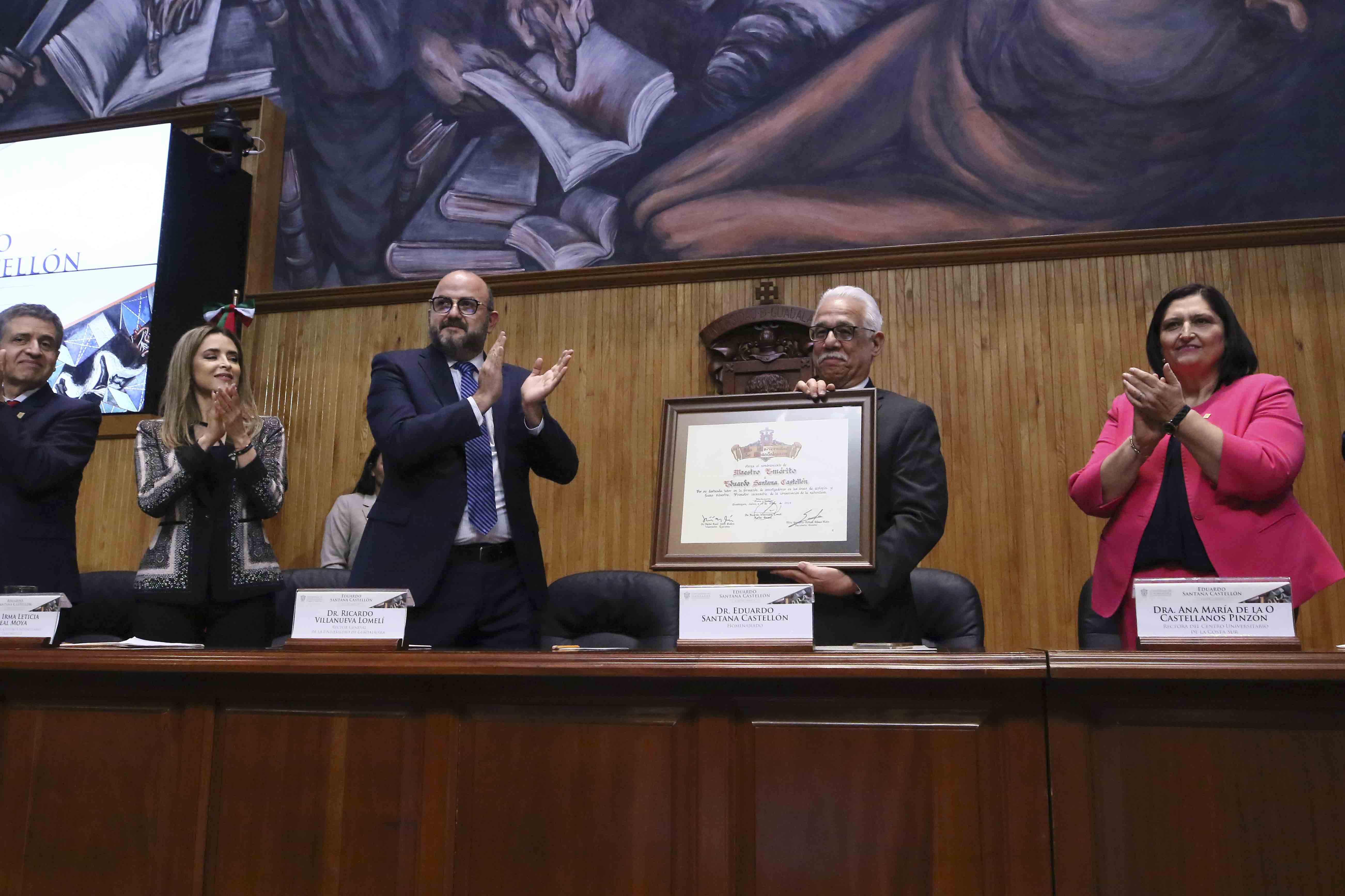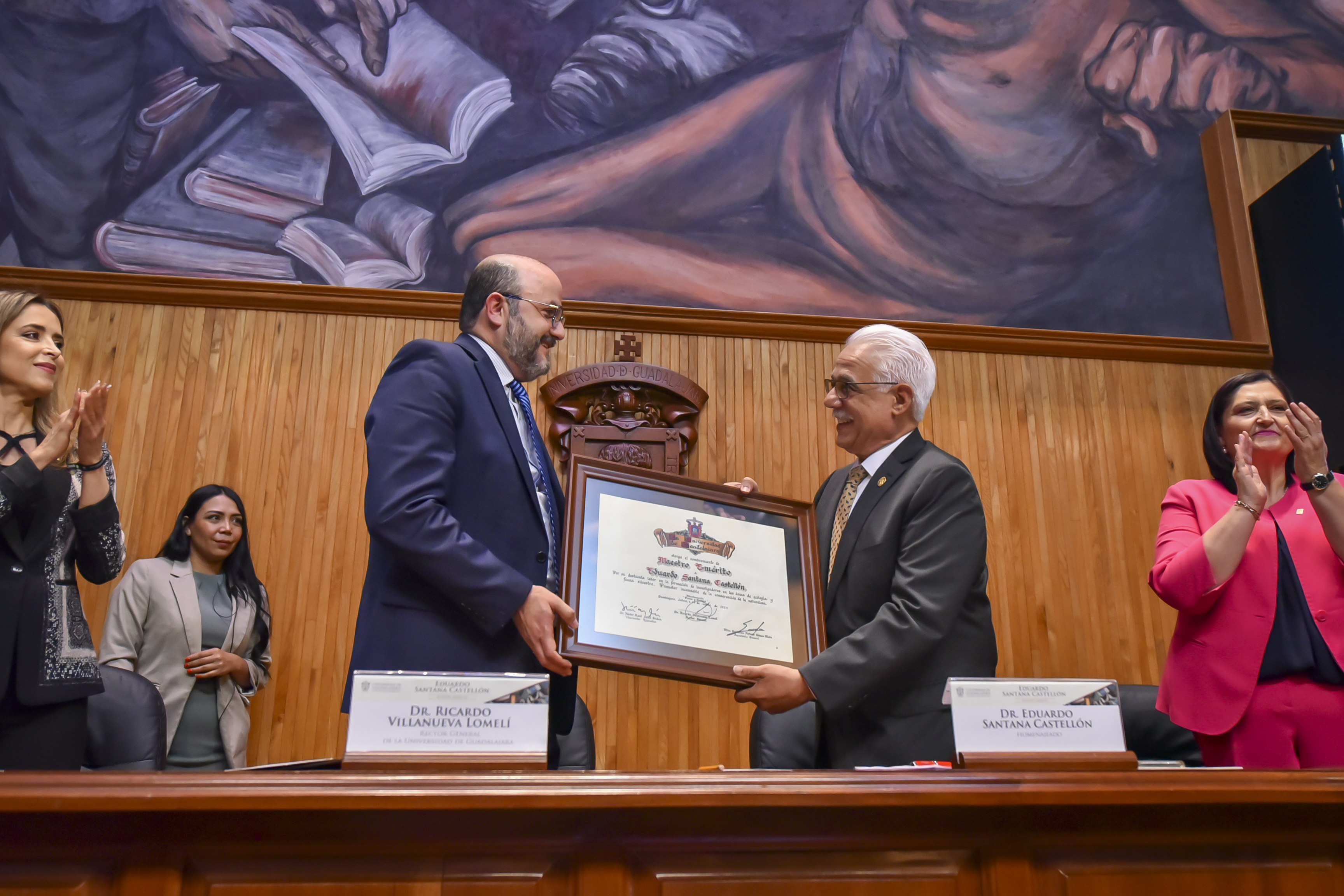 Por sus casi cuatro décadas de trabajo en la Universidad de Guadalajara y sus múltiples contribuciones al estudio de la ecología, fauna silvestre y a la formación de profesionales en el área, el doctor Eduardo Santana Castellón fue reconocido como Maestro Emérito de esta Casa de Estudio.