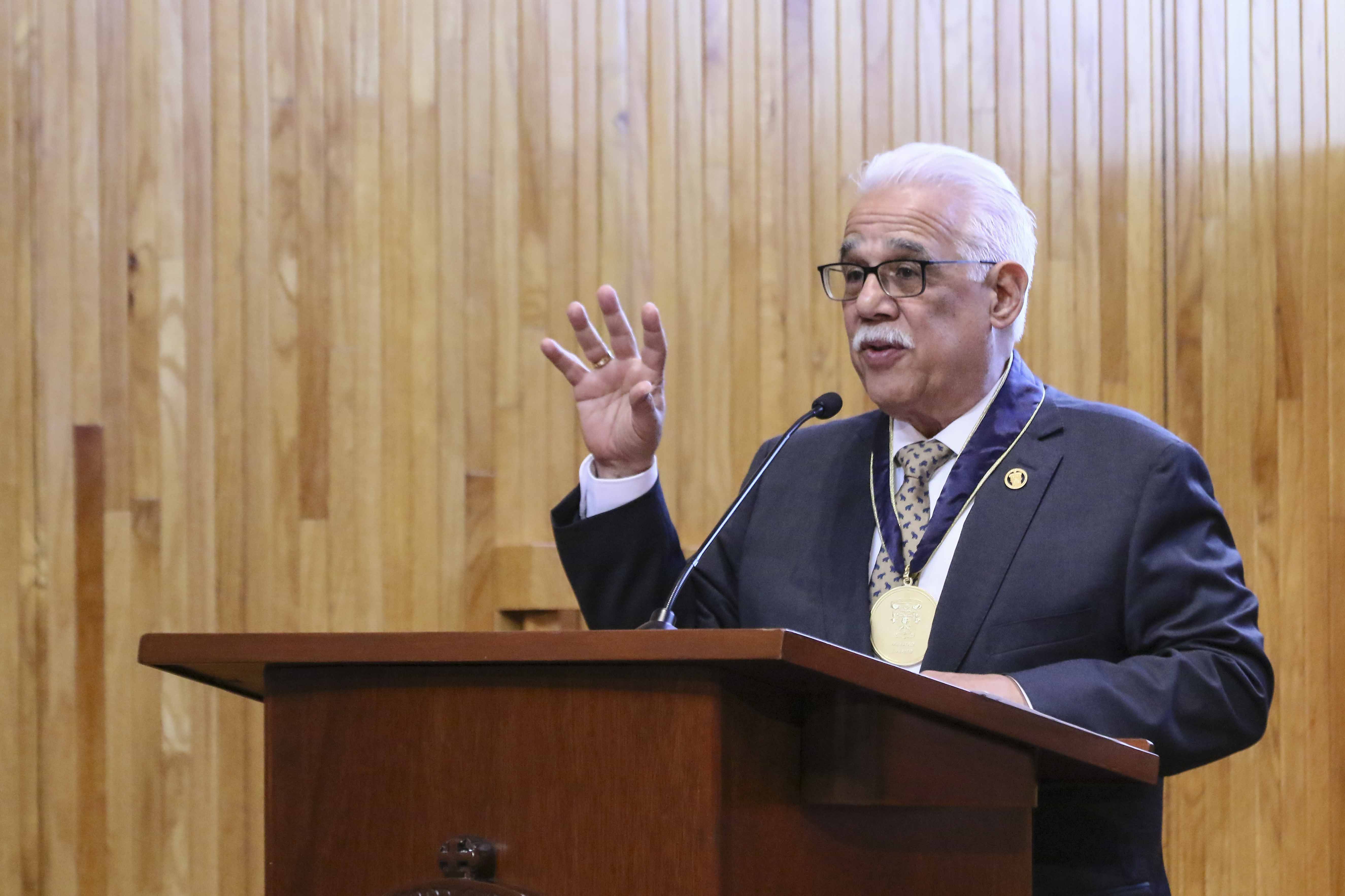 “Los universitarios actuales y futuros tenemos una gran deuda de gratitud con Eduardo Santana Castellón, por lo que hoy honramos su impecable trayectoria y su ejemplo universitario, pero también su ser humano comprometido con la conservación y la restauración de la naturaleza”, abundó el Rector General.