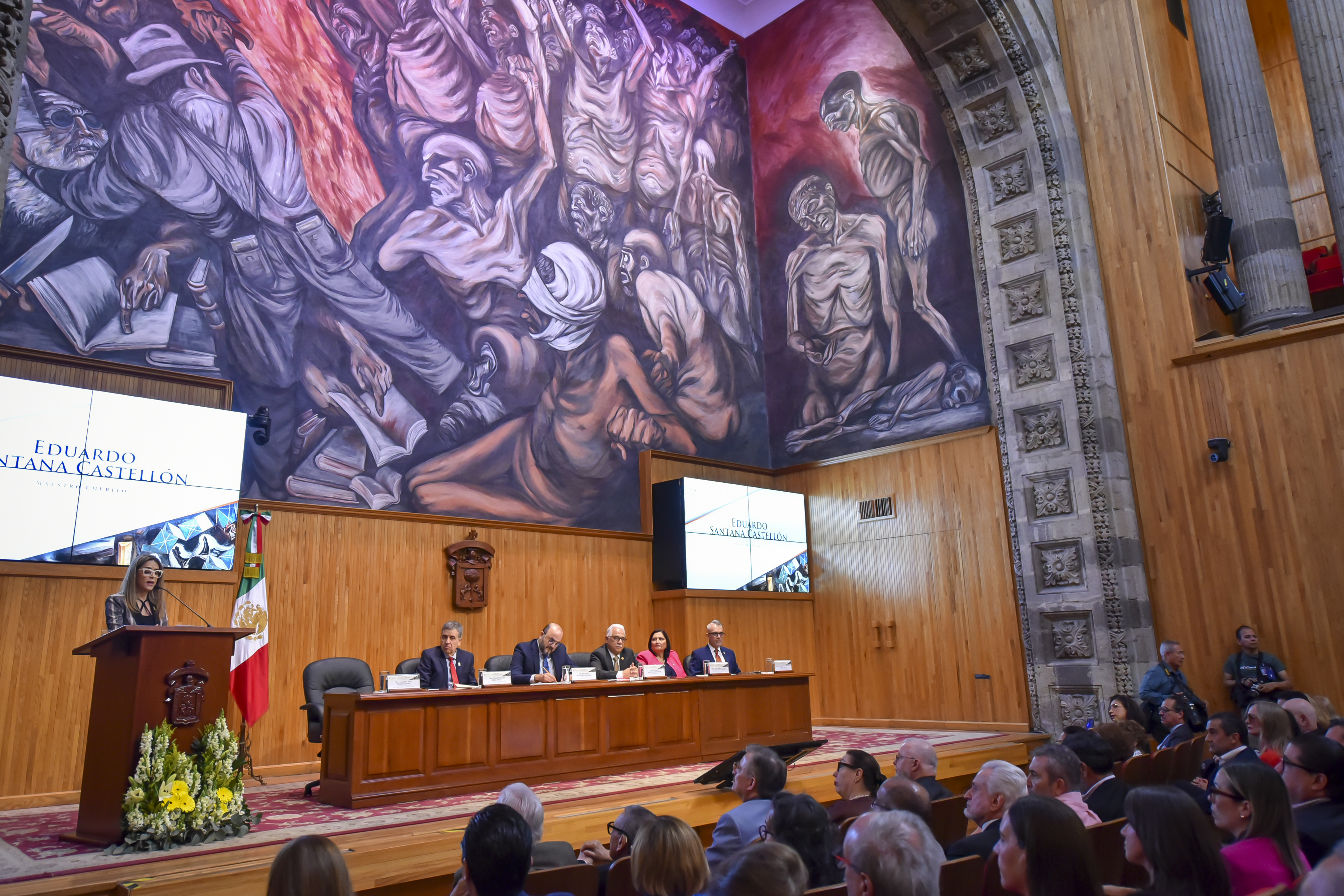 En una ceremonia que tuvo lugar en el Paraninfo Enrique Díaz de León, Santana Castellón, Director del Museo de Ciencias Ambientales (MCA), fue reconocido por contribuir a la conservación y estudio de ecosistemas, lo que derivó en iniciativas como la Reserva de la Biósfera de la Sierra de Manantlán.
