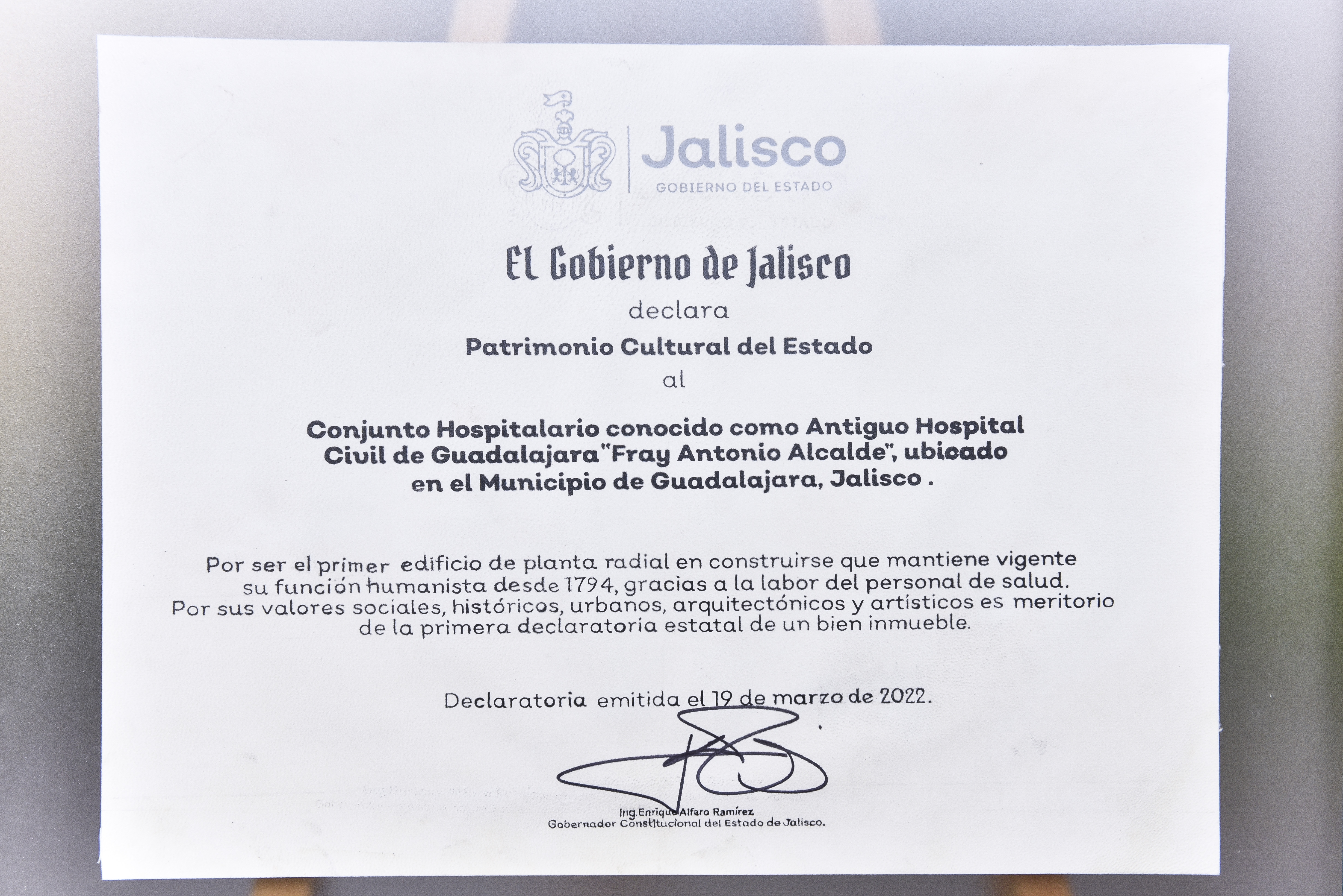 El decreto se trabajó desde 2020 por parte de la Asociación Civil Cultural del Antiguo HCG “Fray Antonio Alcalde” y el Museo de la Historia de la Medicina, que lo promovieron ante el Congreso de Jalisco y la Secretaría de Cultura de Jalisco (SCJ).