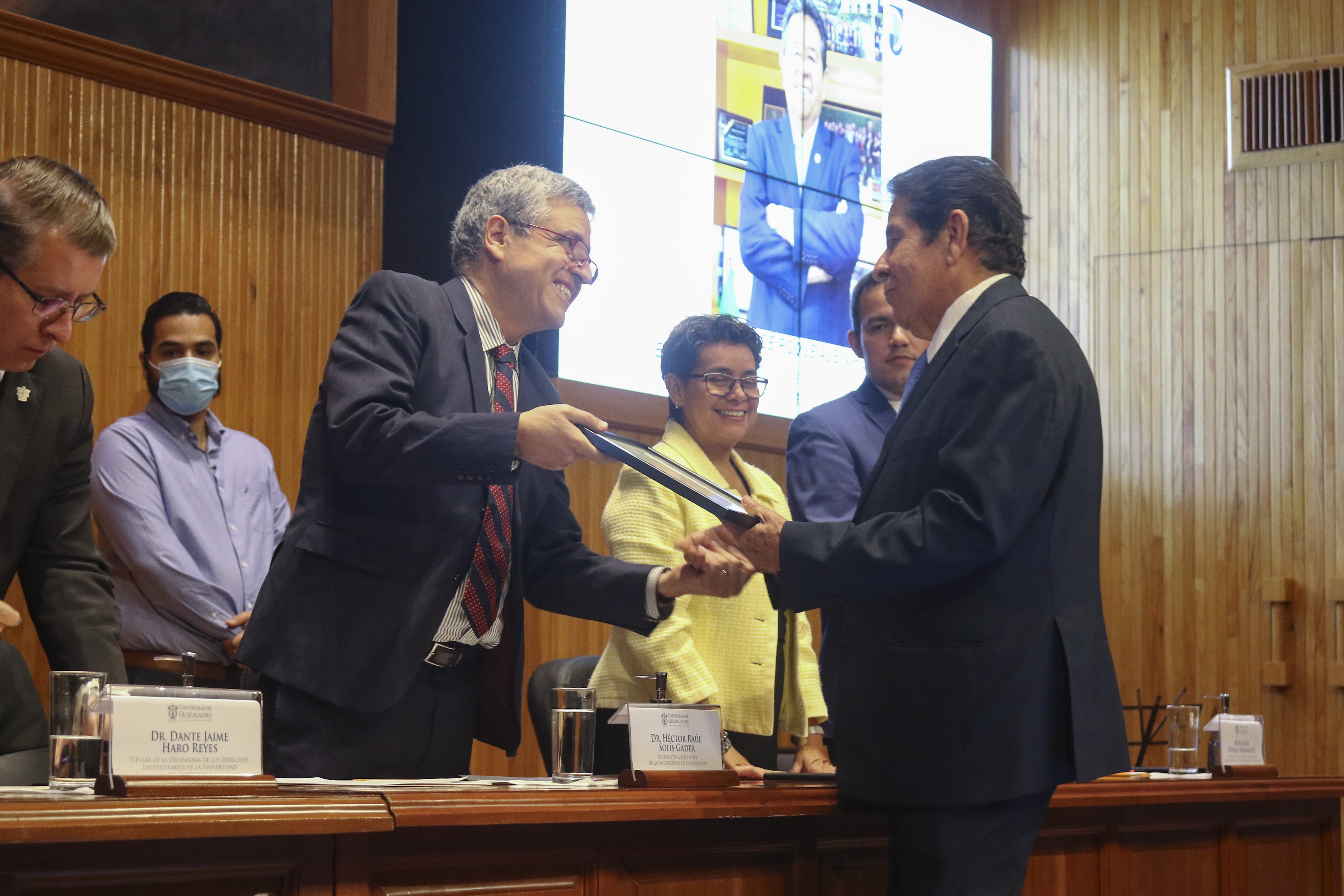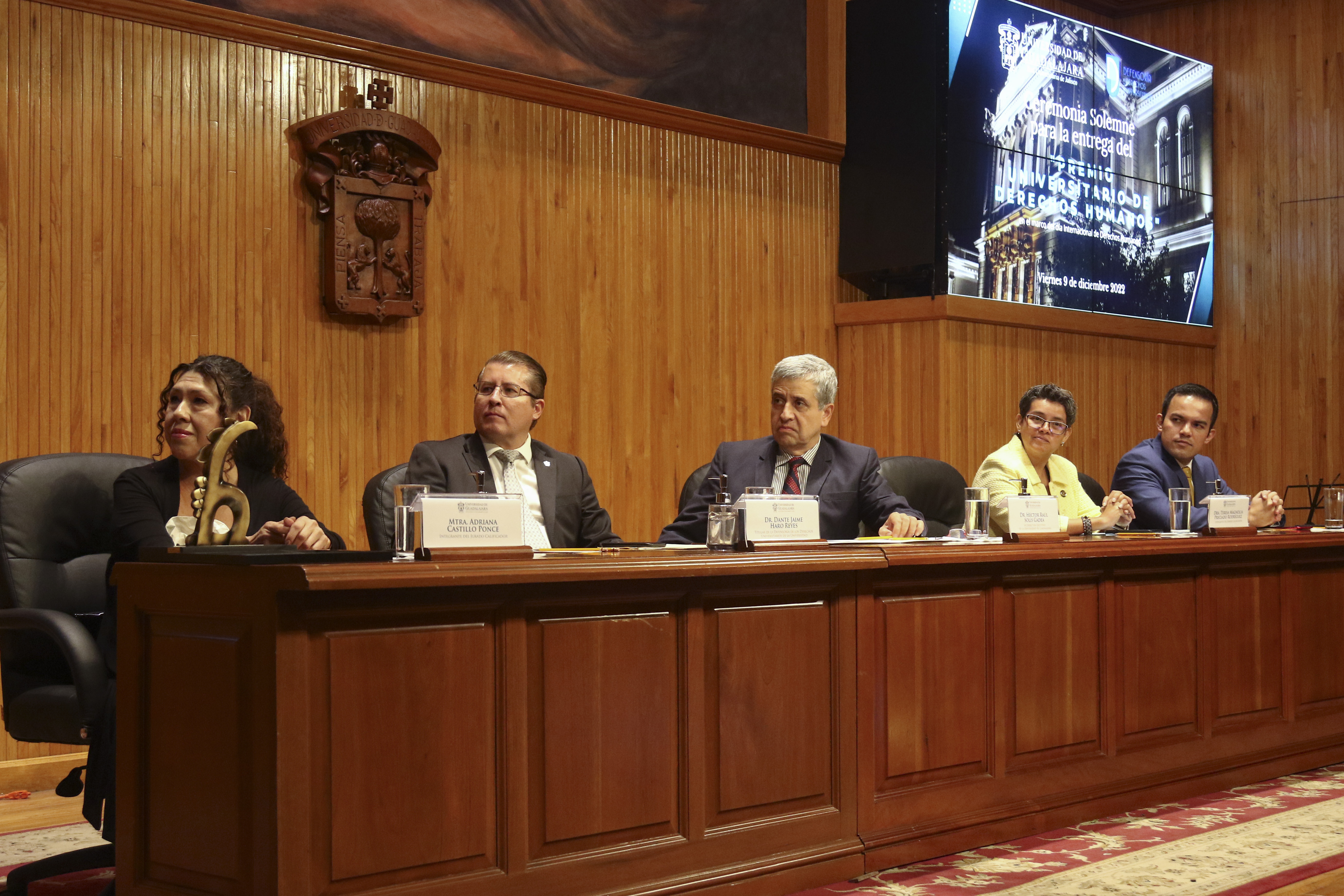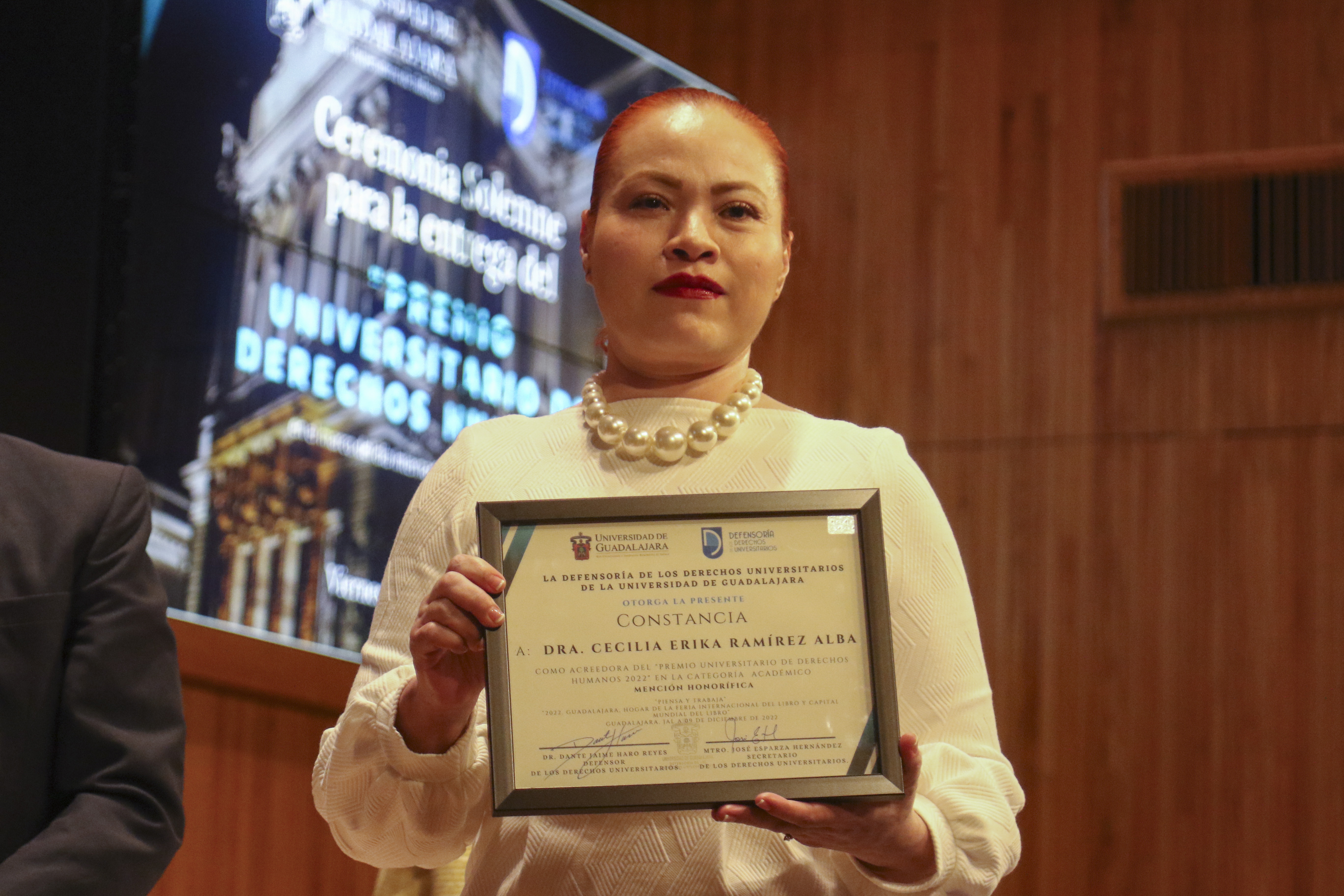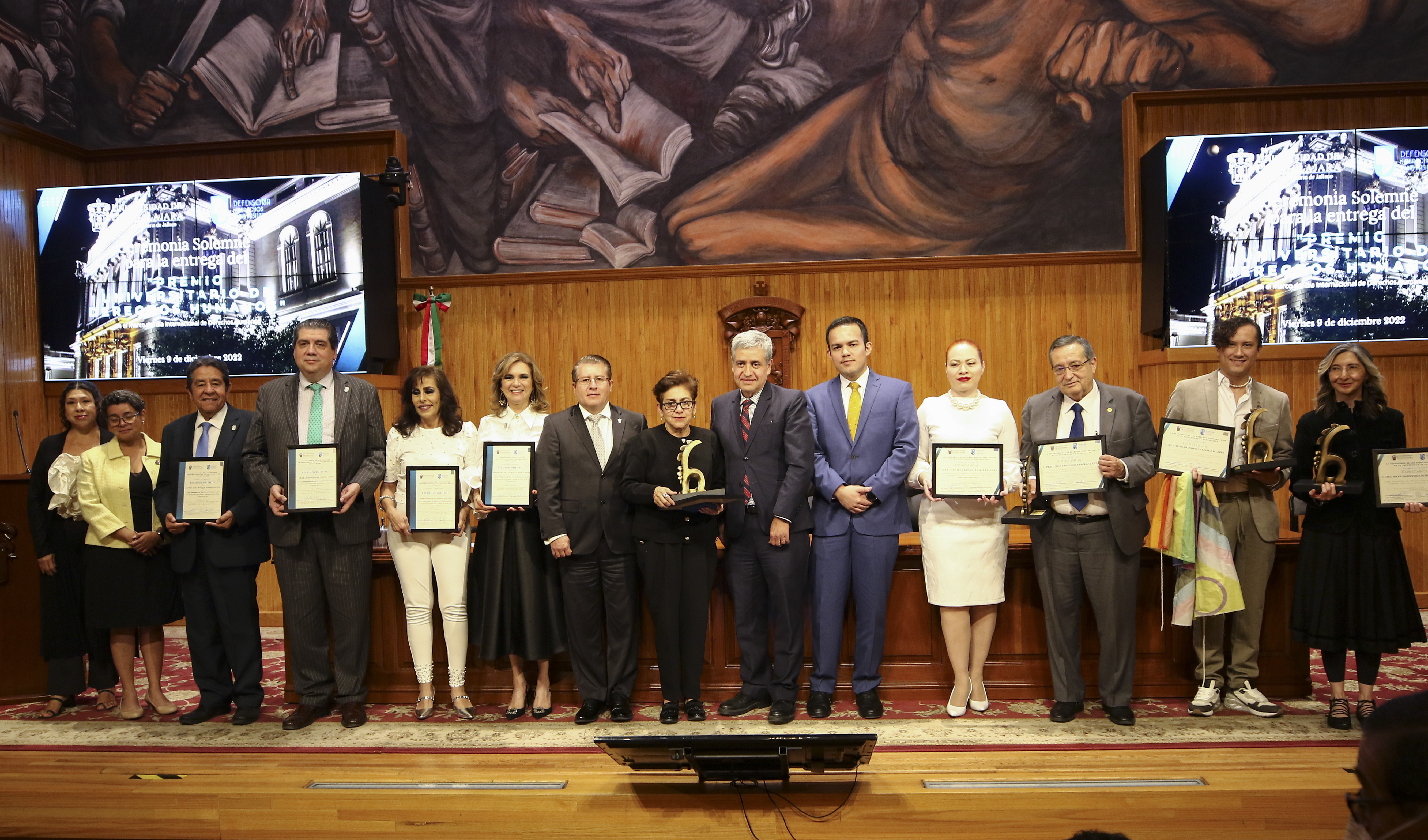 En la ceremonia, la Defensoría de los Derechos Universitarios también reconoció el trabajo de otros luchadores en derechos humanos, nombrándolos como “Embajadores de Paz”. En la lista figuran personalidades como el Maestro José Roque Albín Huerta, Rector General del Centro Universitario UTEG y María Florencia Marón Navarro, de la asociación Sonidos por la Paz.