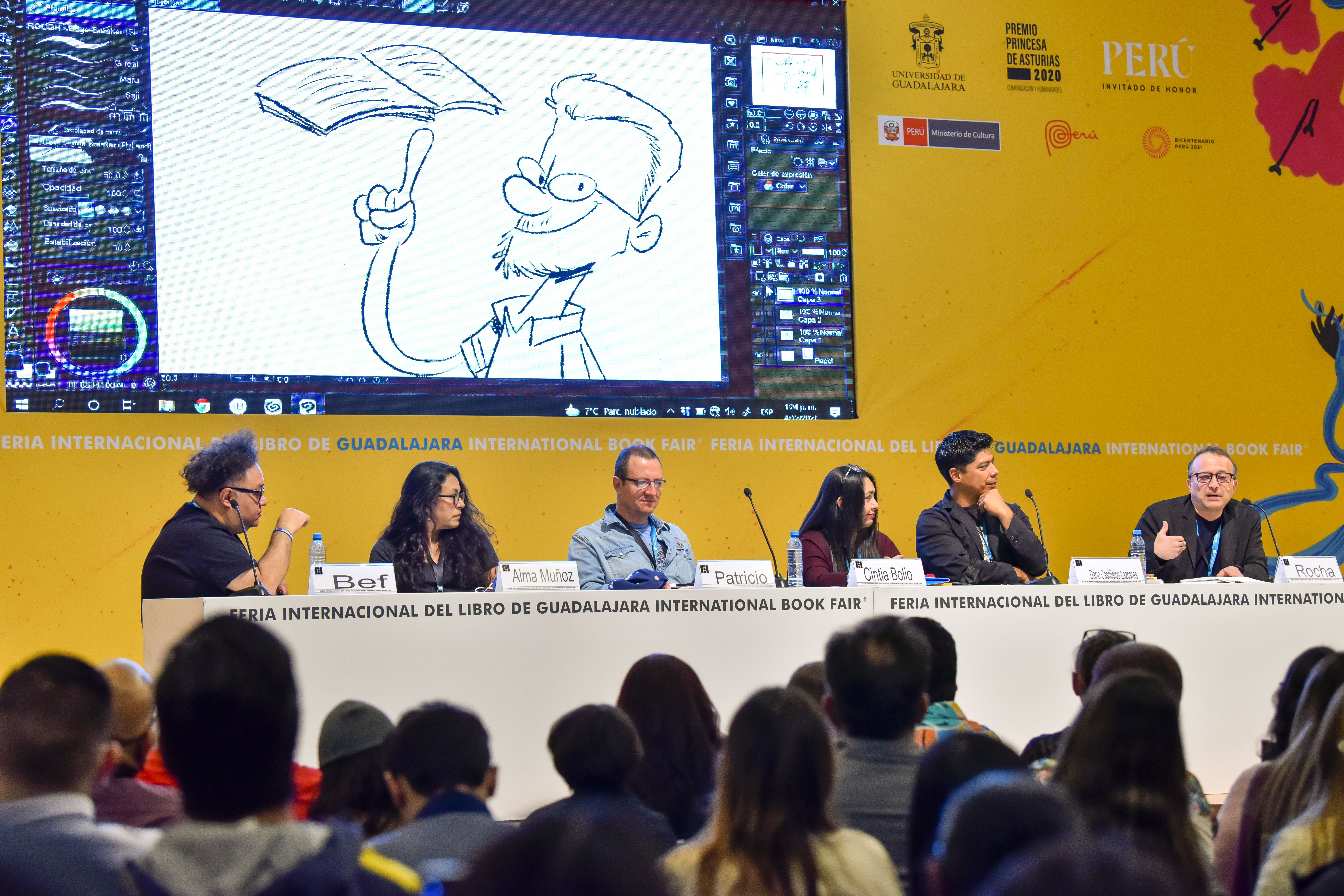 Al término de esta ceremonia, el público asistente en el auditorio Juan Rulfo de Expo Guadalajara elevó aplausos, entre abrazos y recuerdos de quienes presentaron la charla.