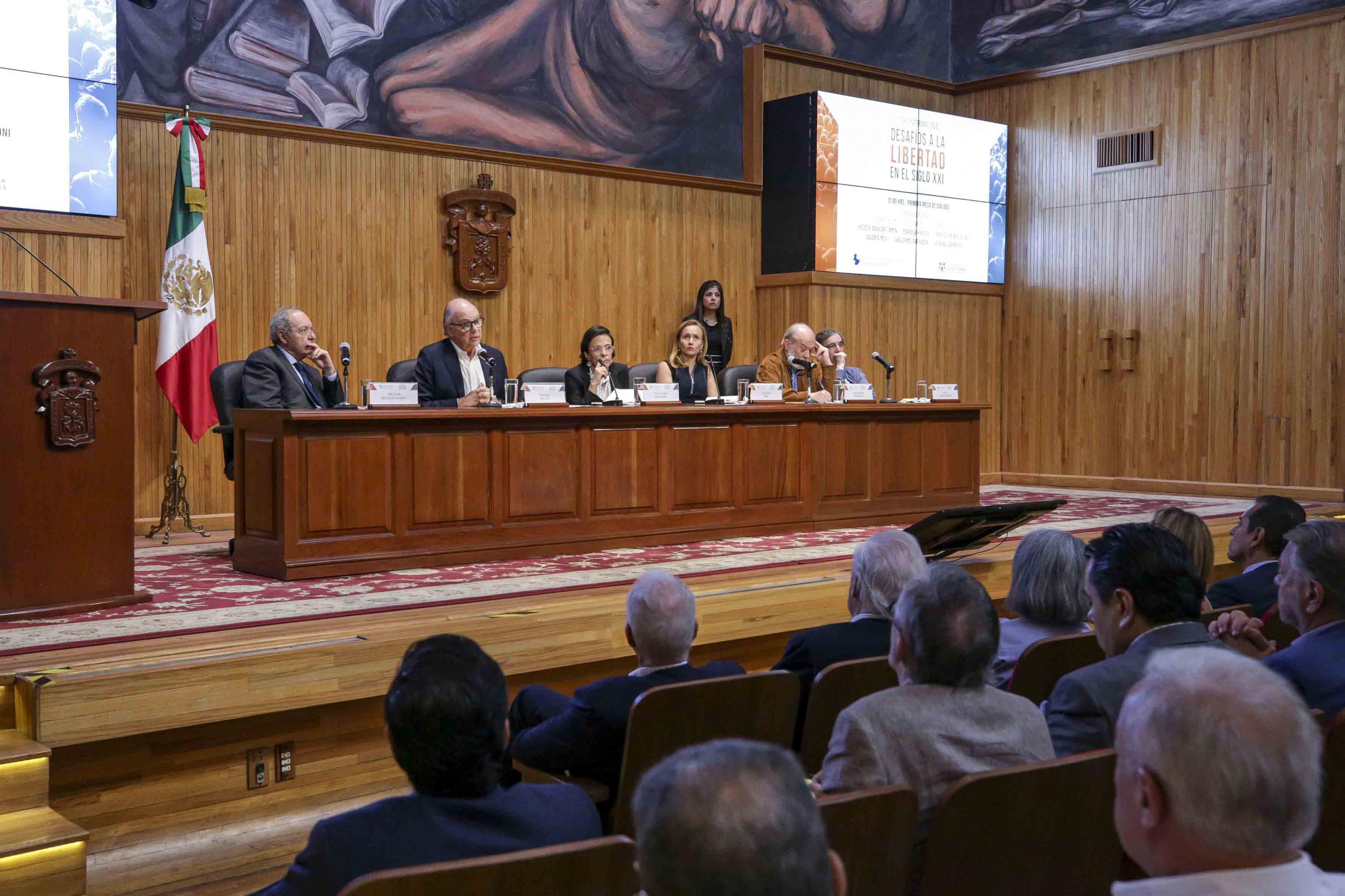 Intelectuales, periodistas y politólogos encabezados por el escritor y político Mario Vargas Llosa, participan en el Foro internacional “Desafíos a la Libertad en el Siglo XXI” organizado por la Fundación Internacional para la Libertad, presidida por Vargas Llosa y la Universidad de Guadalajara, con la intención de debatir los problemas a los que se enfrenta la democracia en el continente.