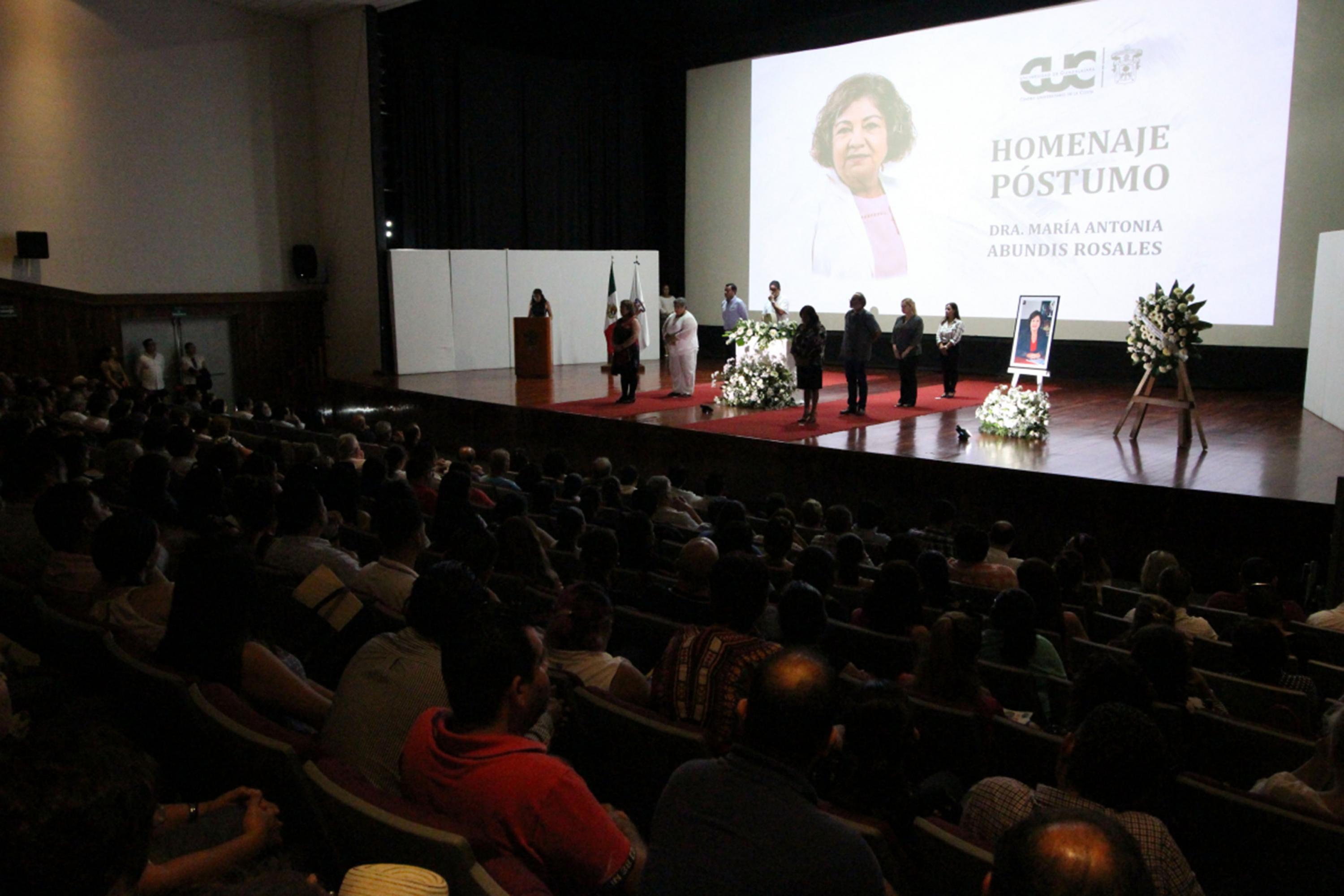 El Centro Universitario de la Costa (CUCosta) realizó un homenaje póstumo a la doctora María Antonia Abundis Rosales, catedrática de este centro regional de la Universidad de Guadalajara (UdeG), en el auditorio Doctor Juan Luis Cifuentes Lemus, con la presencia de familiares, académicos, administrativos, investigadores, abogados y estudiantes, este lunes 7 de octubre.