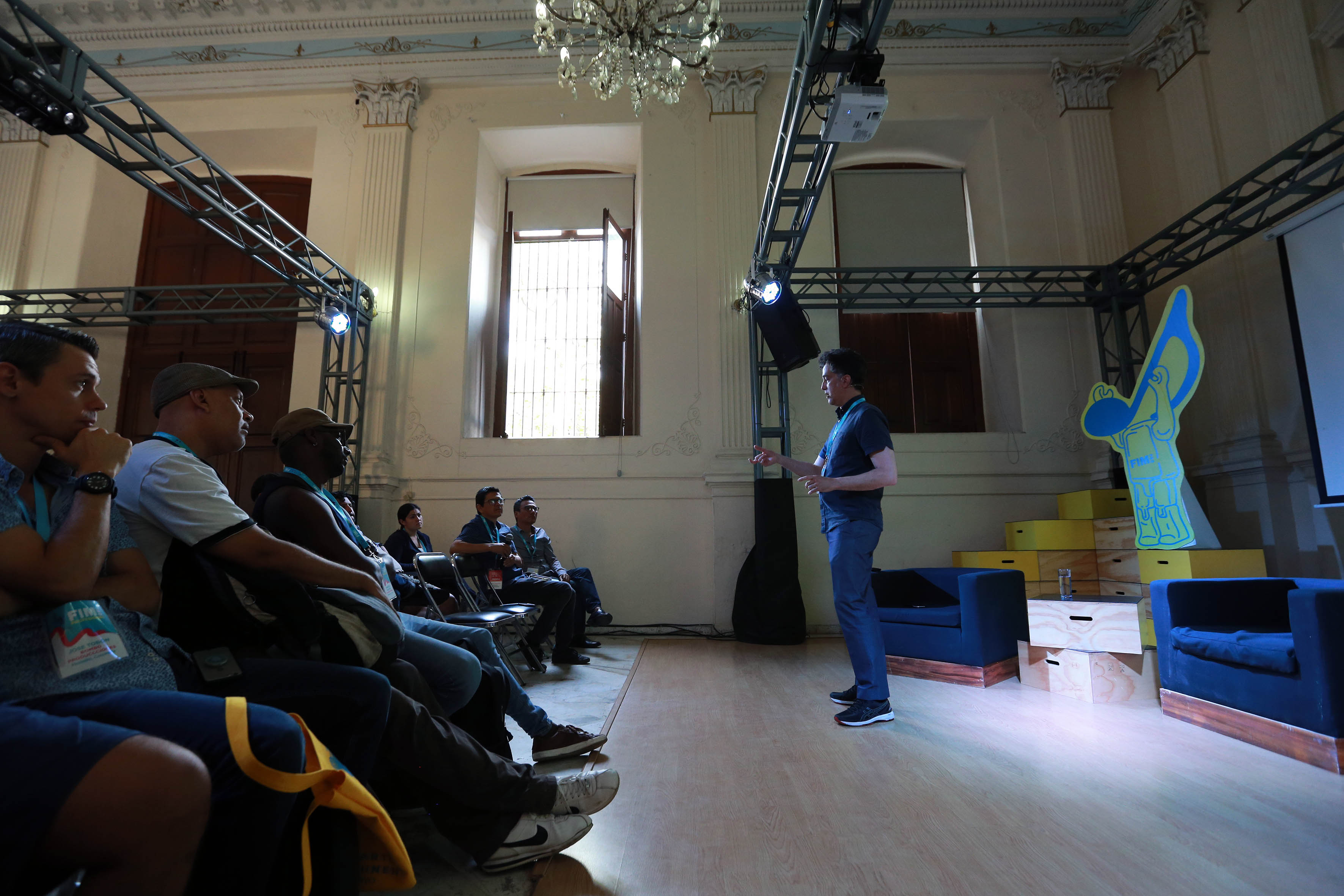 Ante músicos, empresarios e interesados en la industria musical, congregados al interior del Edificio Arroniz de la Secretaría de Cultura de Jalisco, Chirinos ejemplificó que artistas como Lady Gaga y la banda de k-pop BTS son tan sólo dos conceptos, cuyos exponentes se asumen como parte de una lucha por el cambio social.