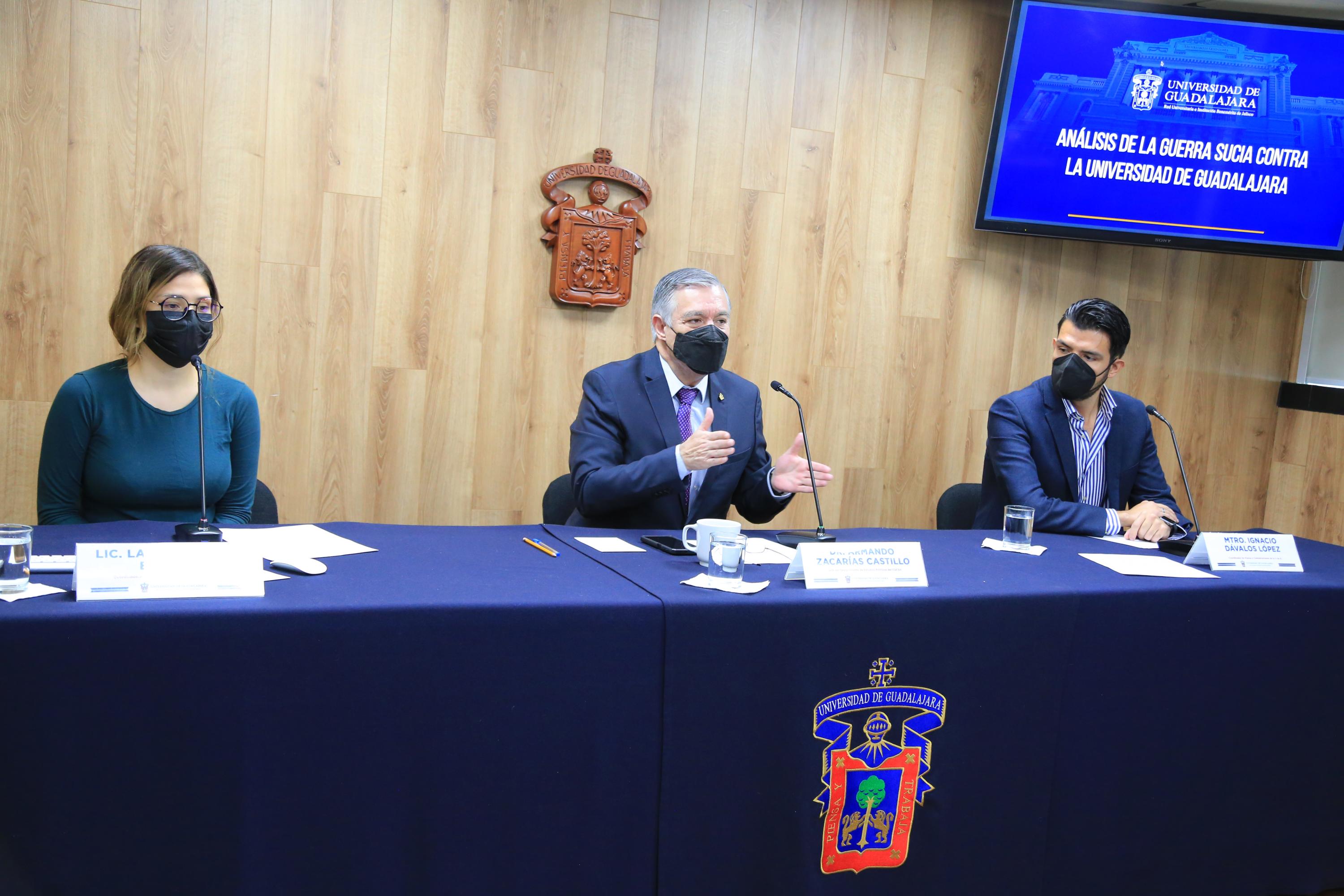 Con pautas publicitarias de cientos de miles de pesos, a través de Facebook y YouTube, diversas páginas impulsan campañas de desprestigio, con la ayuda de perfiles tipo bots, contra la Universidad de Guadalajara (UdeG). Esto lo dieron a conocer el jefe del Departamento de Estudios Políticos del Centro Universitario de Ciencias Sociales y Humanidades (CUCSH), Doctor Armando Zacarías Castillo, la titular de la Coordinación General de Comunicación Social (CGCS), licenciada Laura Ruth Morales Estrada y el coordinador de Prensa de la Universidad de Guadalajara, maestro Ignacio Dávalos López.