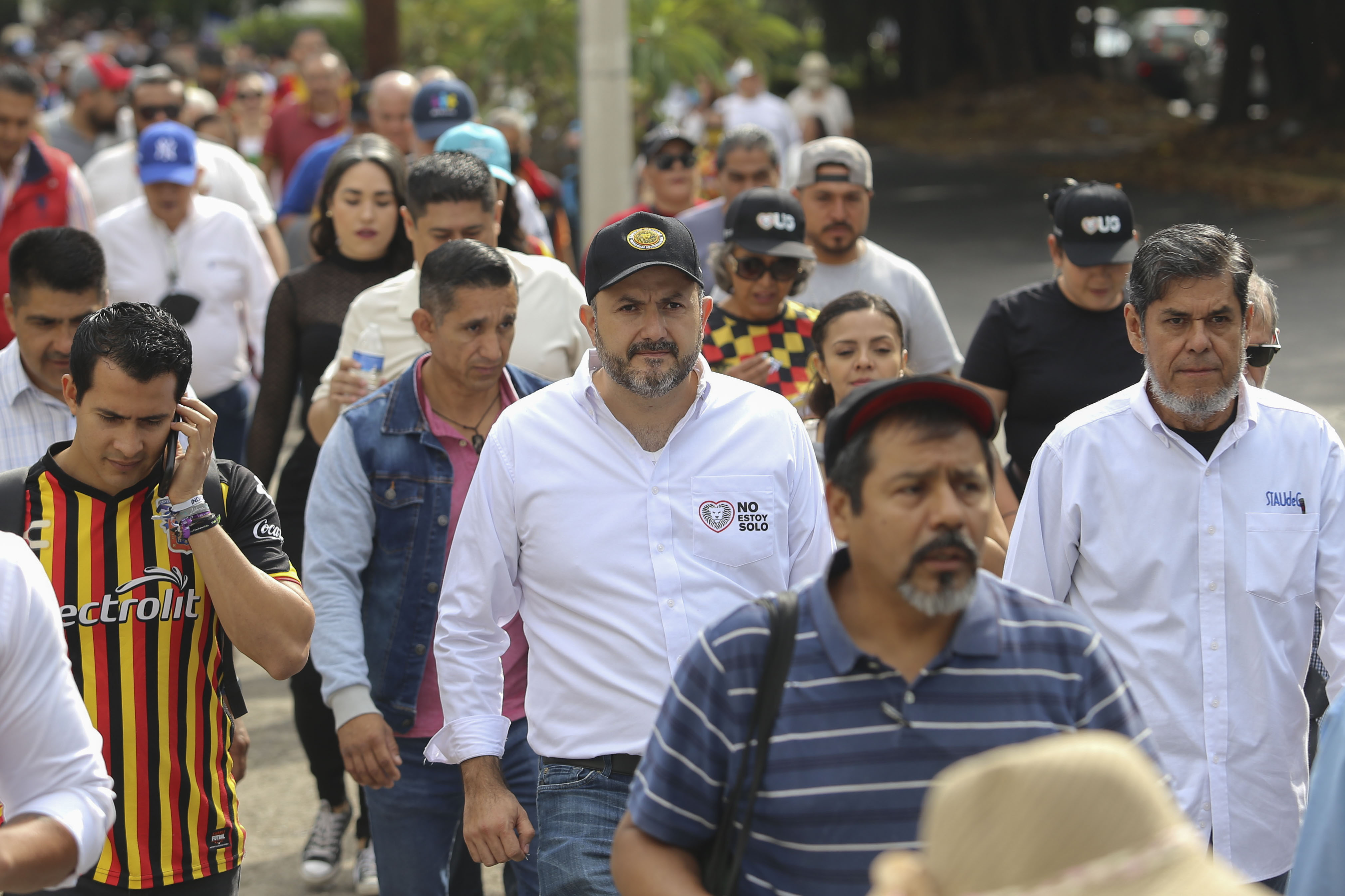 Lo anterior, en el marco de la caminata que encabezaron el Rector General, los miembros del Consejo General Universitario (CGU) y mil 200 integrantes de la comunidad universitaria; contingente que partió del edificio de Rectoría General hacia Casa Jalisco, donde entregó el citado oficio, acompañado de la comunidad universitaria.