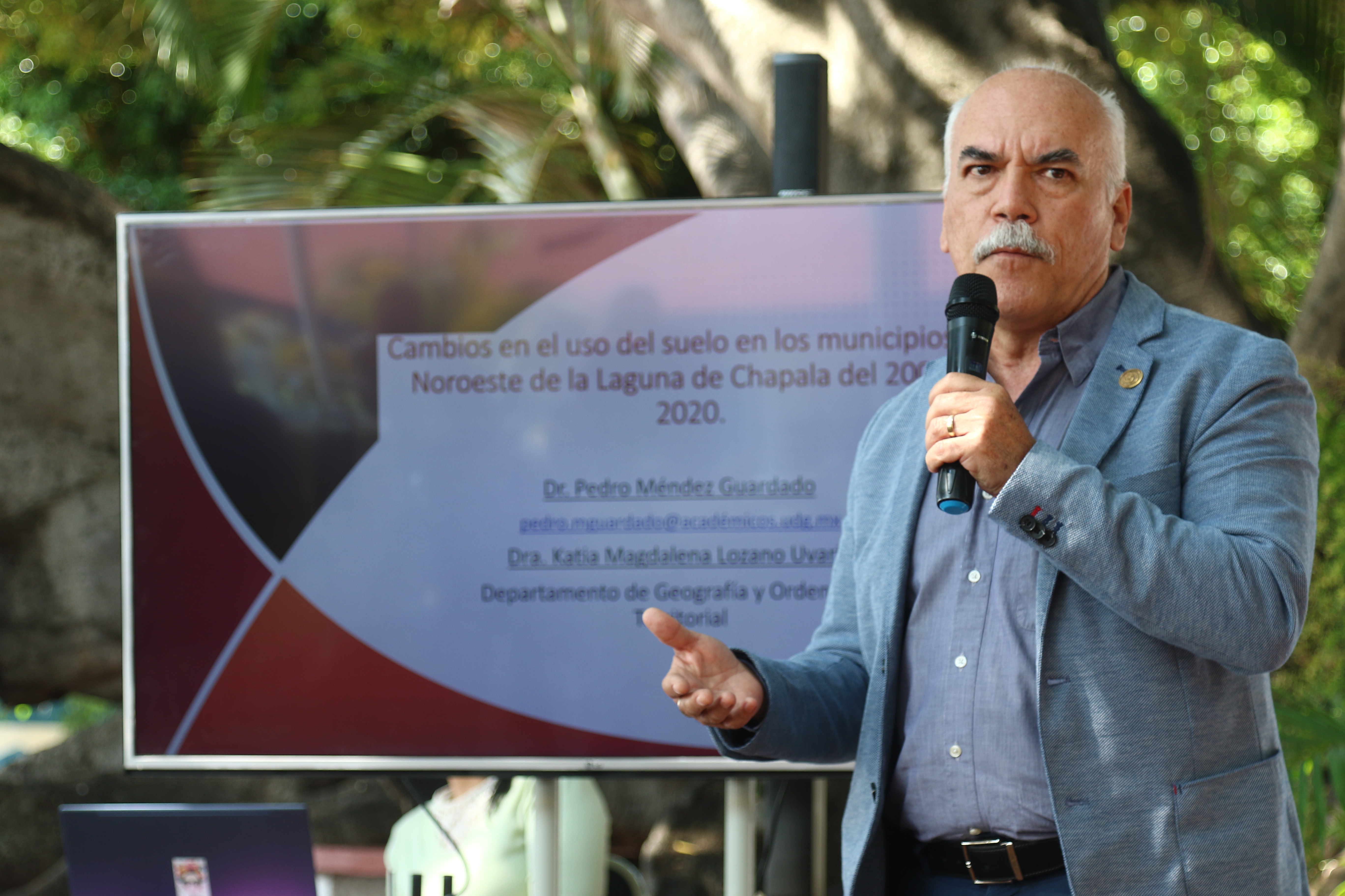 El doctor Pedro Méndez Guardado, del CUCSH, informó sobre la mancha de plástico a lo largo de los valles de Jocotepec, causado por los invernaderos donde se cultivan berries. En casi 20 años, éstos crecieron de 200 hectáreas a 2 mil, provocando impactos como la contaminación de la tierra por agroquímicos.