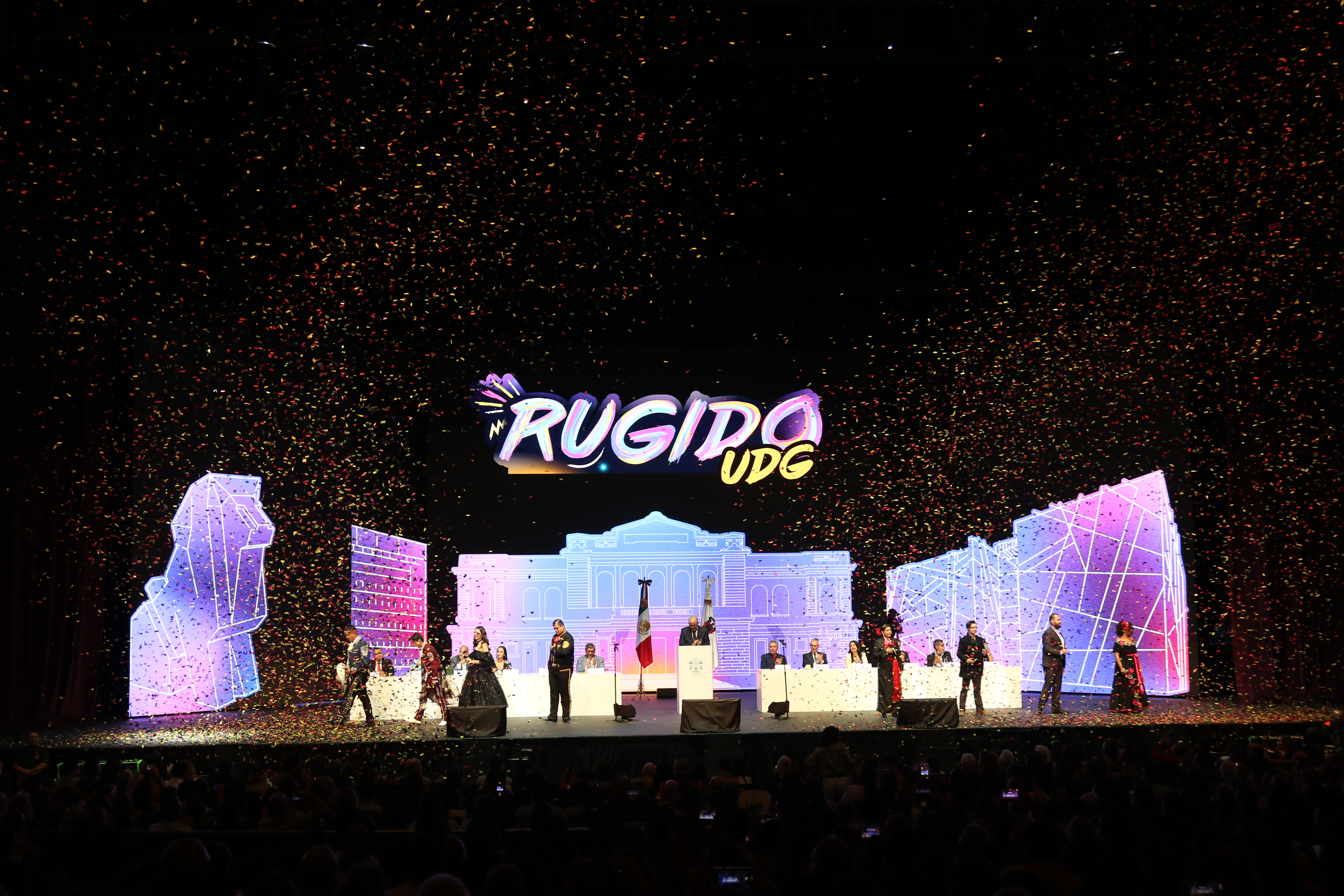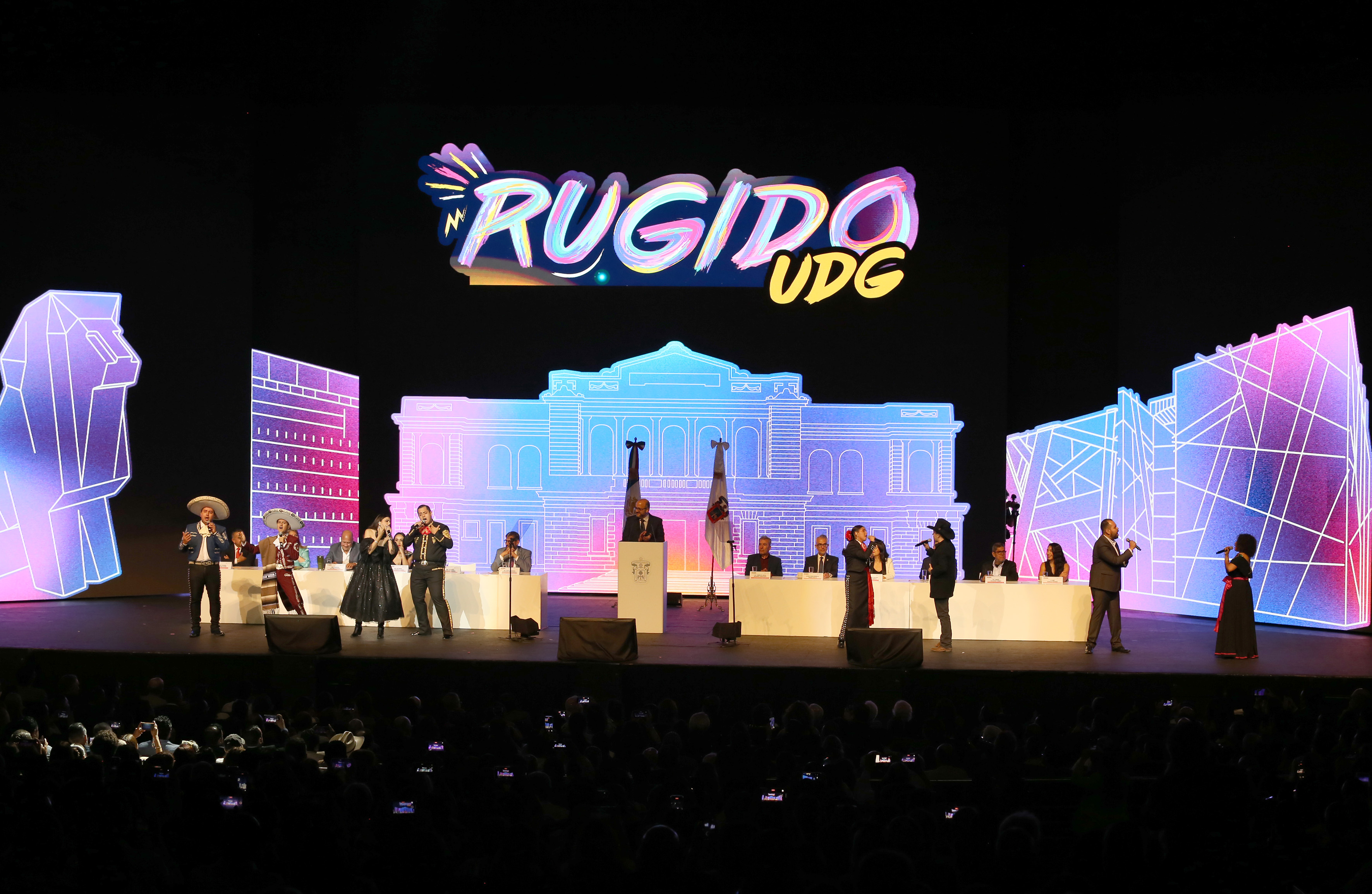 Durante el informe varios de los participantes de Rugido aparecieron entre el público para cantar “Así se siente México”, demostrando la gran capacidad escénica y musical que hay en la comunidad de la UdeG. Remataron la canción con un “Así se vive UdeG en la piel”.