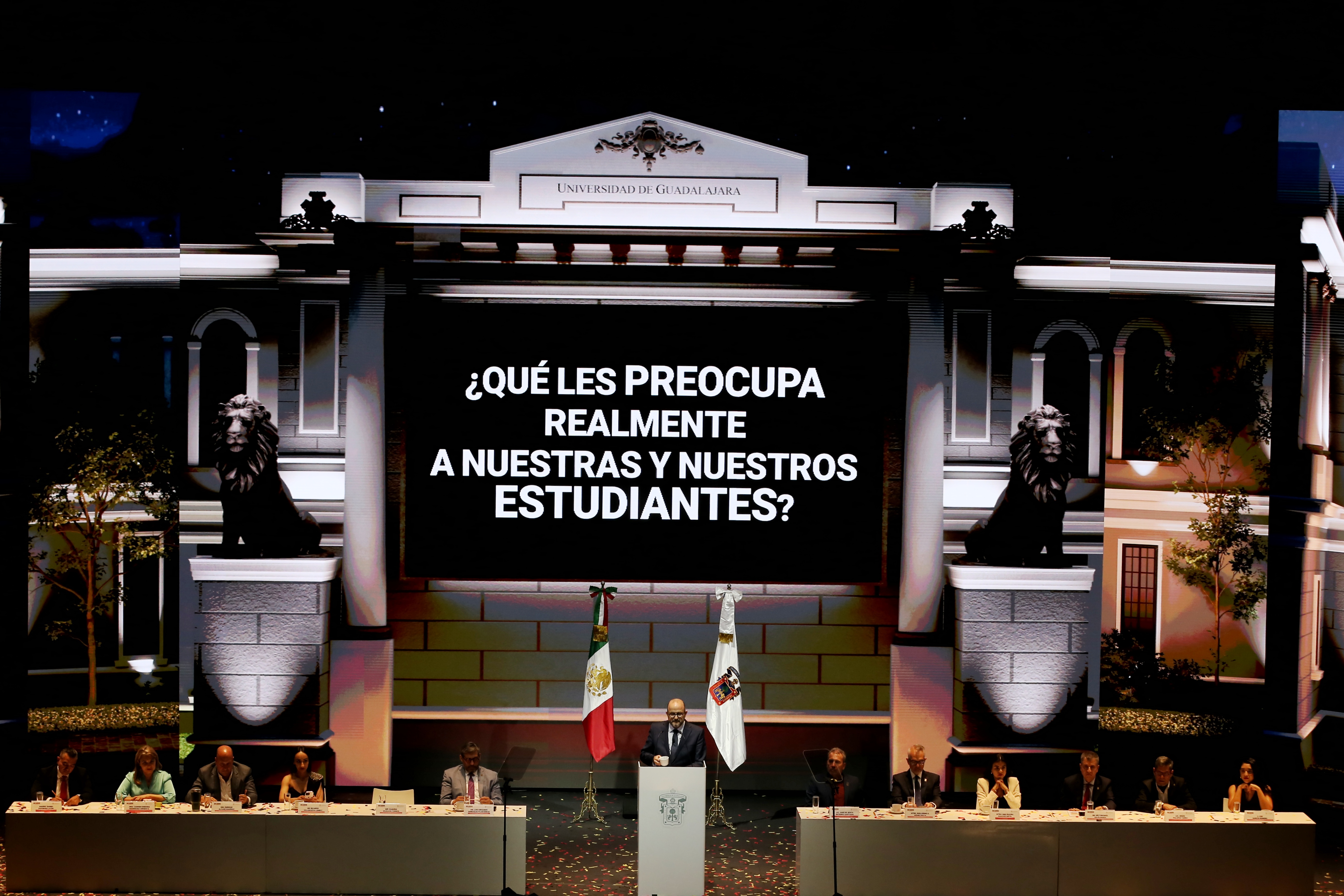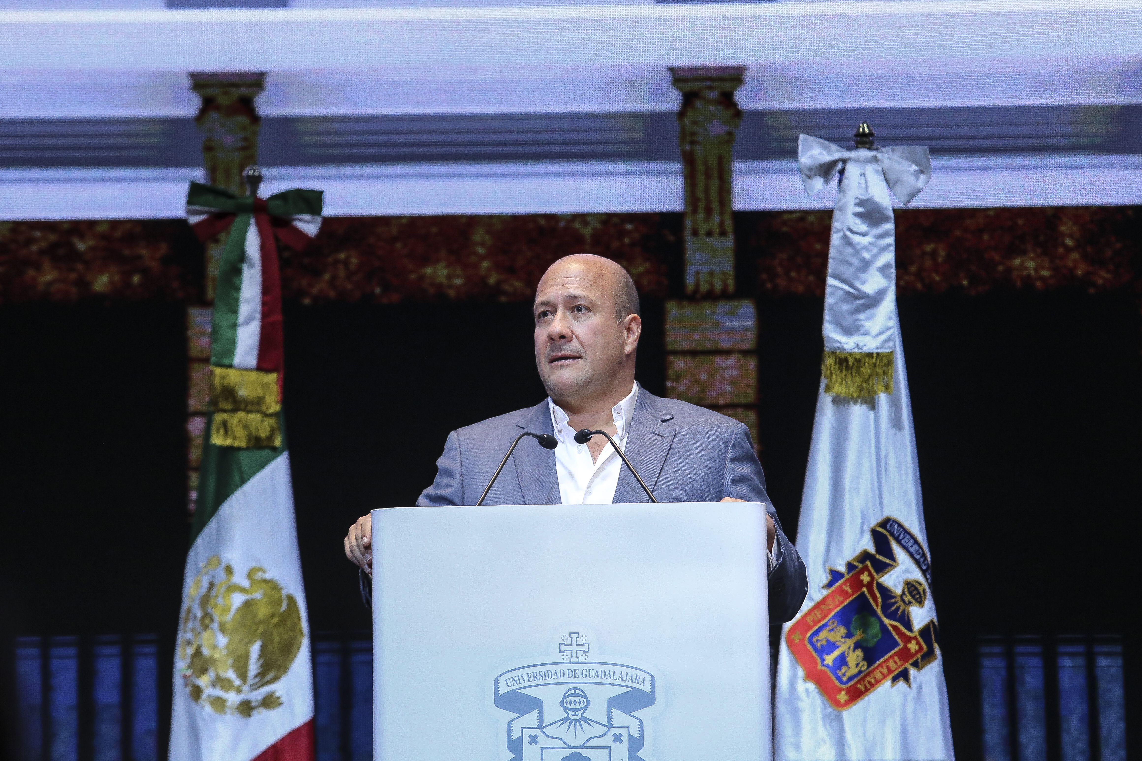 “Hoy quiero hacer entrega de las escrituras del Paraninfo de la UdeG y del edificio administrativo. Es una muestra más de que la autonomía universitaria se tiene que defender siempre con todo”, enunció el gobernador ante los presentes.