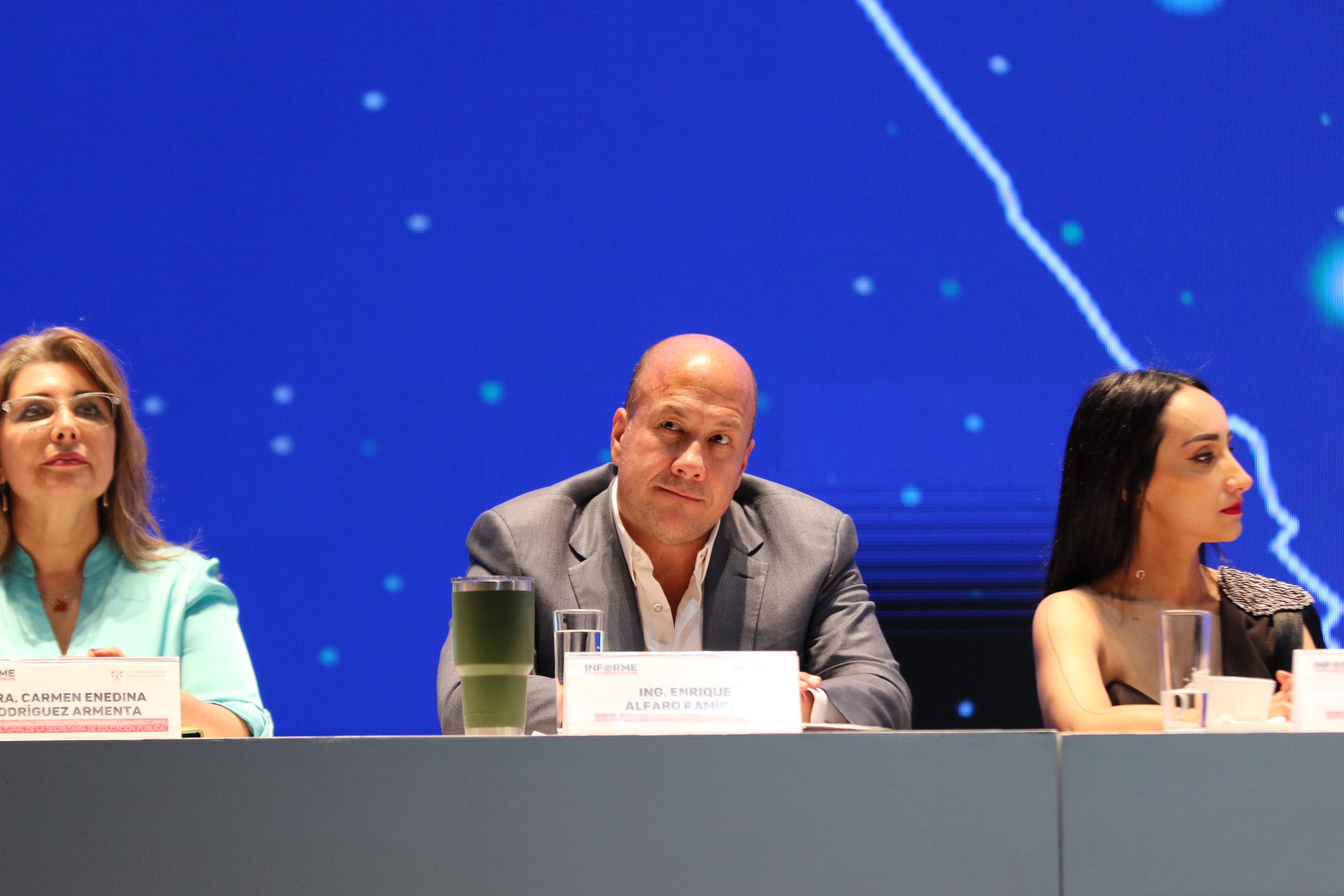 Durante el informe, fue CLARA, inteligencia artificial conductora de Canal 44, quien informó algunos de los logros tecnológicos de la actual administración, como LEO, que sustituye al antiguo SIIAU.