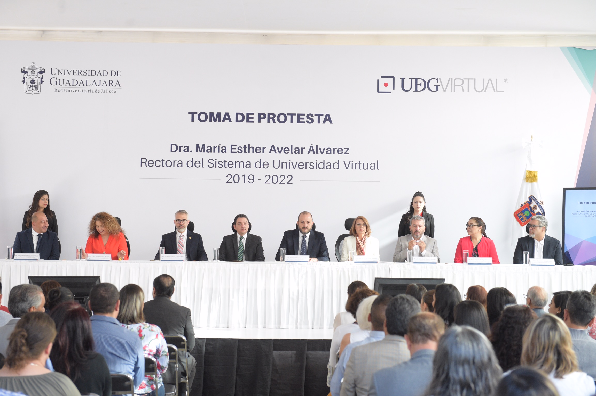 El Rector General de la Universidad de Guadalajara (UdeG), doctor Ricardo Villanueva Lomelí, tomó protesta este lunes a la doctora María Esther Avelar Álvarez como Rectora del Sistema de Universidad Virtual (UDGVirtual) para el periodo 2019-2022, quien busca incrementar el número de programas educativos a distancia y ampliar la cobertura para democratizar la educación superior.