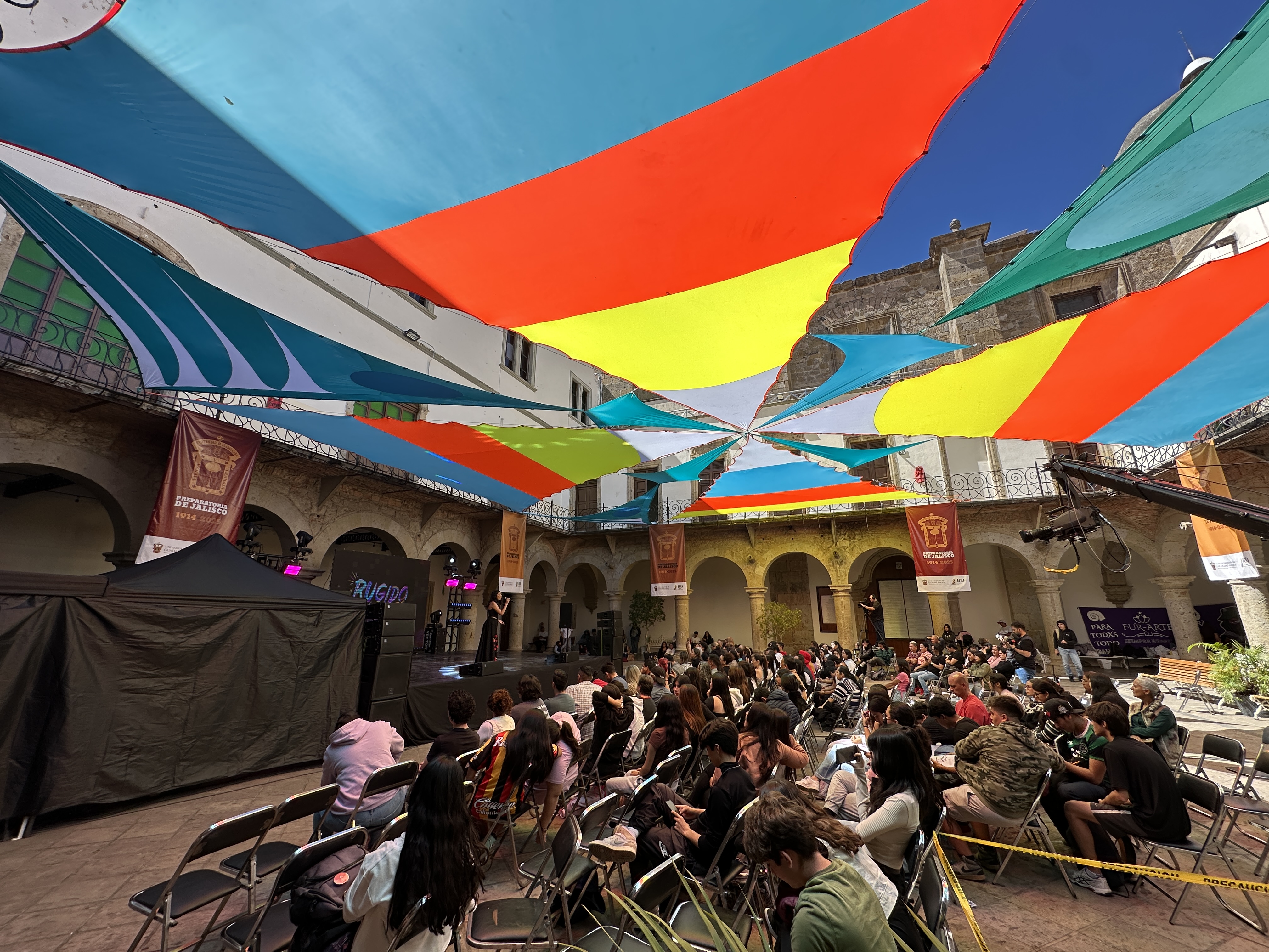 En esta primera jornada se dieron cita alumnos y alumnas de preparatorias y centros universitarios metropolitanos, que presentaron un total de 26 espectáculos ante estudiantes, docentes y personal administrativo de la Preparatoria Jalisco y de otros planteles de la ciudad.