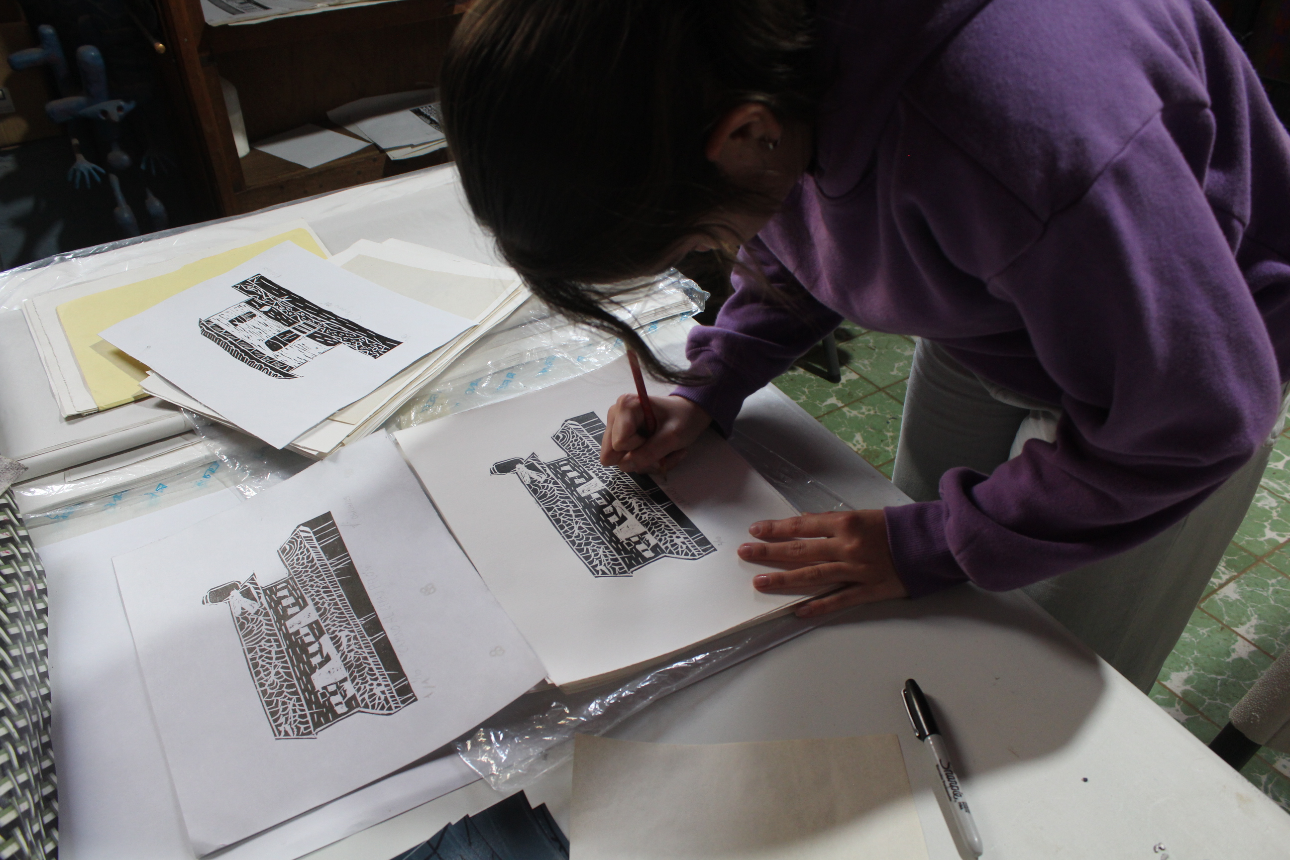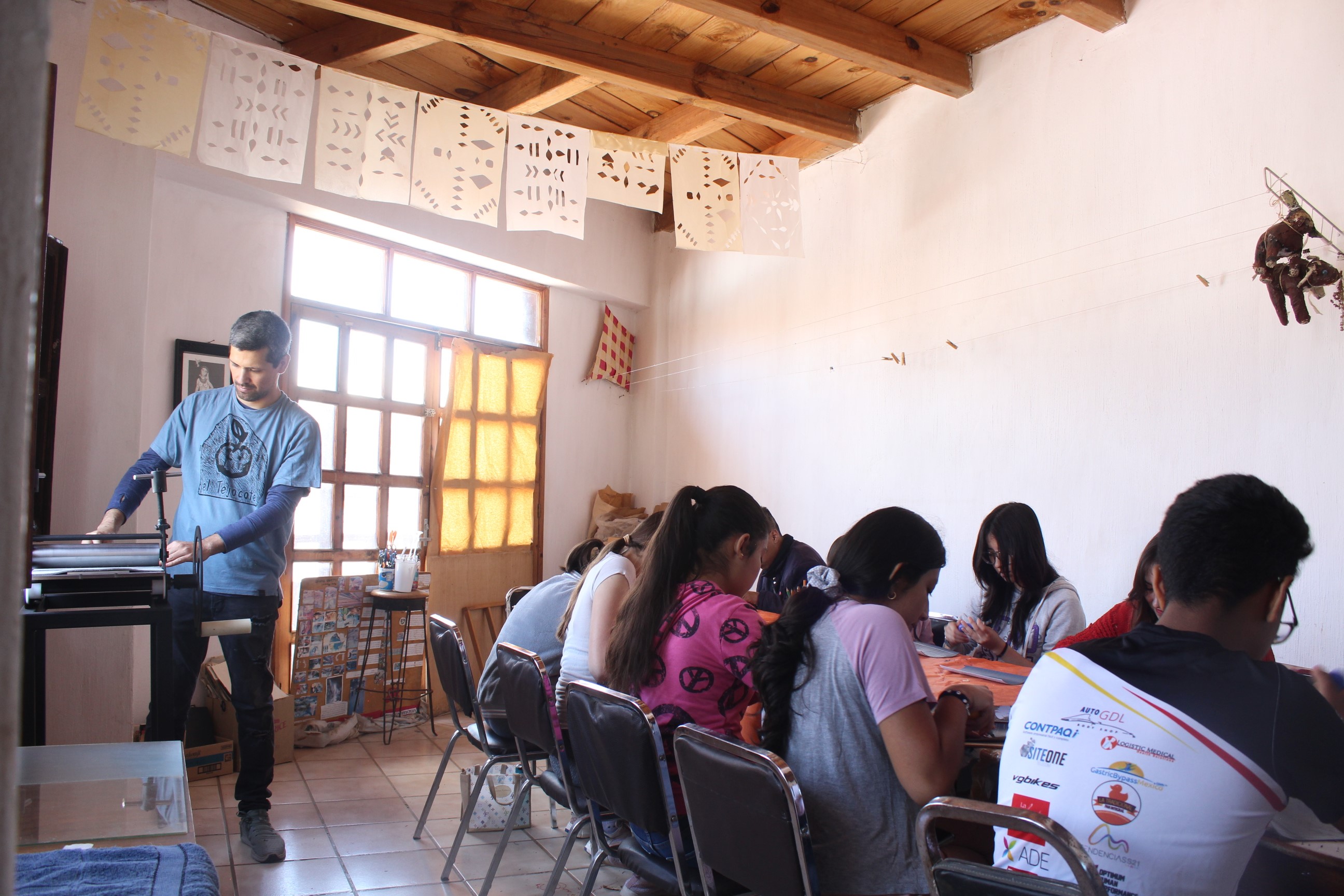 “Aquí lo interesante es que con base a la técnica del grabado se hacen registros gráficos de fachadas y técnicas constructivas que existen en el pueblo. Busco que los jóvenes, desde su punto de vista, empiecen a generar esta información para que tengan esa conexión con su patrimonio”, detalló.