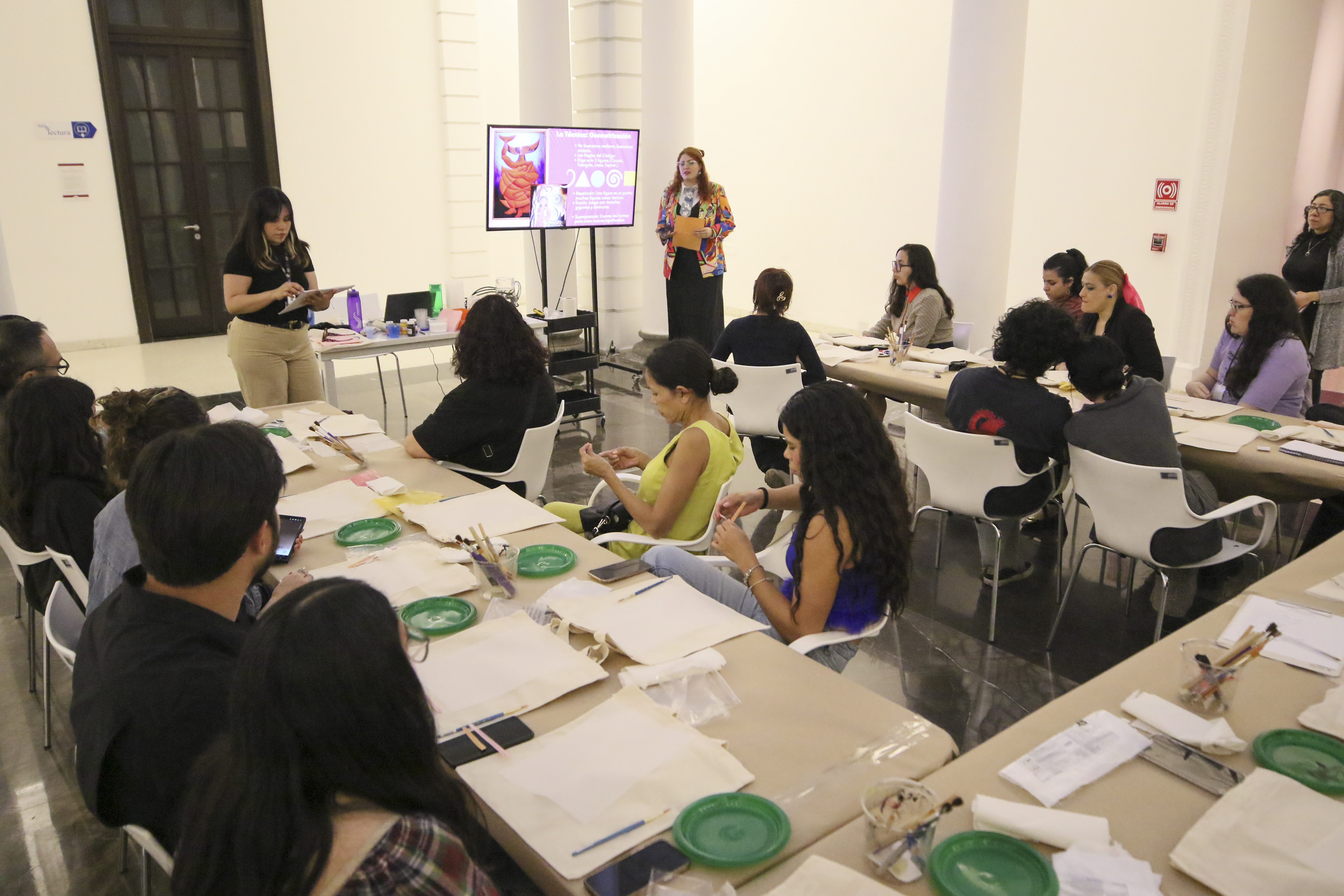 Con un taller basado en la técnica de la “geometrización”, la artista y diseñadora industrial Melina Ramírez presentó una propuesta artística y pedagógica que busca redefinir los conceptos tradicionales de lo femenino, como una de las actividades alternas en el marco de la exposición Doncella • Madre • Sabia. La mujer en la Colección Grodman.