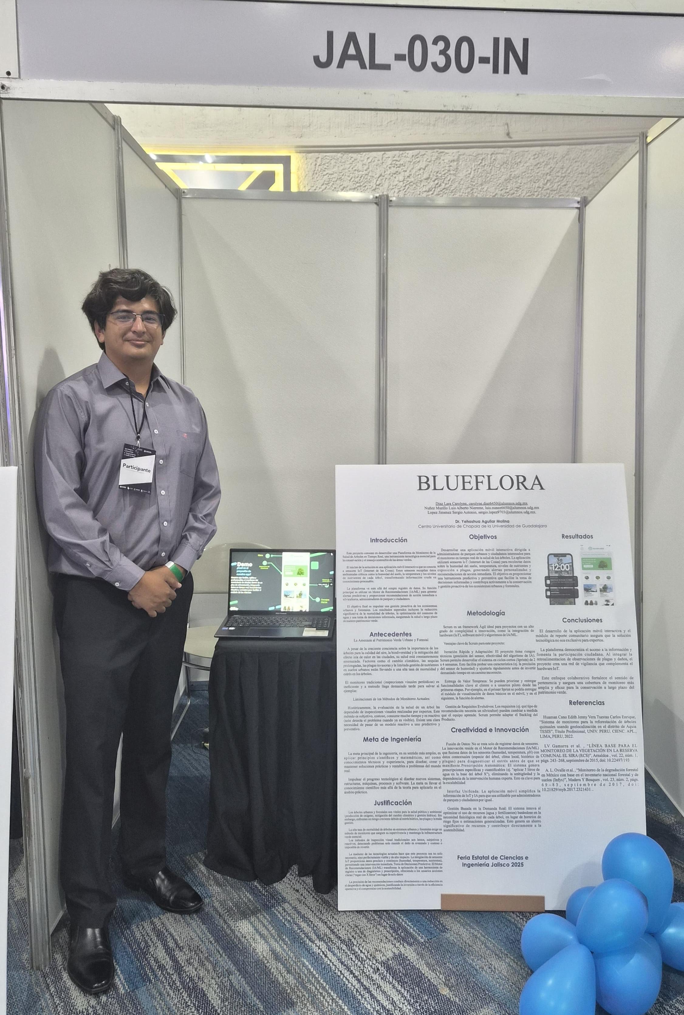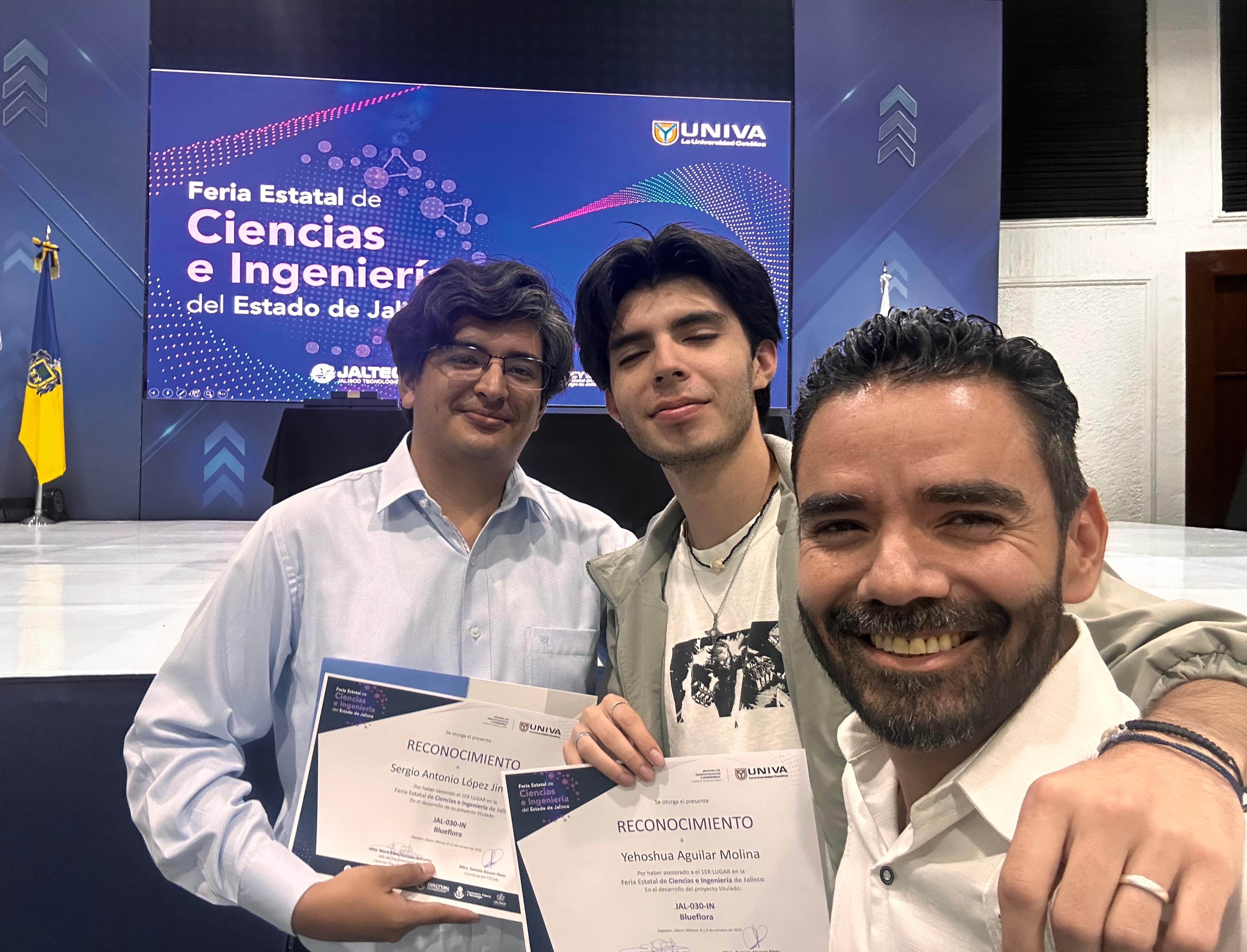 Durante la premiación, celebrada este día, el proyecto BlueFlora, integrado por Carolyne Díaz Lara, Sergio Antonio López Jiménez y Luis Alberto Núñez Murillo, fue reconocido como ganador absoluto de la feria, demostrando el potencial innovador que distingue al CUChapala.