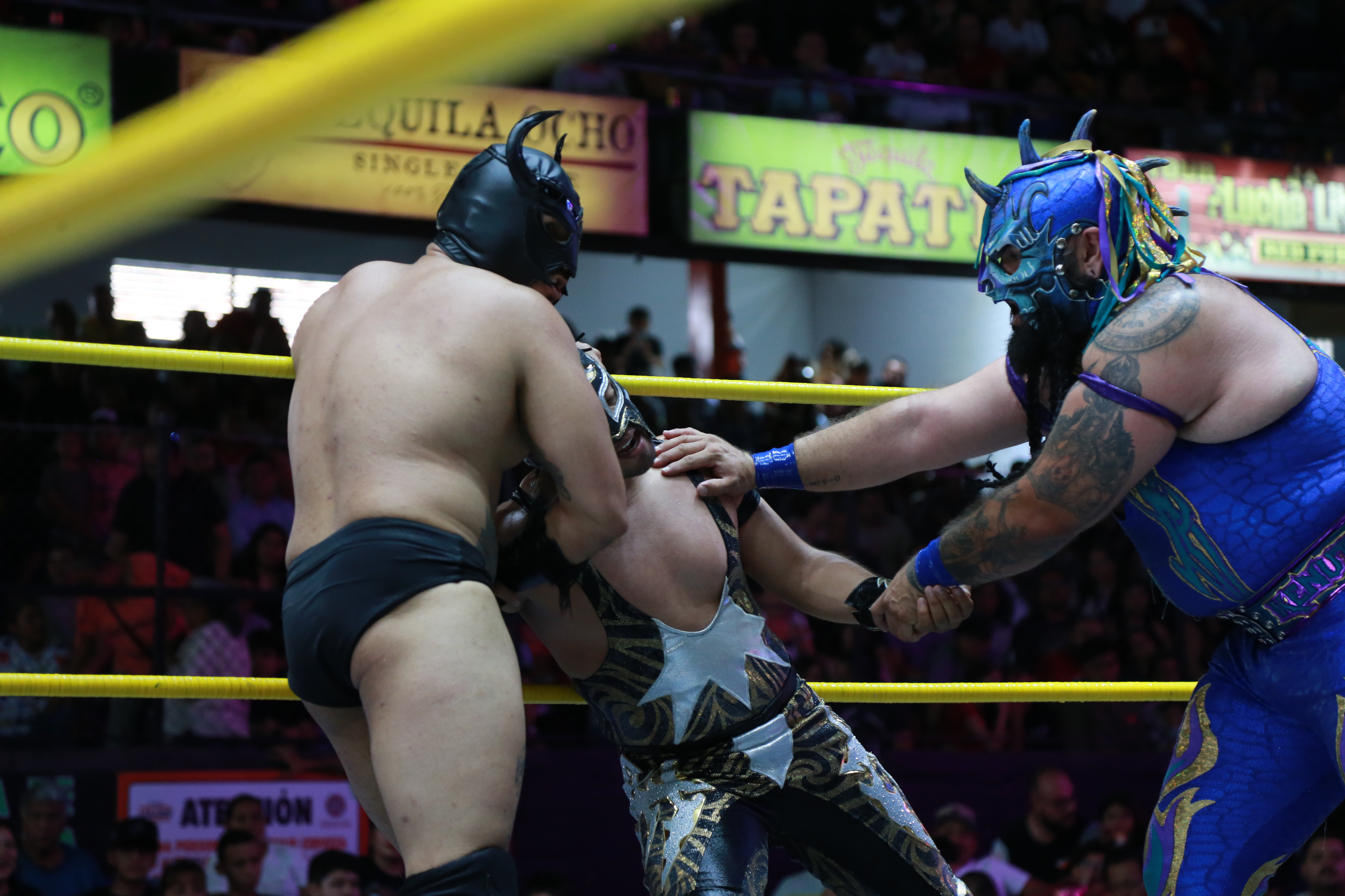 Ante una arena que lució pletórica, el cuadrilátero se convirtió en un campo de batalla donde los más de 40 luchadores dejaron todo, con un público que no dejó de apoyar a sus contendientes favoritos.