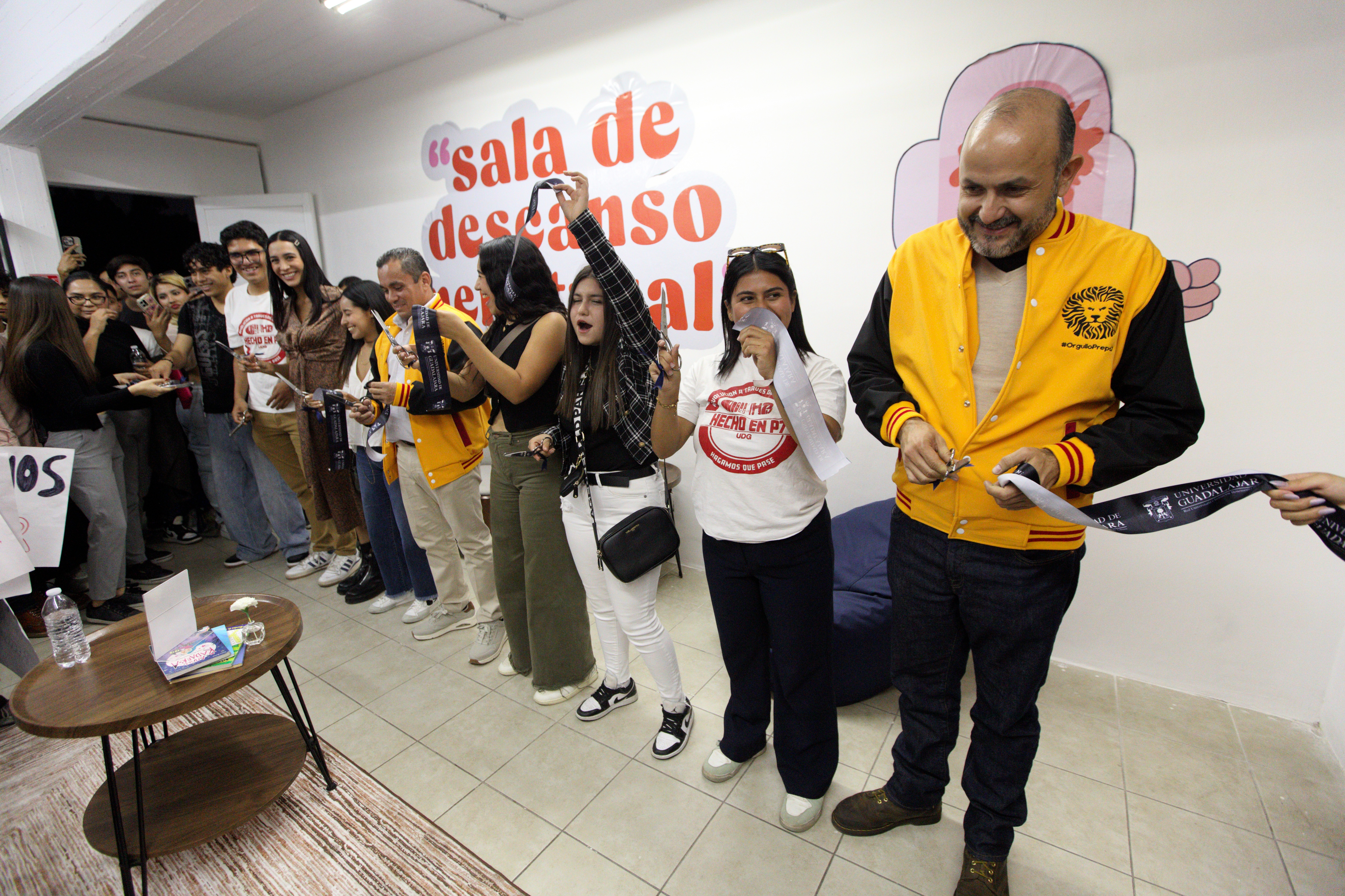 En un segundo acto, la Presidenta de la Federación de Estudiantil Universitaria, en conjunto con el Rector General Ricardo Villanueva, inauguraron la primera sala de lactancia y descanso menstrual del plantel, la cual está equipada con varios kits menstruales pertenecientes a la campaña “Fluye con Seguridad”, además de sillones, tés, libros, medicamentos y equipamientos de cocina como microondas, ideales para propiciar un espacio cómodo y libre dentro de la preparatoria.
