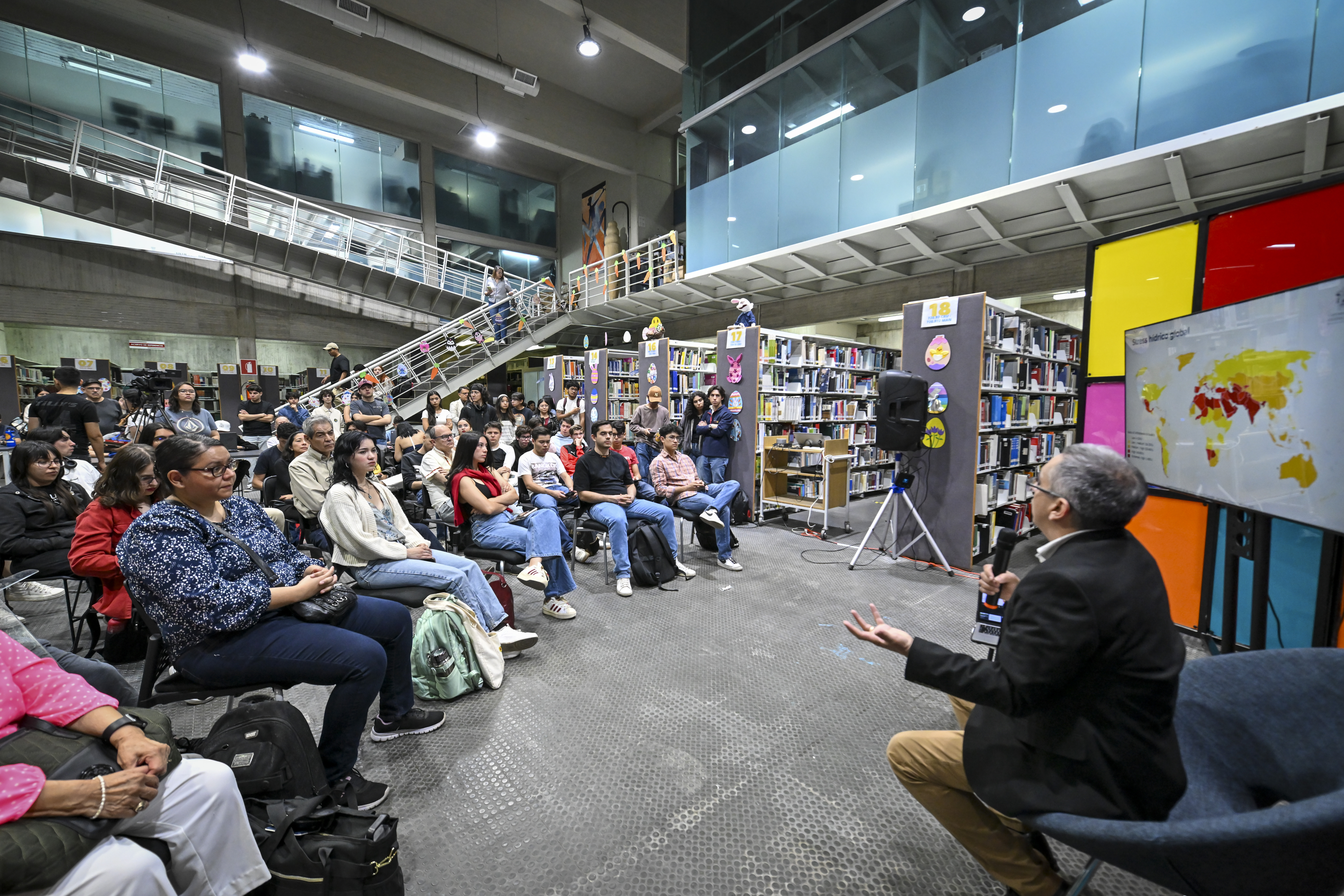 Entre los diversos temas, el ingeniero Gleason Espíndola, egresado del CUCEI, presentó cómo la construcción desmedida y la falta de reflexión en torno al agua en las ciudades provoca daños en la infraestructura, y dar cabida a inundaciones, socavones, agua contaminada, colonias sin agua, etcétera.