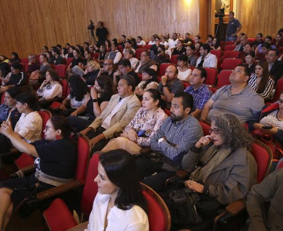 Decenas de personas se dieron cita en el Paraninfo Enrique Díaz de León para escuchar al artista conceptual uruguayo Luis Camnitzer en la Cátedra Latinoamericana "Julio Cortázar".