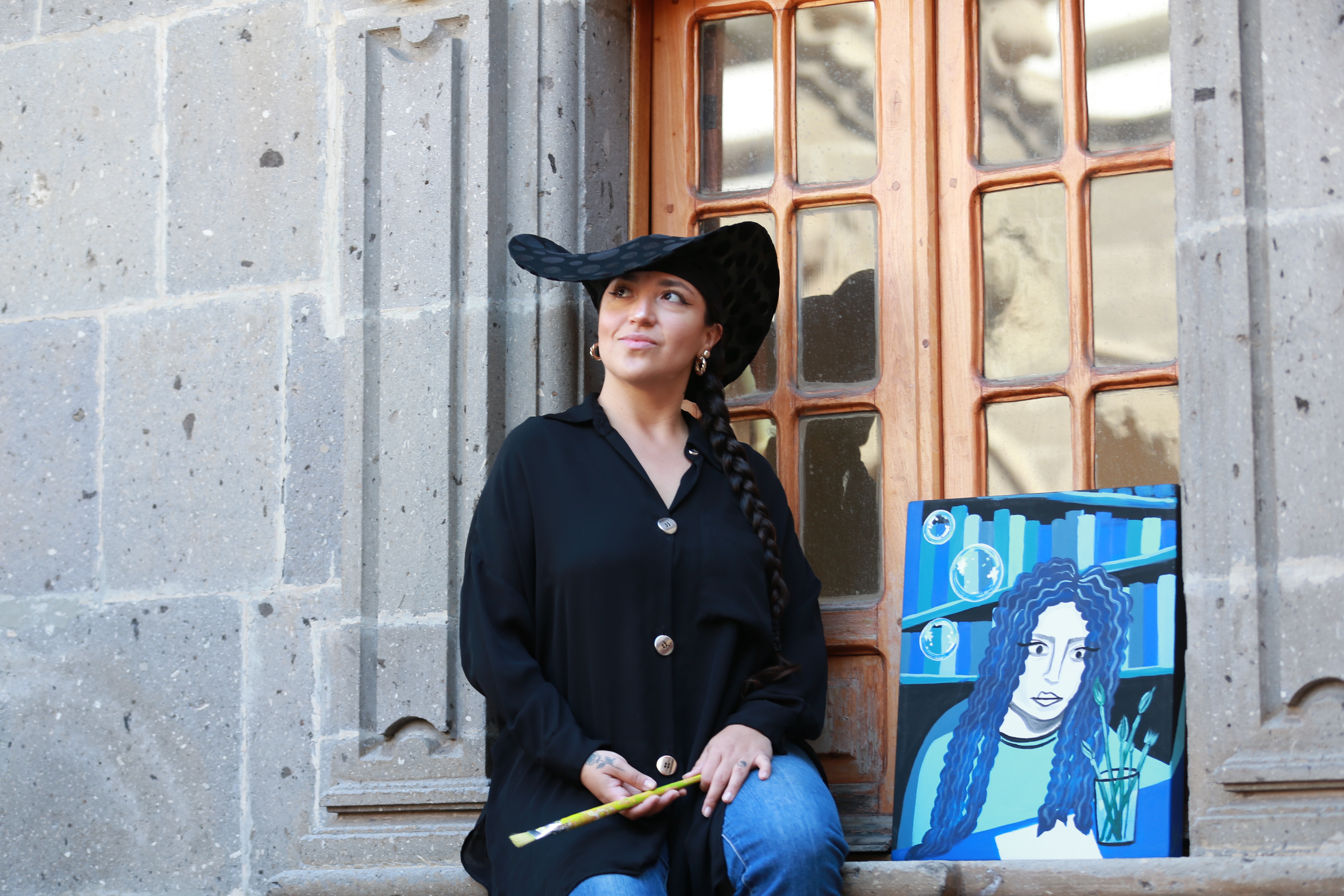 “Pintar era mi momento de autoconocimiento, por eso estudié filosofía, por la búsqueda de un autoconocimiento. Esto es un acercamiento genuino a querer conocer, a apaciguar ciertas preguntas que pueda tener en la vida”, explicó la artista, egresada de la licenciatura en Filosofía del Centro Universitario de Ciencias Sociales y Humanidades (CUCSH).