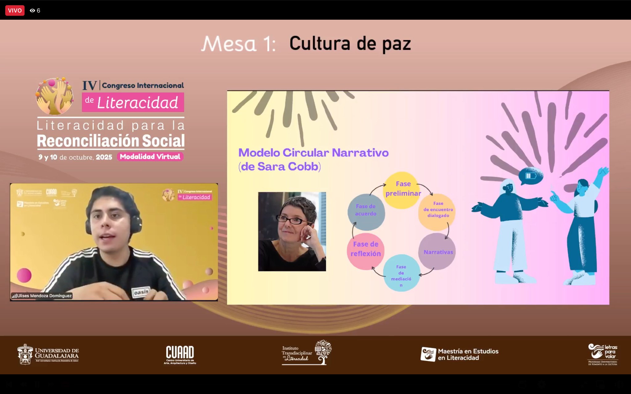 Por su parte, el maestro Ulises Mendoza destacó que la mediación efectiva requiere romper con narrativas simplificadas como “víctima-victimario” y generar una visión compleja donde todas las voces sean escuchadas, y proponiendo al mediador como un narrador neutral que facilita la comprensión mutua.