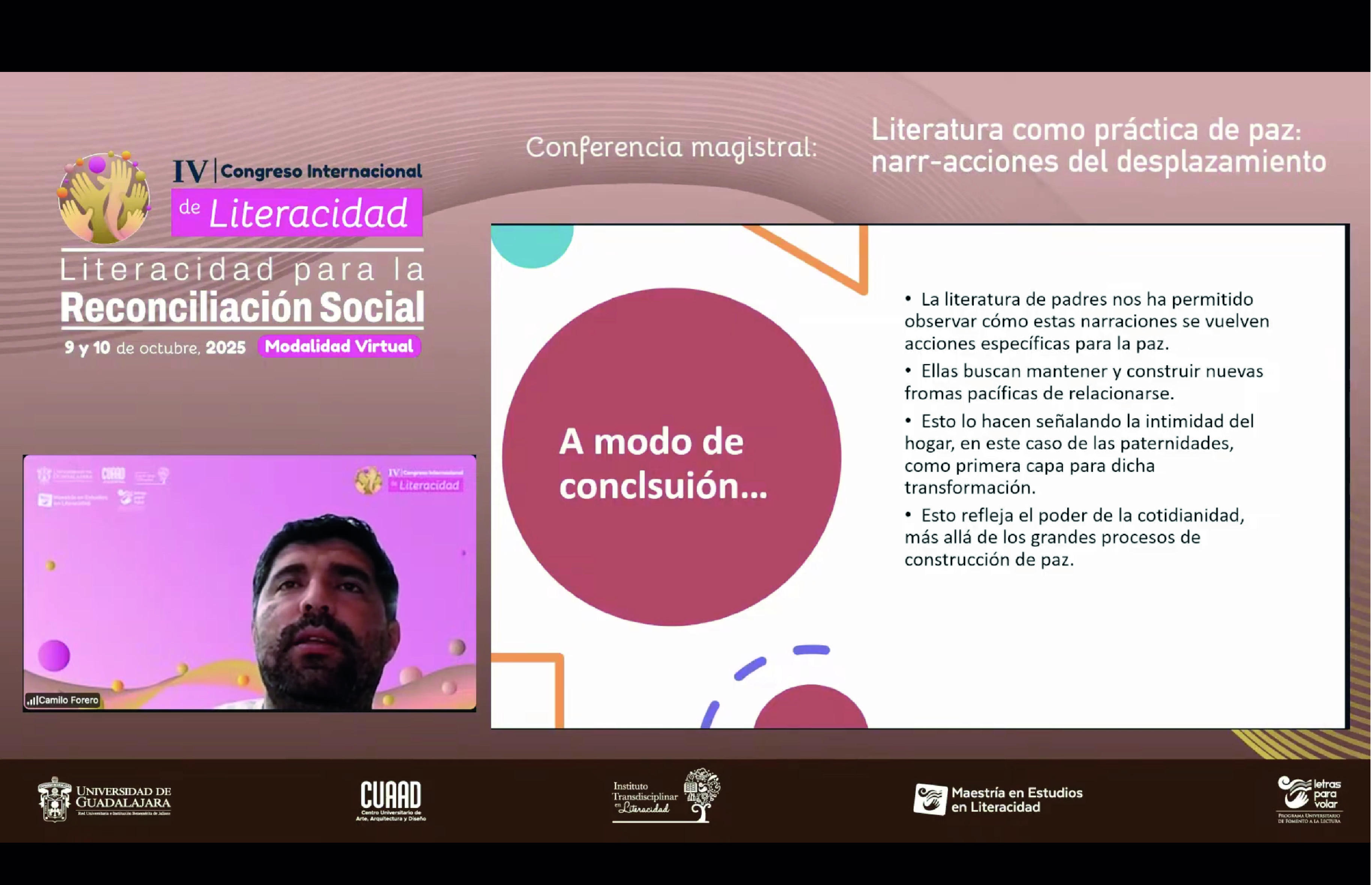 En las conferencias se abordaron temas urgentes como la migración, la equidad de género, la salud mental, la inteligencia artificial y la justicia social; se hizo énfasis en que la literacidad no solo se trata de una competencia técnica, sino una práctica social, política y cultural que permite construir comunidad y reconciliación.