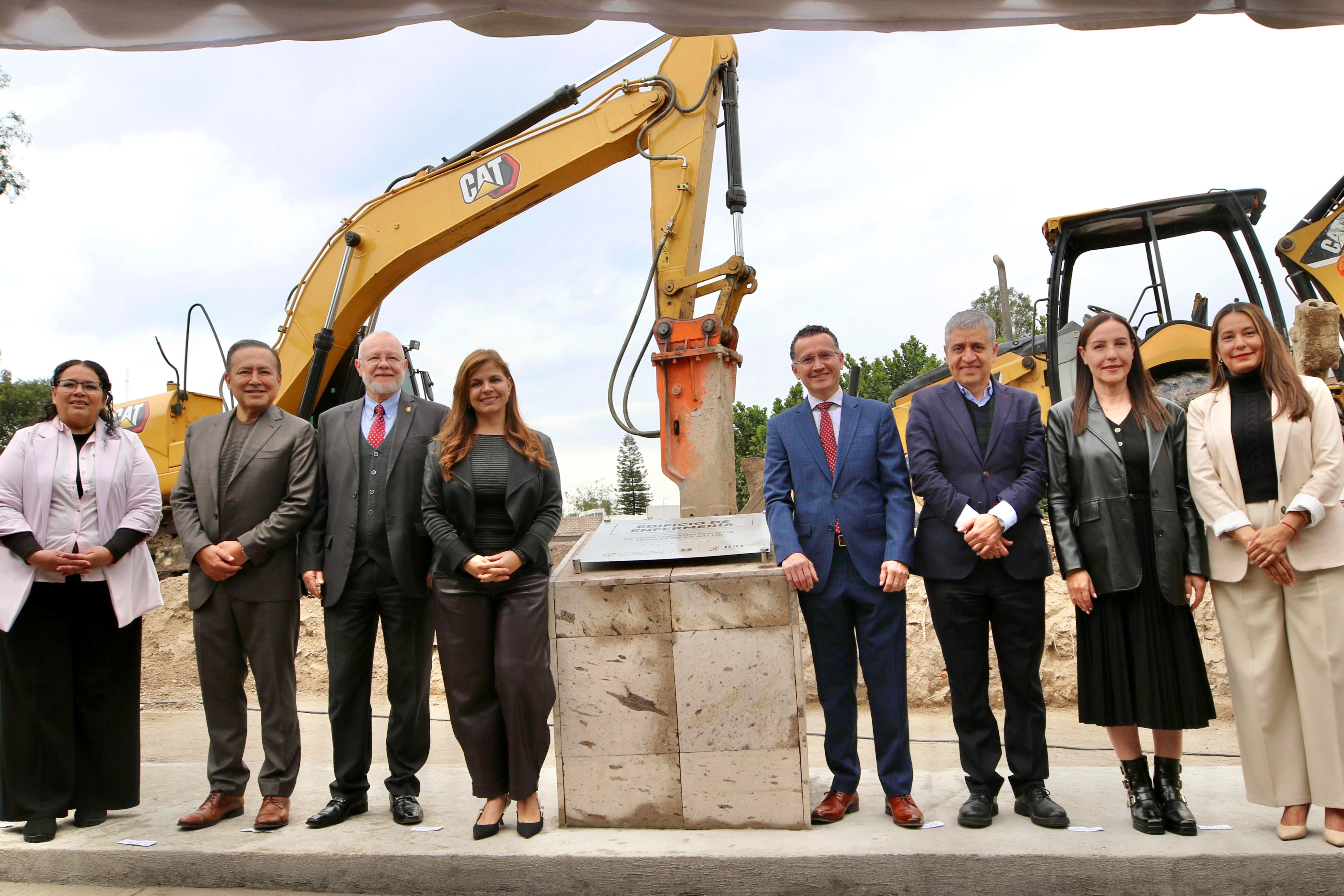 Autoridades de la UdeG y del CUCS develaron la primera piedra de lo que será el nuevo edificio de enfermería (Edificio F), el cual tendrá una inversión de 220 millones de pesos y estará habilitado con: siete pisos, modernos espacios académicos y administrativos, equipamiento especializado, áreas verdes y plazoletas.