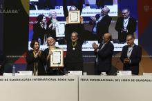 Reciben Margarita de Orellana y Alberto Ruy Sánchez homenaje al Mérito Editorial en la FIL