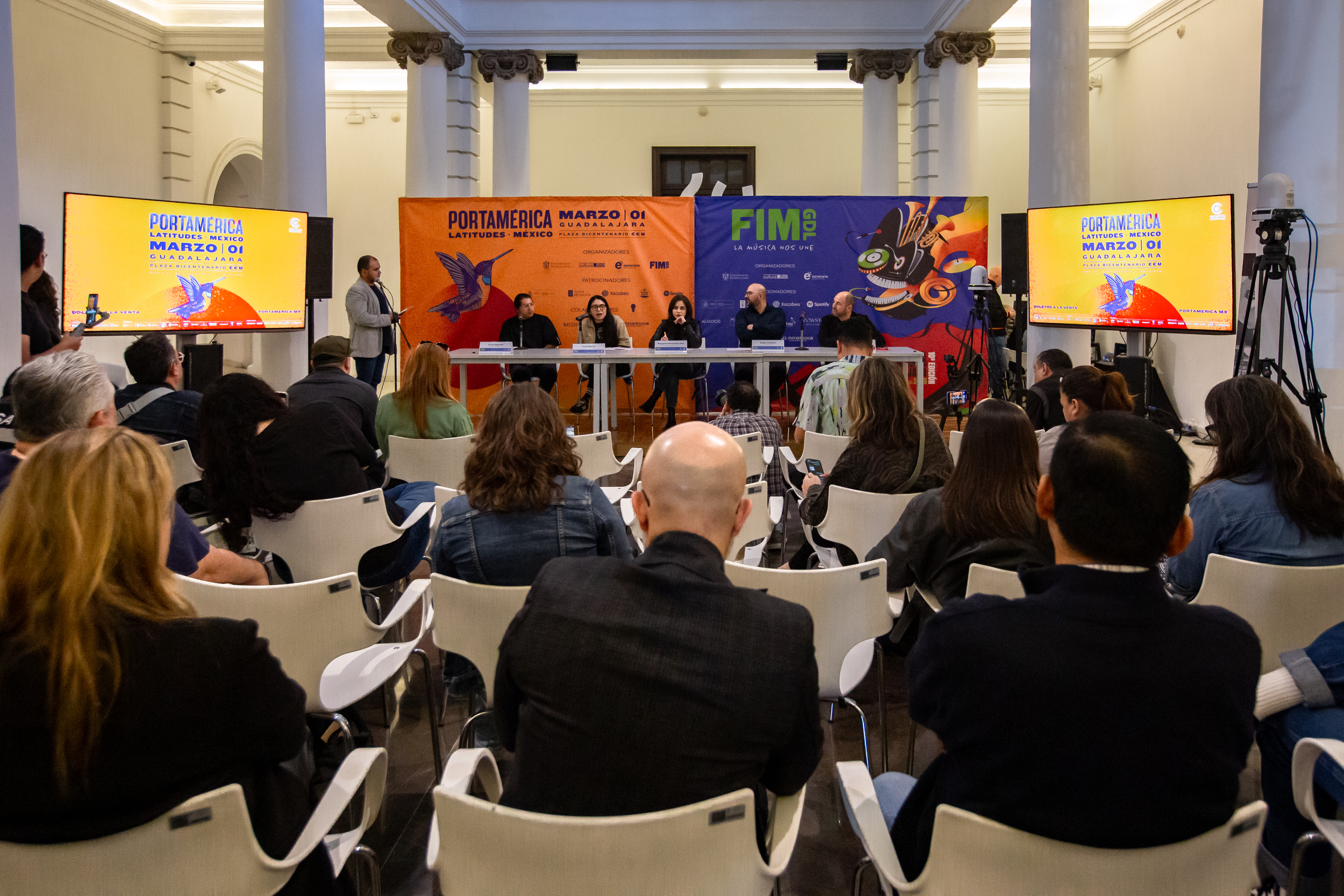 Una exposición pictórica en el Museo de las Artes (MUSA) de las artistas Mon Laferte  y Violeta Parra; la reunión de más de 20 exponentes musicales participantes de showcases; conversatorios entre productores, músicos y periodistas musicales en el Conjunto Santander de Arte Escénicas (CSAE), son algunas de las actividades del programa de la Feria Internacional de la Música de la Universidad de Guadalajara 2025, que incluye el Festival Portamérica Latitudes en la Plaza Bicentenario y más de diez exponentes de la gastronomía internacional.