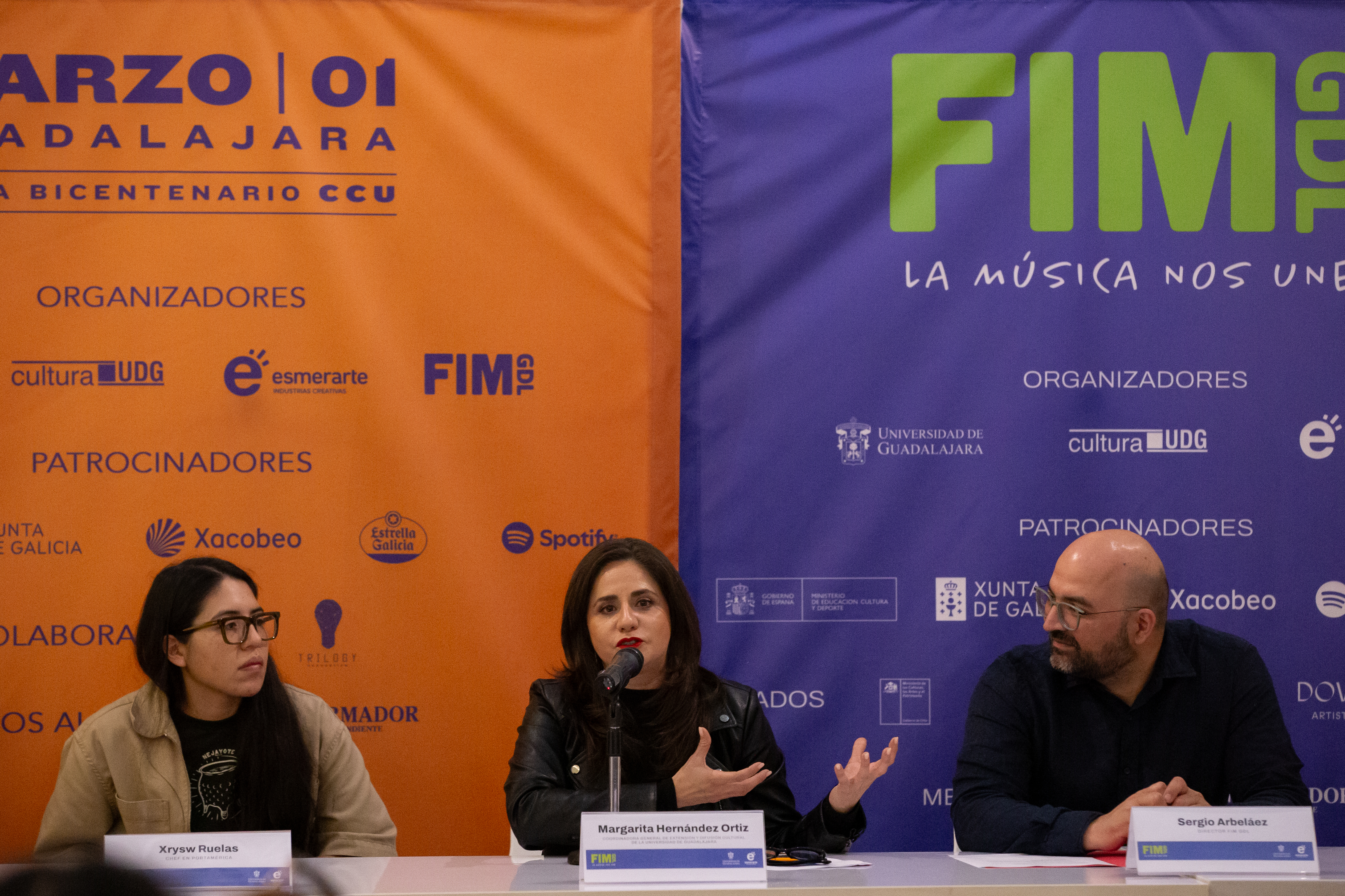 “Tenemos que pensar en la FIM como una actividad universitaria, porque detrás de todo este proyecto se encuentra la UdeG. Sabemos que las expresiones artísticas son transdisciplinarias y no hay mejor forma de honrar el legado artístico de Violeta que trayendo a nuestra ciudad la diversidad de su obra y que dialogue con la obra de otra gran artista como Mon Laferte”, dijo Margarita Hernández Ortiz, Coordinadora General de Extensión y Difusión Cultural de la UdeG.
