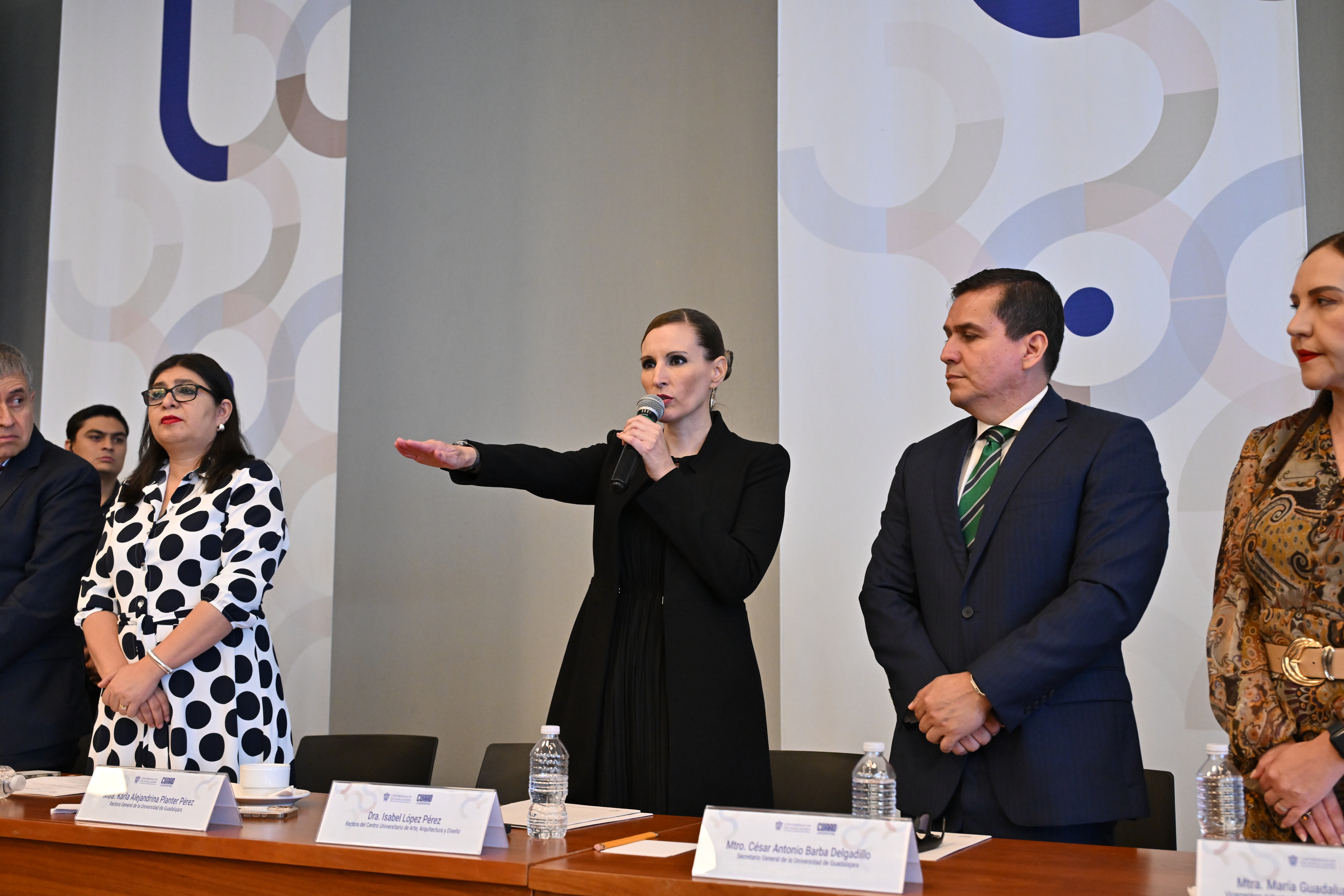 La Rectora General de la Universidad de Guadalajara, maestra Karla Planter Pérez, definió a la comunidad del CUAAD como “creativa y sensible”, además, reconoció el trabajo realizado durante los últimos seis años bajo el rectorado del doctor Francisco Javier González Madariaga, y se dijo confiada en la doctora Isabel López para continuar acumulando triunfos y superando retos: “La doctora Isabel tiene una visión completa de cada espacio del CUAAD y de su comunidad; se espera que, a través de su plan de trabajo, se generen nuevos proyectos para continuar cultivando logros”, declaró.