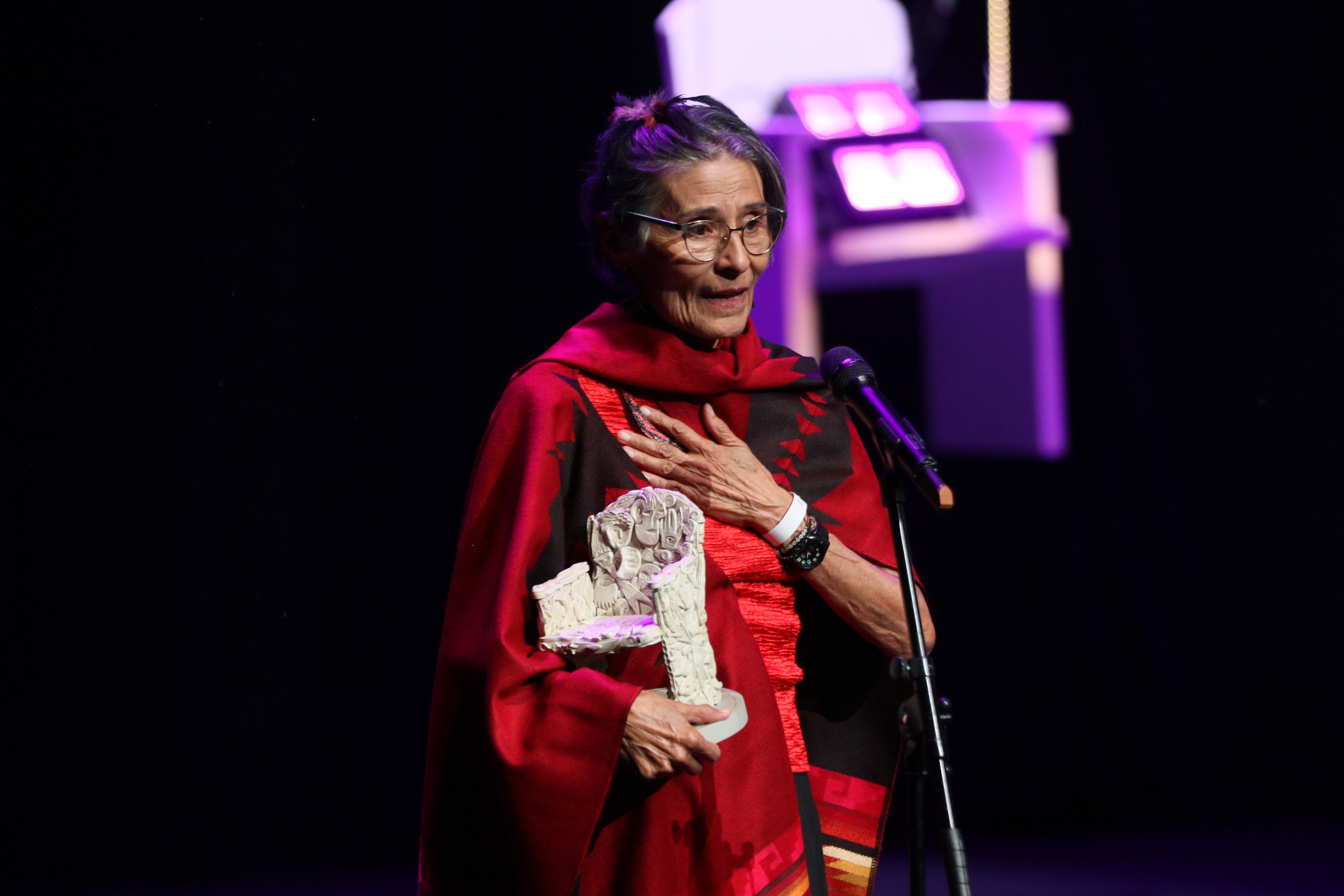 La noche se llenó del aplauso que inundó la Sala 2, cuando al escenario subió la bailarina y coreógrafa tapatía Paloma Martínez, al otorgarle el reconocimiento “Willy Aldrete” por su trayectoria.